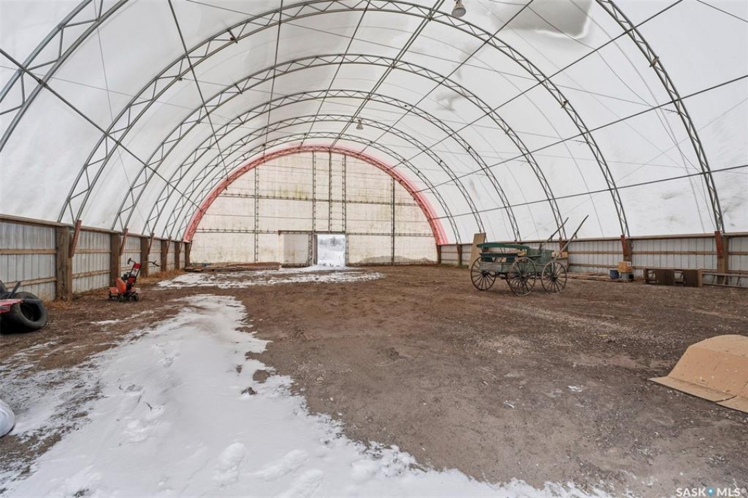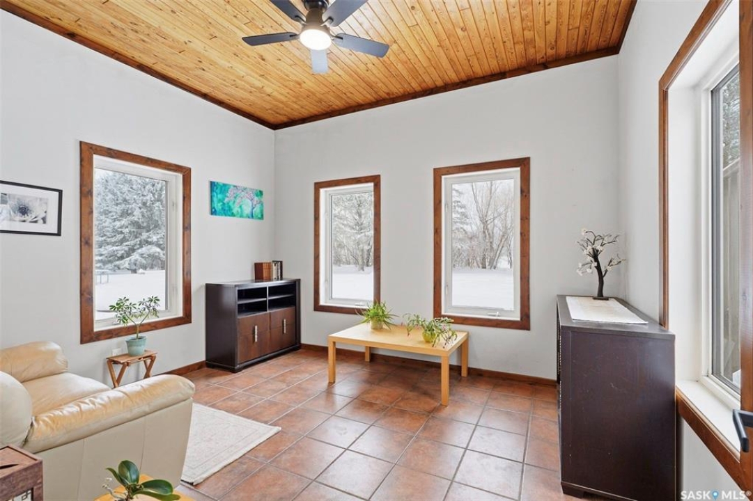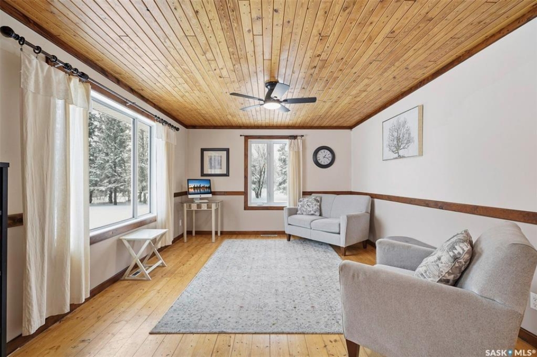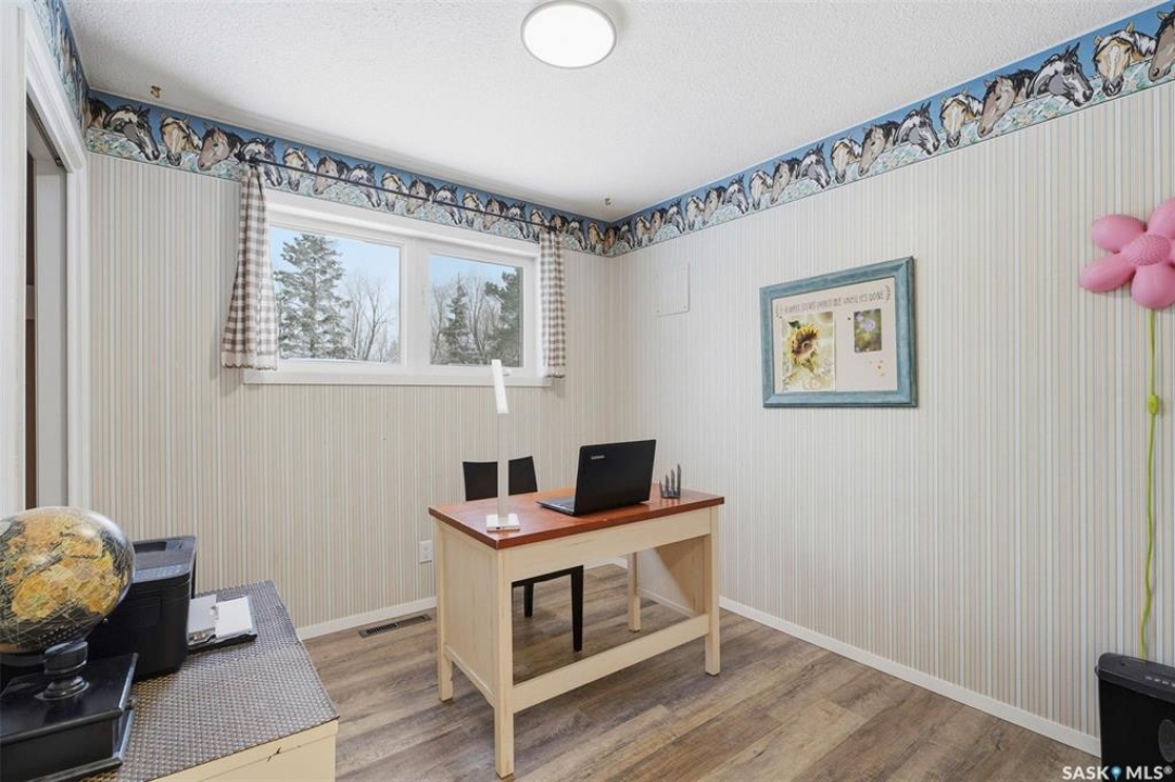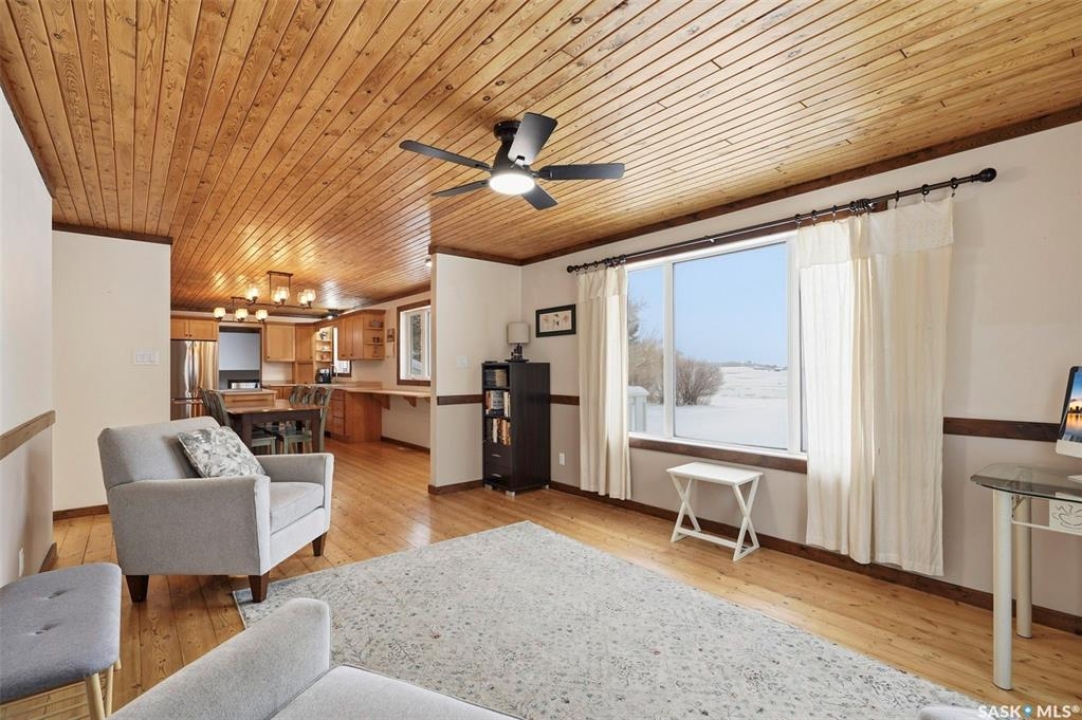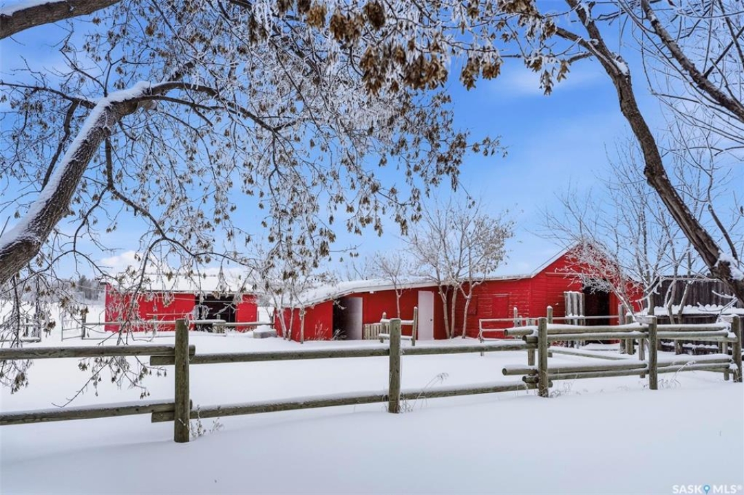 Set on 14.97 acres just minutes west of Prince Albert, this McLeod Road acreage offers the space, privacy, and freedom of true country living - without being far from town. Mature trees provide an excellent shelter belt on three sides, while open land to the east delivers beautiful sunrise views. The home features a unique and functional layout, ideal for acreage life. You're welcomed through a bright foyer with ceramic tile and in-floor heat, set on a slab and designed to handle real life - muddy boots, busy days, and all the gear that comes with country living. This level includes excellent storage, a combined laundry and 3-piece bathroom, and a versatile sunroom that has also been used as a bedroom. Up a short flight of stairs is where daily life unfolds, with the kitchen, dining, and living areas, along with three bedrooms and a full bathroom. Pine floors and ceilings create a warm, rustic-modern feel, while south- and east-facing windows fill the living spaces with natural light. This level is completed by a charming nook area, ideal for a home office, music space, or play area, with additional storage below and an enclosed loft above. Both the furnace and water heater were replaced in 2024 as well. Outdoors is where this acreage truly shines, with multiple outbuildings, including an approx. 950 sq ft barn with power and insulation, a large 60x80 powered coverall suitable for equipment storage or a riding arena, additional shelters and fenced areas for livestock, and a massive garden area on the south side (perfect for a u-pick or just your own harvest). With approximately 12 acres zoned agricultural and room for horses, chickens, and more, this is a well-loved family property, where the current owner was raised and later raised their own family. If you're seeking space, privacy, and true acreage living, this McLeod Road property is ready for its next chapter. You've got to see this one to truly appreciate all it has to offer.