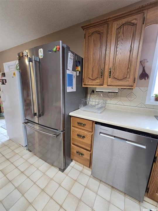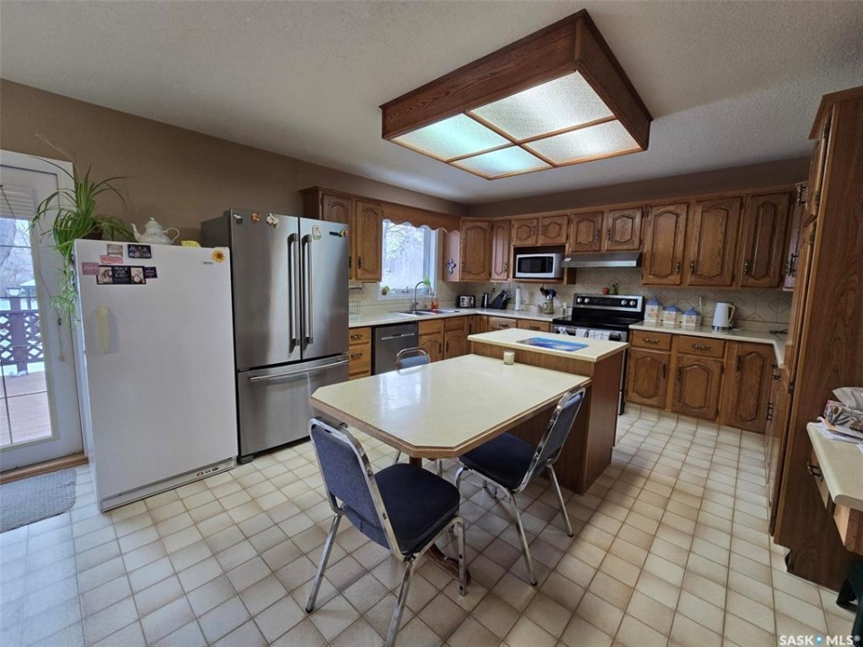 FAMILY HOME >> 5 BEDROOMS + 3 BATHS << ONE OF A KIND BI-LEVEL with 1332 sq ft on main floor plus 1332 sq ft in the finished basement located on a 87' x 132' lot. This property has a beautiful setting...perennial beds , mature trees , back composite deck, gazebo and walking paths, underground sprinklers. Insulated double attached garage 24' x 30' with 2 man doors a real asset. Enter the front door and walk up the stairs to the main floor. The natural light greets you in the dining room, spacious living room and functional kitchen. The kitchen has plenty of oak cabinets , and lots of work space on the counters , an island and built in table. Stainless steel appliances to include the stove, fridge, BI dishwasher and hood fan. The master bedroom provides room for a king bed, has dual closets and a 3 piece ensuite. 2 more bedrooms and a 4 piece bath complete this level. Basement is bright and will be one of your favorite places to entertain the family or friends. The family room has a wet bar , wood fireplace (not used in years), built in entertainment center. One of the bedrooms has a 3 piece ensuite, the other across the hall. Cold room /storage is a bonus. Find a large foyer with dual closets just before heading out to the attached garage. Backyard is a little oasis! Many hours have been spent in the perennial beds and yard. FEATURES to note: HE furnace (2022), Hot water heater (2026), 100 amp panel, Shingles approx 8 years old, central vac replaced, central air, gutter guards, metal cladding around the wood windows, composite back decking. This home is ready for your family. Been well maintained , just needs your loving touch. T