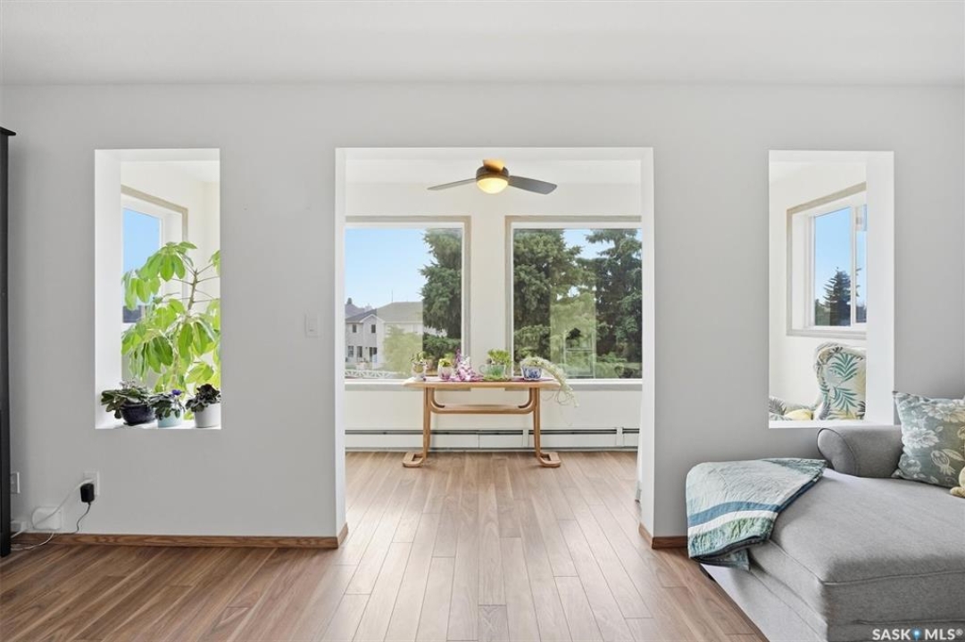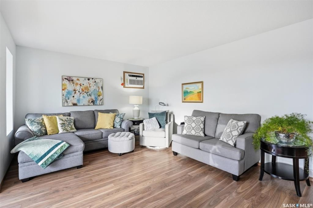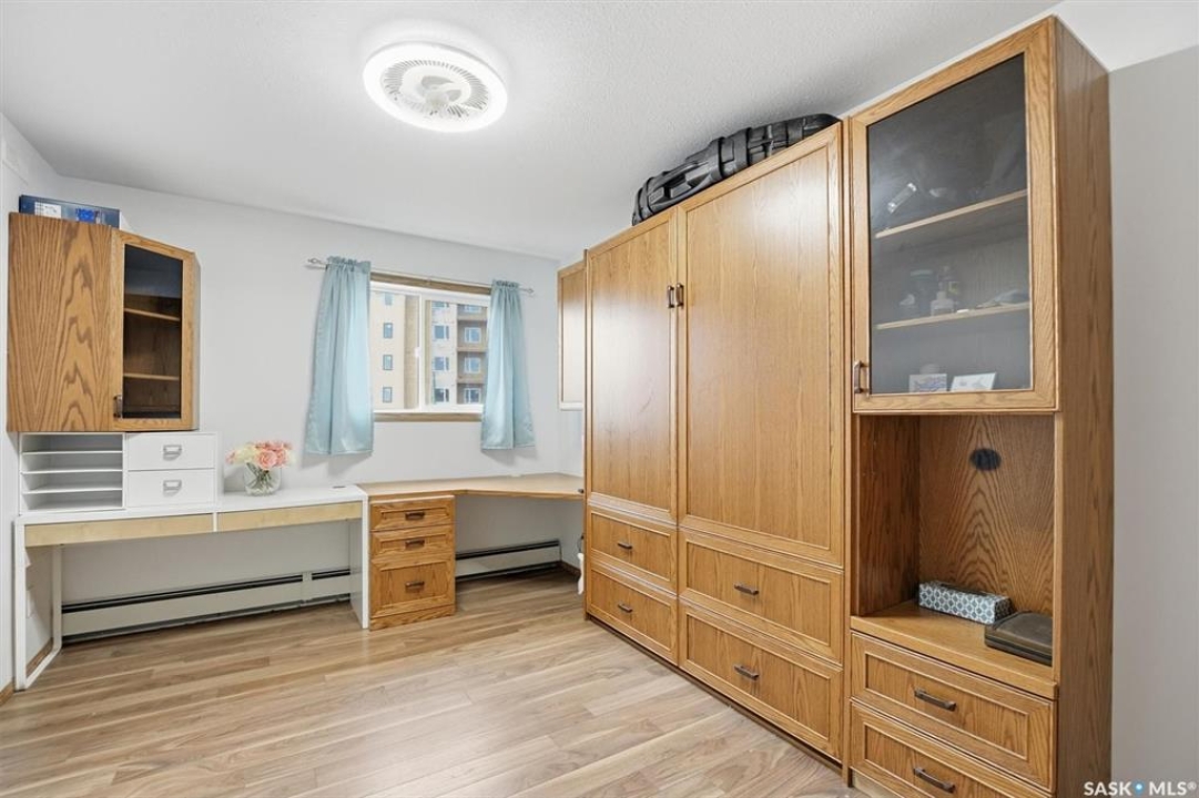 SOUTH-WEST CORNER, SECOND FLOOR, 2 bedroom Condo in great condition. You will appreciate the spacious dining and living rooms, the well appointed Kitchen with stainless steel fridge and range, the generous master bedroom with it's convenient 2 piece ensuite bath, the main bath with it's convenient walk-in shower and the south facing sun room that adds so much natural light to the unit. The owner had Protint add 50% UV filter film to the south facing window and 80% UV filter film to the East and West side of the Sun room window to cut down on the summer heat plus it obscures the view of the interior from the outside making blinds optional. The condo comes with up-graded laminate flooring, neutral paint throughout while the second bedroom features a Murphy bed and built-in desk and storage. 4 quality appliances are included (the up-right freezer is not) and the laundry room comes with a wall-to-wall storage closet. The unit has an excellent parking spot with ample space to turn in and out as well as an additional storage space #201 located on the parking level across from the amenities room. Spruce Grove Manor features a large amenities room with kitchen plus a workshop for the hobbyist. Many of the large ticket maintenance items have been completed, including replacing the elevator. Pets are not allowed and smoking is not allowed in the building or on the property. Contact your favorite real estate professional for a private tour.