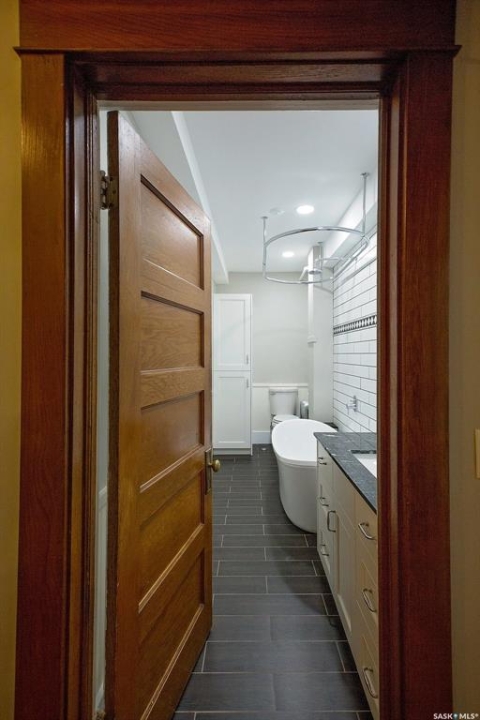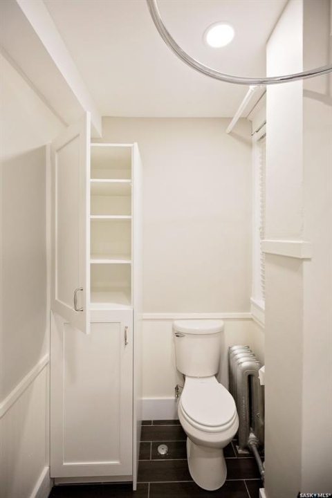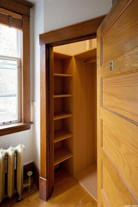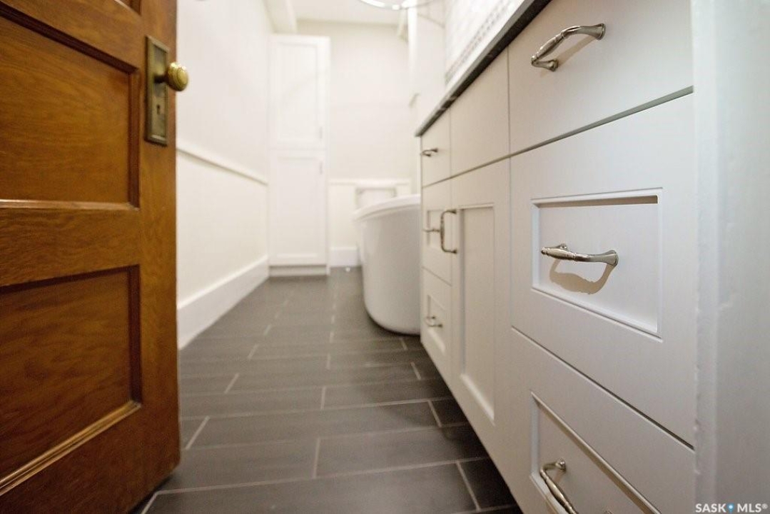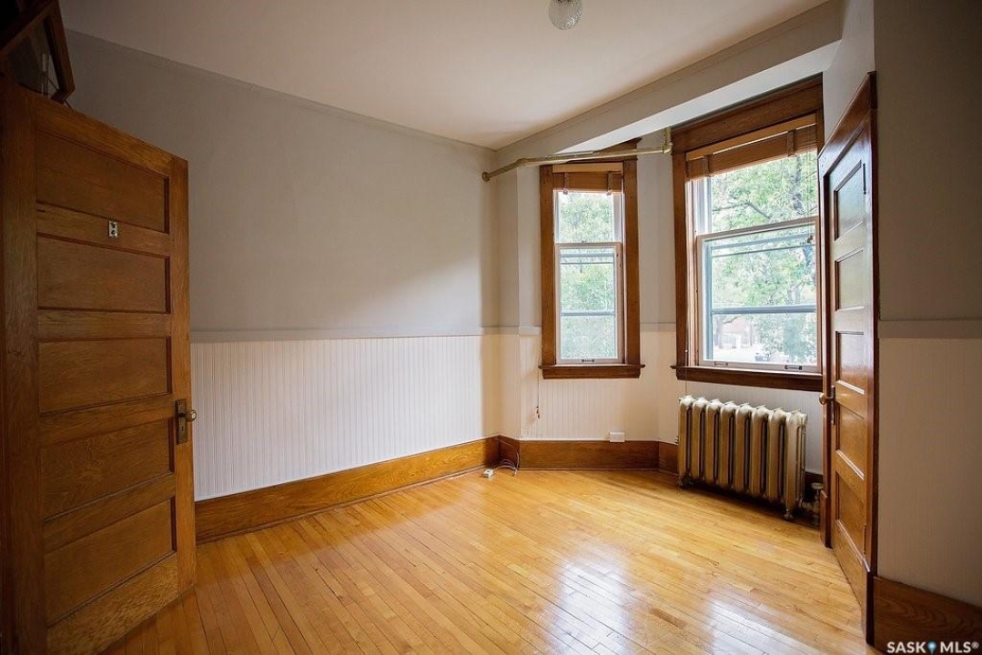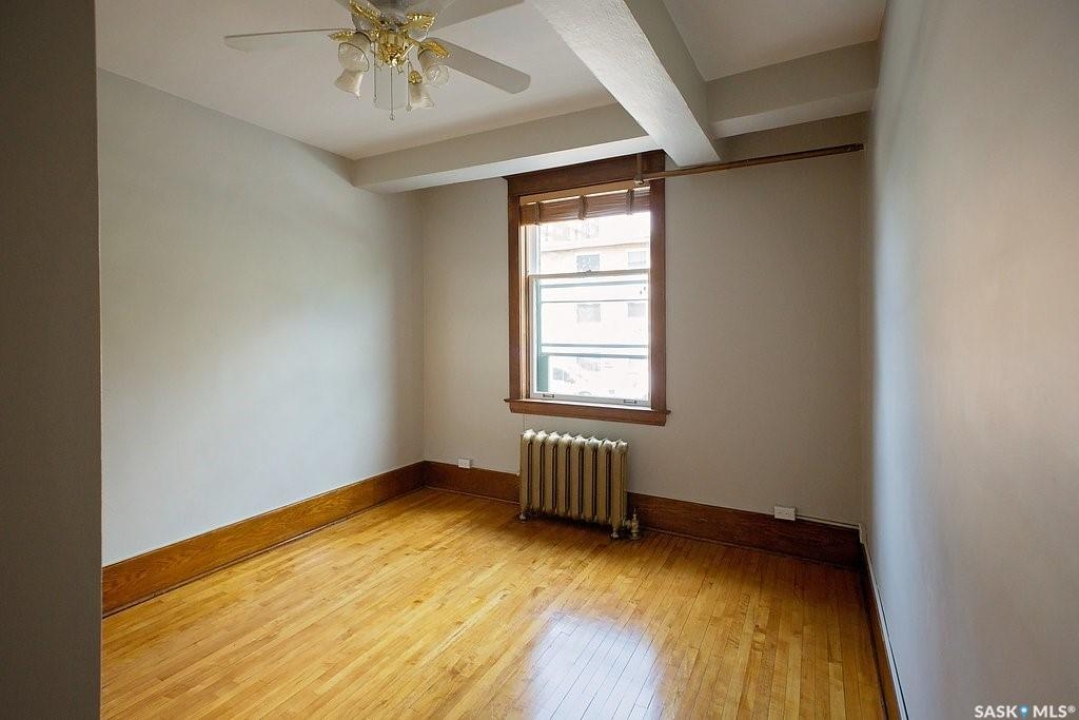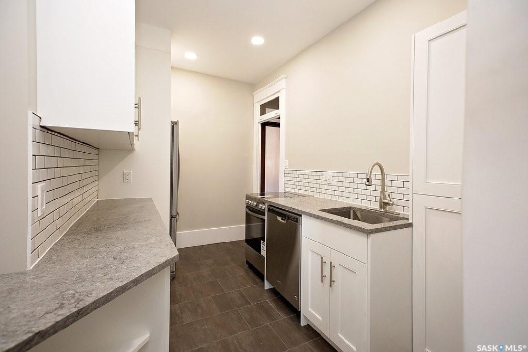 Beautifully upgraded Heritage home with 2 blocks to Wascana Park, downtown and all the amenities of the Transition Area. This home shows extensive original character including wood work including transom windows, hardwood floors, the original stone fireplace restored with a convenient electric insert. The improvements were recently completed including extensive electrical upgrades to the unit, water supply and drain to the main supply of the building. The kitchen was renovated with customized cabinetry providing function, flow and storage and solid stone countertops. The bathroom is luxurious with a deep soaker tub, custom cabinetry and Porcelain tile. Both of the bedrooms are a generous size for the era and also feature custom built ins for extra storage. This home also comes with an additional storage room on site in the lower level of the building.