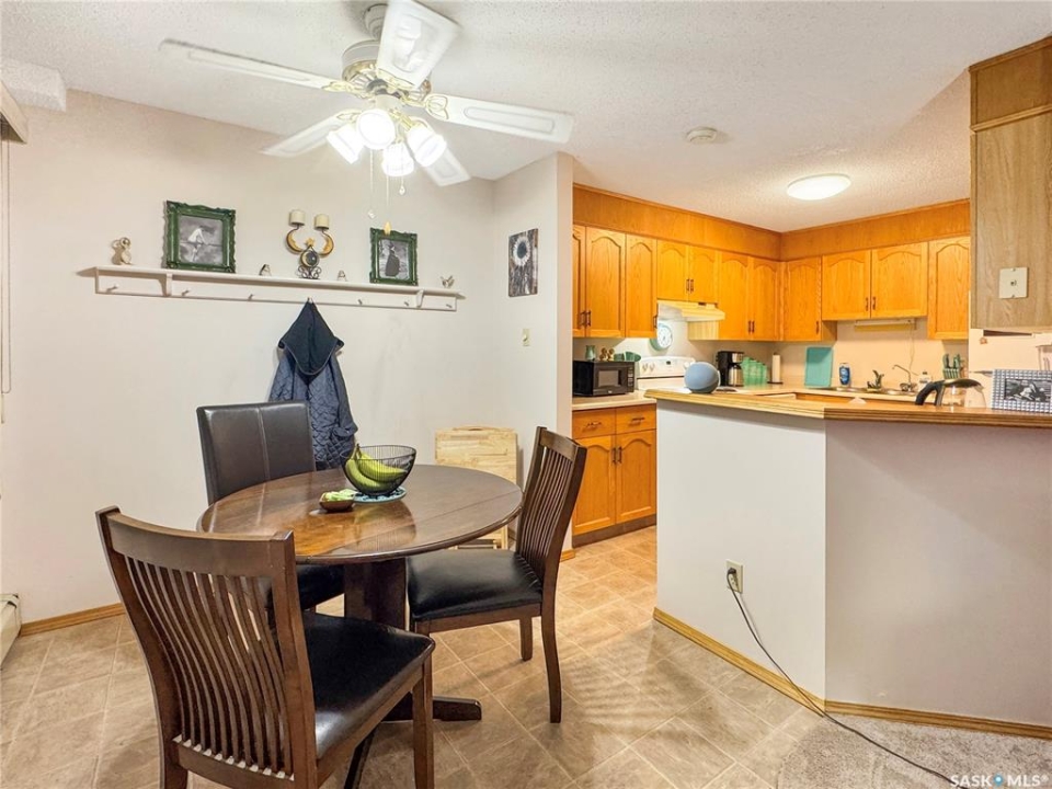Enjoy simple, stress-free living in this second-floor condo located in the well-maintained Parkview Manor. With 993 sq. ft. of thoughtfully designed space, this unit offers two comfortable bedrooms, a 4-pc bathroom, and the convenience of in-suite laundry. The open living and dining area creates a relaxed, welcoming atmosphere, perfect for quiet evenings or hosting guests. The kitchen is practical and efficient, complete with all appliances included (recently upgraded), so you can move in and enjoy right away. The kitchen has lots of cupboard space and a convenient storage room has extra space for small appliances. The building features an amenities room, electrified parking, and condo fees that cover all utilities except power, keeping monthly expenses simple and predictable. Located close to everyday conveniences, this condo is an excellent choice for those looking to downsize without compromise or enjoy a low-maintenance lifestyle. Call today for a private showing.