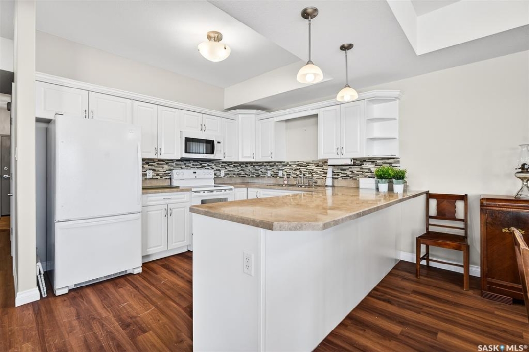 Well maintained apartment style condo with over 1300 sqft of living space. A maintenance free lifestyle is what this condo has to offer. It offers an open concept with very spacious rooms. Welcoming you into a good sized foyer that has a large storage room to your left that could be used as an office or workspace. Just down the hall is your 2nd bedrooms that offers ample space for yuor guests or for a hobby room. The Primary bedroom is oversized and could easily fit a king sized bed and extra furniture, but the walk-in closet and 3pc ensuite with walk-in shower are definitely a bonus! There is another spacious full bathroom that holds the laundry pair in the closet with storage shelving. The kitchen is equipped with amply cupboards and counterspace and even seating at the island! The dining room can host a large table for entertaining and has access to the 2nd floor balcony facing west. Enjoy the naturally bright living room with large corner windows giving you a great relaxing place. The Fairview Manor offers elevator access to all floors, guest suite, heated underground parking, furnished lounge plus common room (with cozy fireplace and kitchen area) and storage unit. This condo is in immaculate condition and tastefully decorated, just move right in. Look no further, this is CONDO LIVING AT ITS BEST! Call for a viewing today.