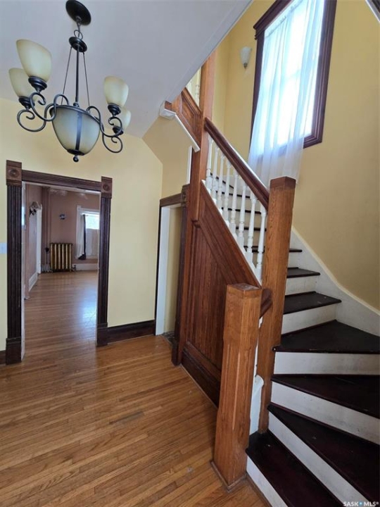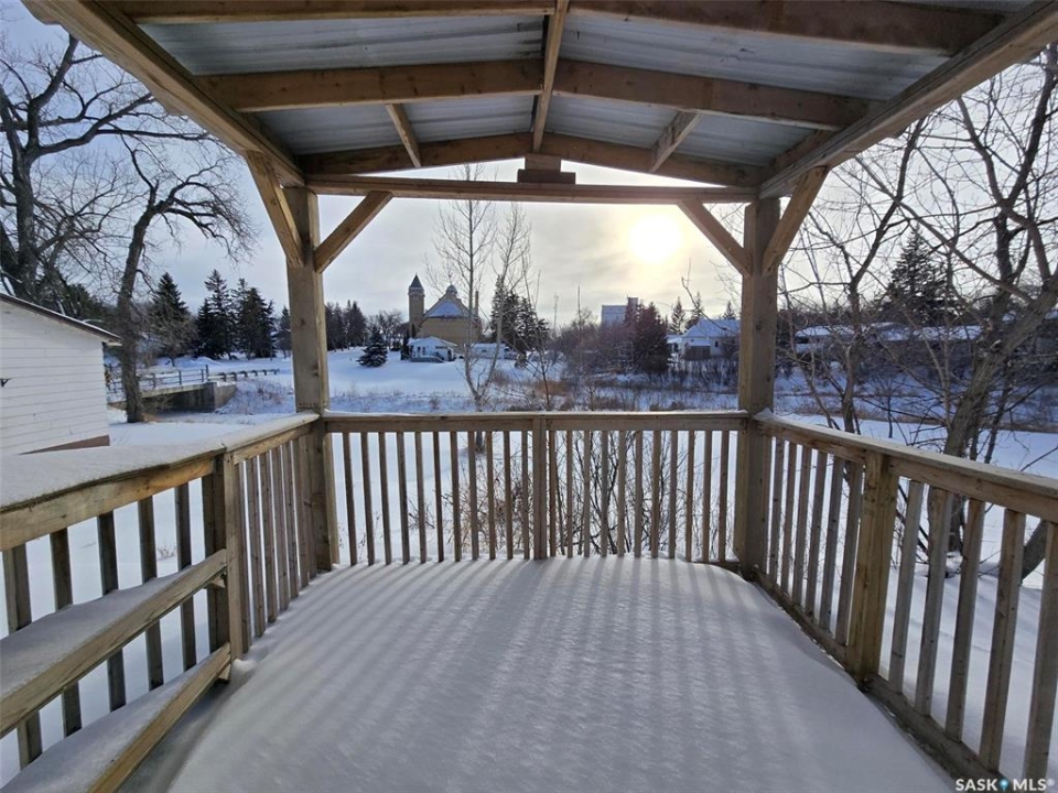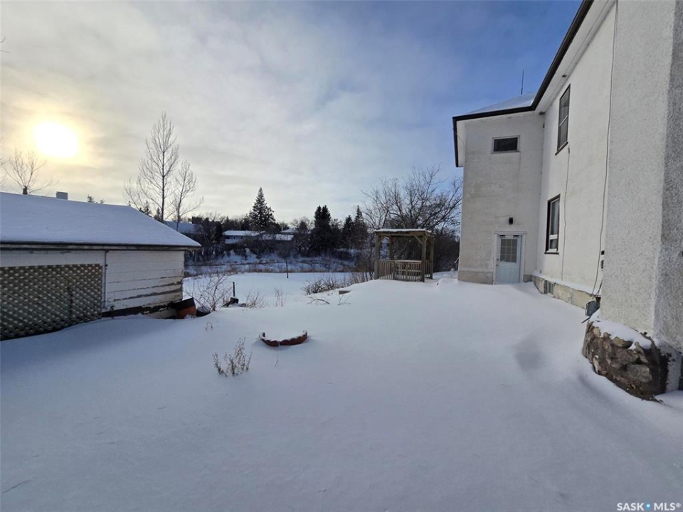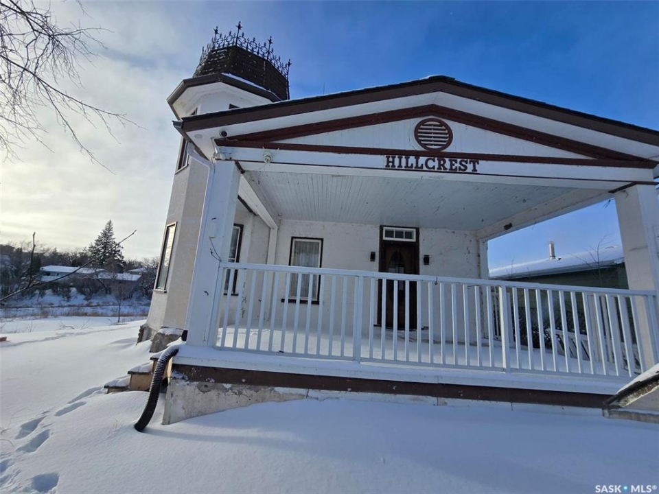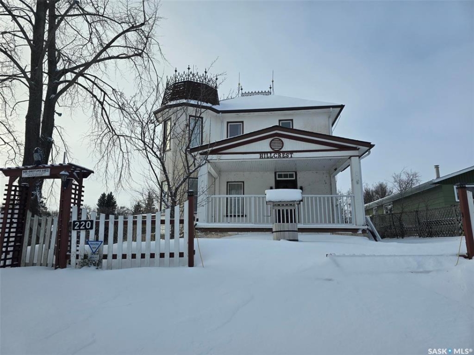 Hillcrest home is truly a Wolseley Landmark built in 1903, one of a few estate homes that are found in this little Historic town. Location is key , situated across the street from "Fairy Lake" and the spillway. Just under an acre (.89) with 280 ft of frontage and 150 deep. One of your favorite places with be in the Gazebo looking onward to the creek that is on the south side of the extensive property. From the front deck, the view provides the spillway fountain, lake and swinging bridge. Double garage was built in 1960. Castle comes to mind when seeing the property. Unique design inside and out. Inside the front door an impressive staircase and original hardwood floors give the home warmth along with the solid wood front door. The large living room hosts a wood burning fireplace and turret that make this area distinctive. Fine dining room just off the kitchen and a den /parlour complete the original setting. Off the back of the home , a large more modern style kitchen with lots of cabinets and counter space. There is another dining room with views to the south. A " servant's " staircase takes you to the 2nd floor from off the dining /kitchen to 2 of the 5 bedrooms . The other staircase leads to the other side of the home with 3 bedrooms , a 4 piece bath and a large closet. You are able to walk through the entire 2nd floor but at one time was separated by a door for privacy. The Executive Master bedroom has class and style with a wood fireplace and turret. There was some water damage to the ceiling and wall to this room and in the linen closet from years ago. Basement is partially finished with a rec area, a 3 piece bath, a den/office room and laundry room in the mechanical area. Also Lots of storage with shelving. 2016 New boiler. Shingle year unknown. This home is a "GEM" with good bones, but will need some restoring and some loving hands to get it back to it's prime. Would make a great B & B. Are you the right person for this home?