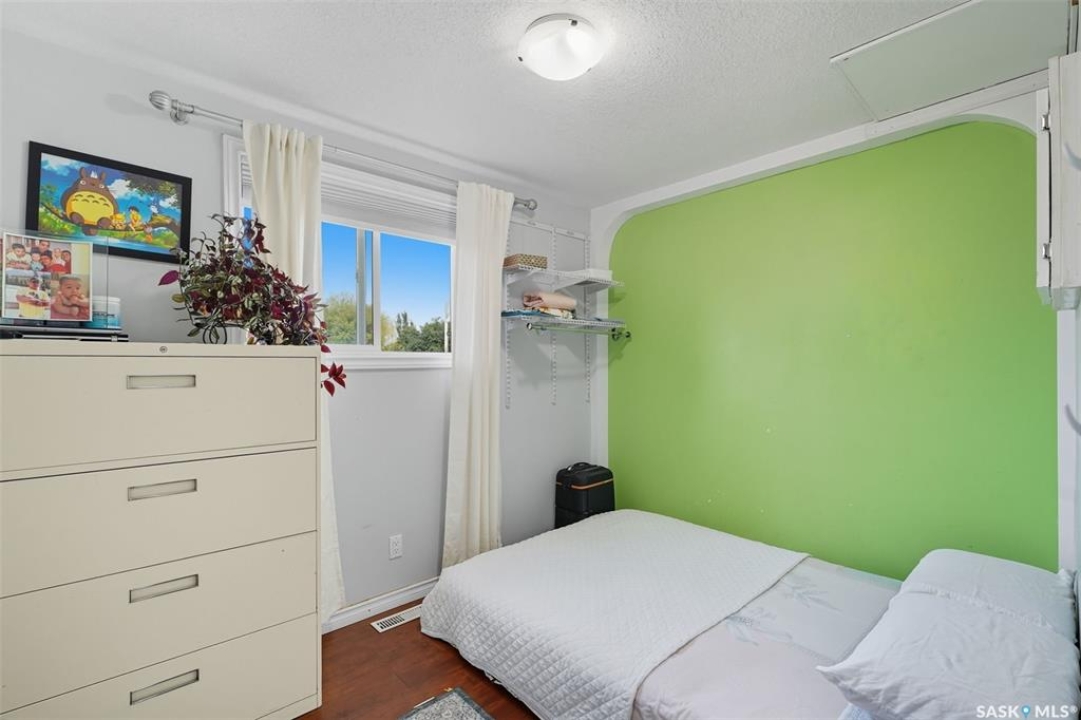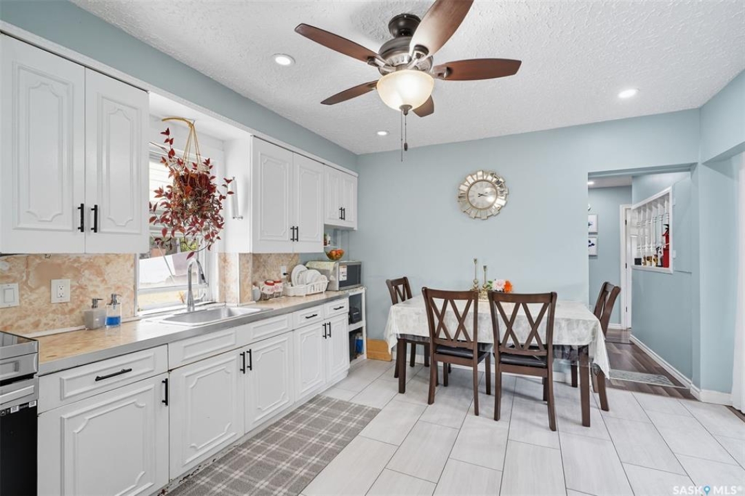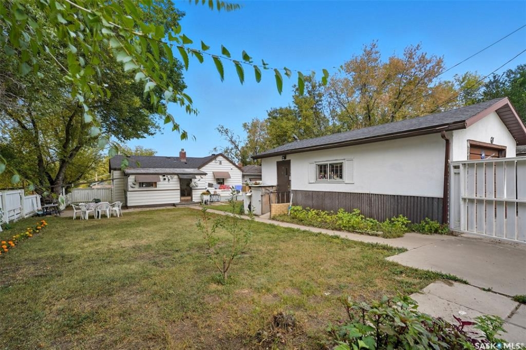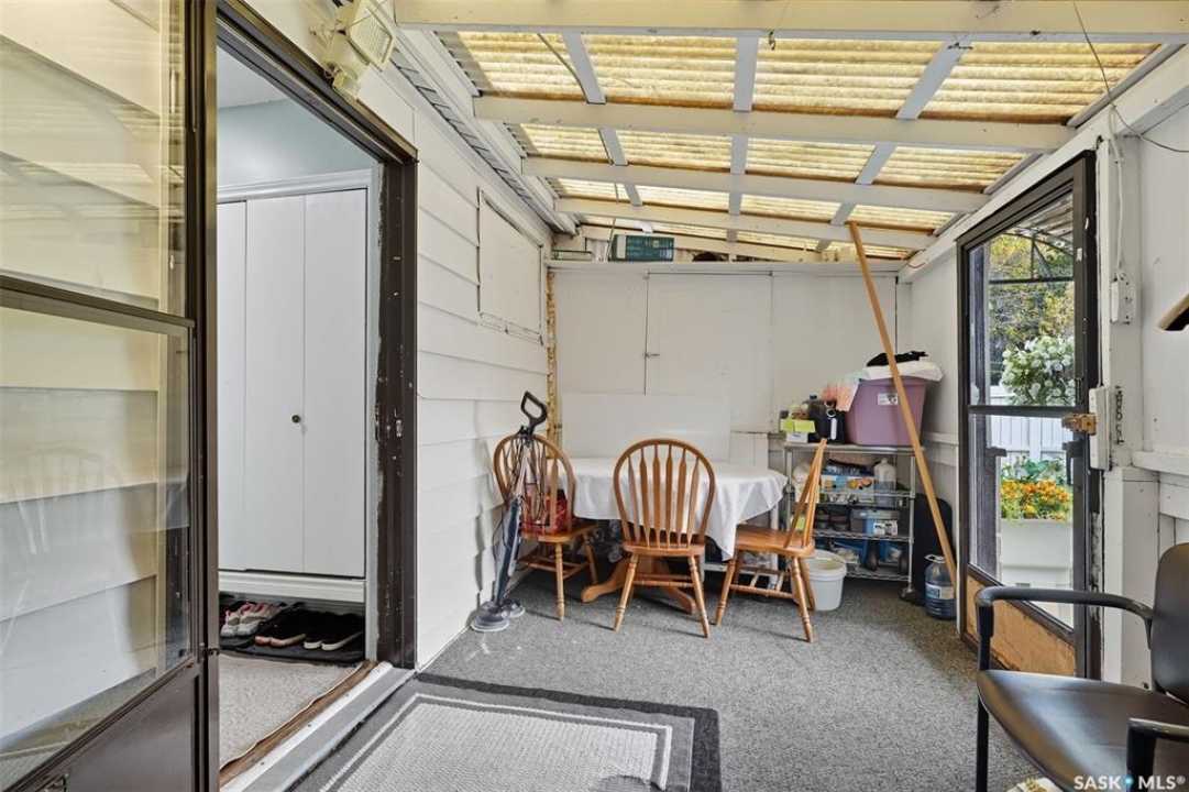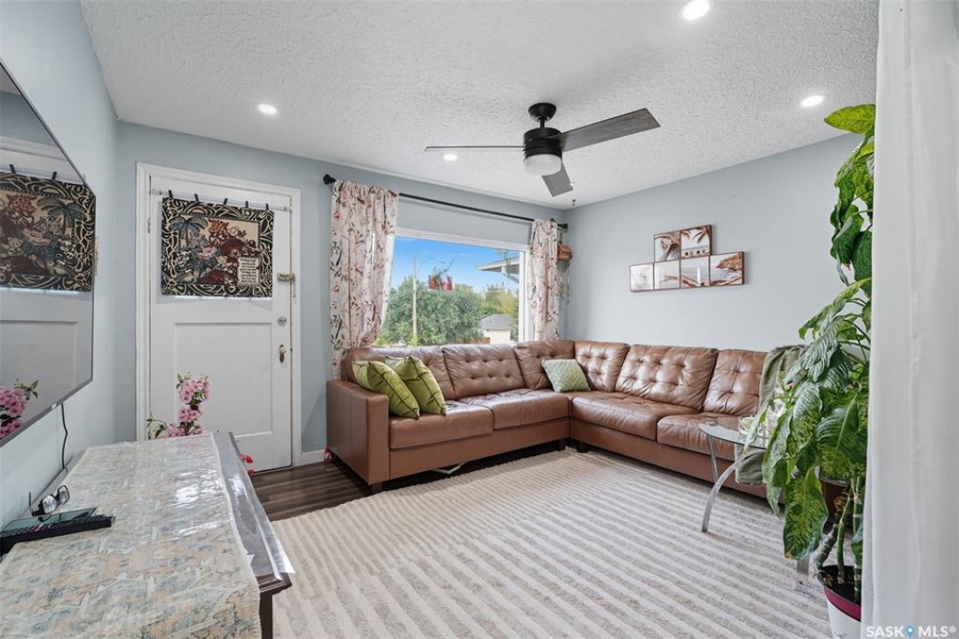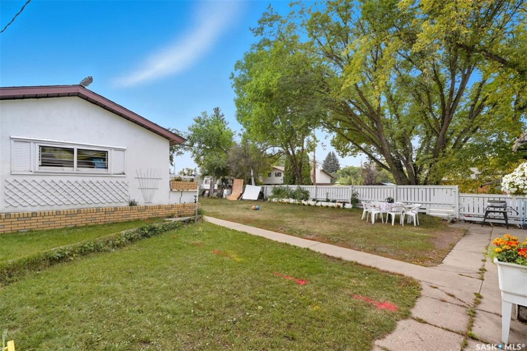 Bright, well-kept 1969 bungalow on a 50×130 corner lot in Meadowgreen—~2-min walk to the Dawah & Community Centre, steps to 22nd St transit/amenities, and an easy stroll to St. Paul's Hospital. Main level offers 3 bedrooms, a gorgeous eat-in kitchen (tile flooring, ceiling fan, LED pot lights, long run of cabinetry), a comfortable living room, and an updated 4-pc bath with tiled surround/niche (see photos). Bedrooms show warm wood tones; vinyl plank runs through most of the main for easy care. The enclosed back porch adds year-round utility—cold-room storage in winter, gear space in summer. Finished lower level features a bedroom + windowed den (use as office/flex), a bathroom with in-bath laundry (see photos), and extra storage. Outside, enjoy a fully fenced, extra-deep backyard with rear gate access and a single detached garage with opener and space for a workbench. Mature city trees are beyond the rear fence—so you get privacy and shade without giving up usable yard area. Possession March 2025.
