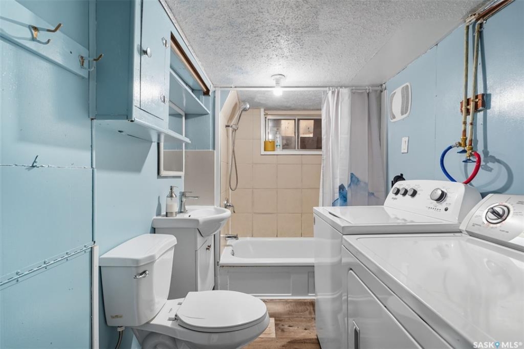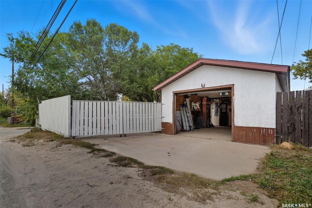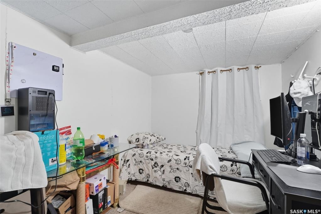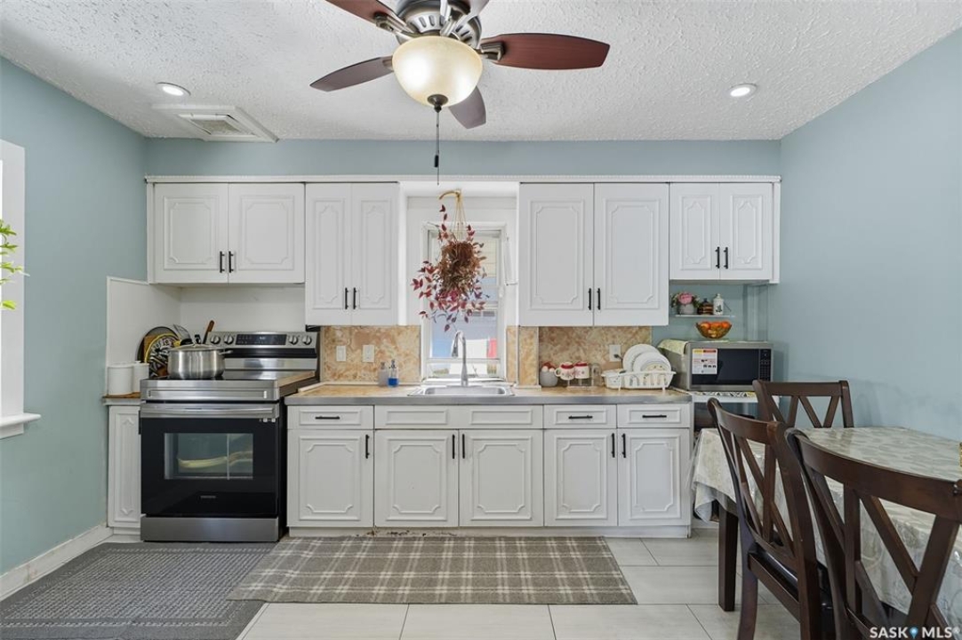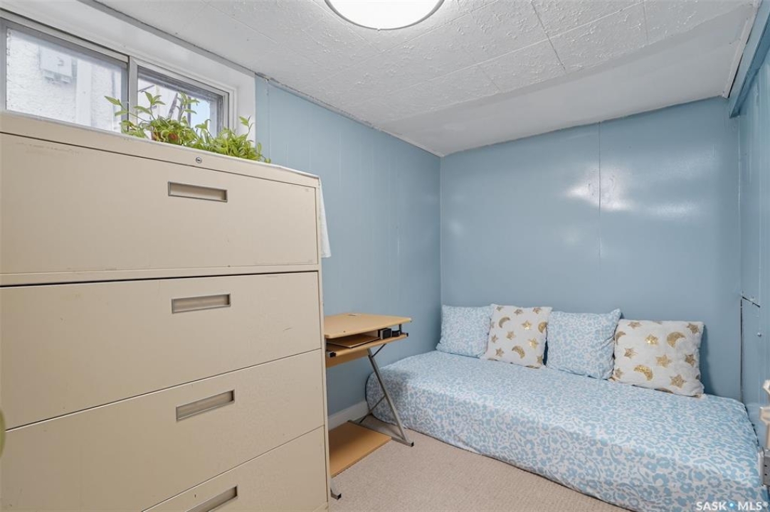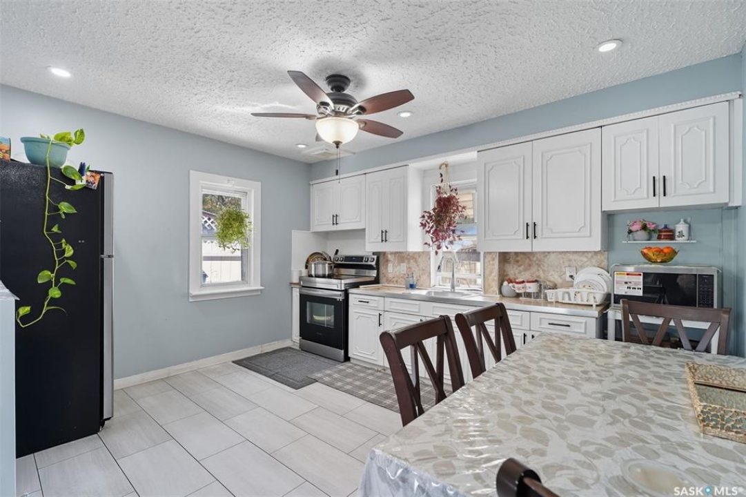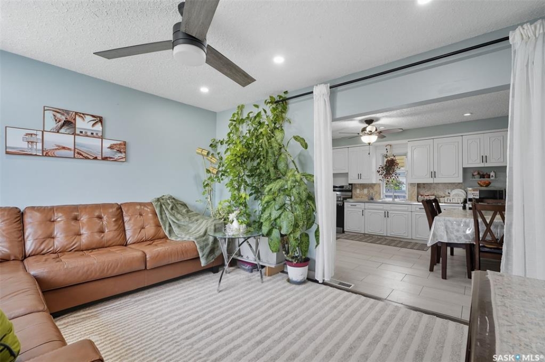 Bright, well-kept 1969 bungalow on a 50×130 corner lot in Meadowgreen—~2-min walk to the Dawah & Community Centre, steps to 22nd St transit/amenities, and an easy stroll to St. Paul's Hospital. Main level offers 3 bedrooms, a gorgeous eat-in kitchen (tile flooring, ceiling fan, LED pot lights, long run of cabinetry), a comfortable living room, and an updated 4-pc bath with tiled surround/niche (see photos). Bedrooms show warm wood tones; vinyl plank runs through most of the main for easy care. The enclosed back porch adds year-round utility—cold-room storage in winter, gear space in summer. Finished lower level features a bedroom + windowed den (use as office/flex), a bathroom with in-bath laundry (see photos), and extra storage. Outside, enjoy a fully fenced, extra-deep backyard with rear gate access and a single detached garage with opener and space for a workbench. Mature city trees are beyond the rear fence—so you get privacy and shade without giving up usable yard area. Possession March 2025.