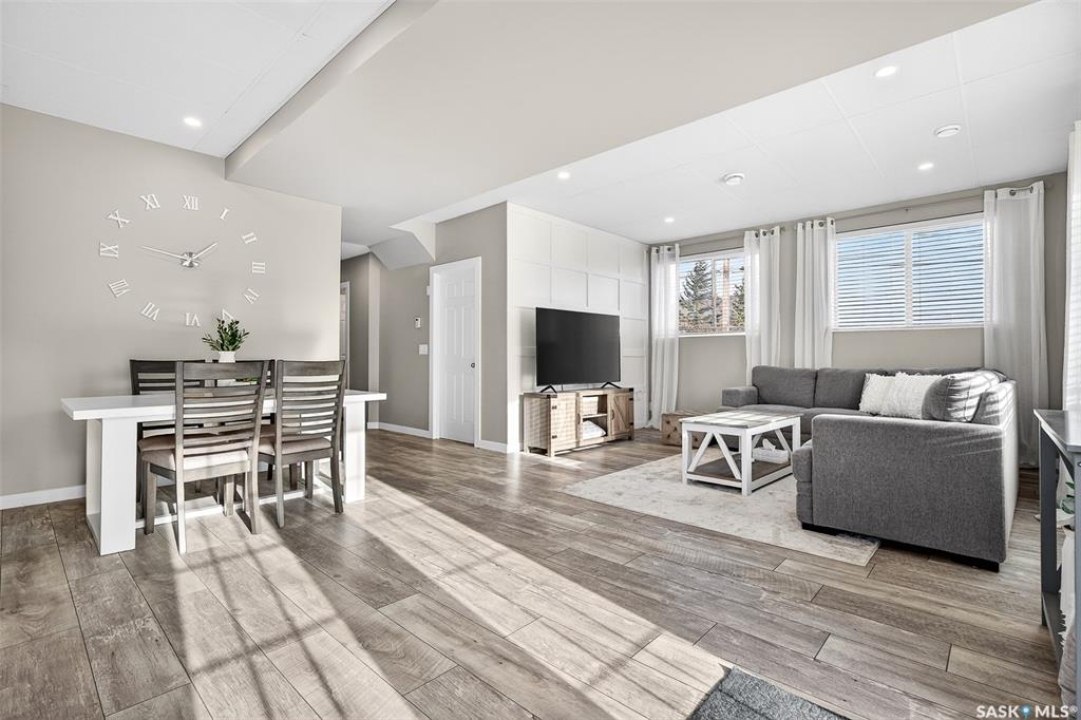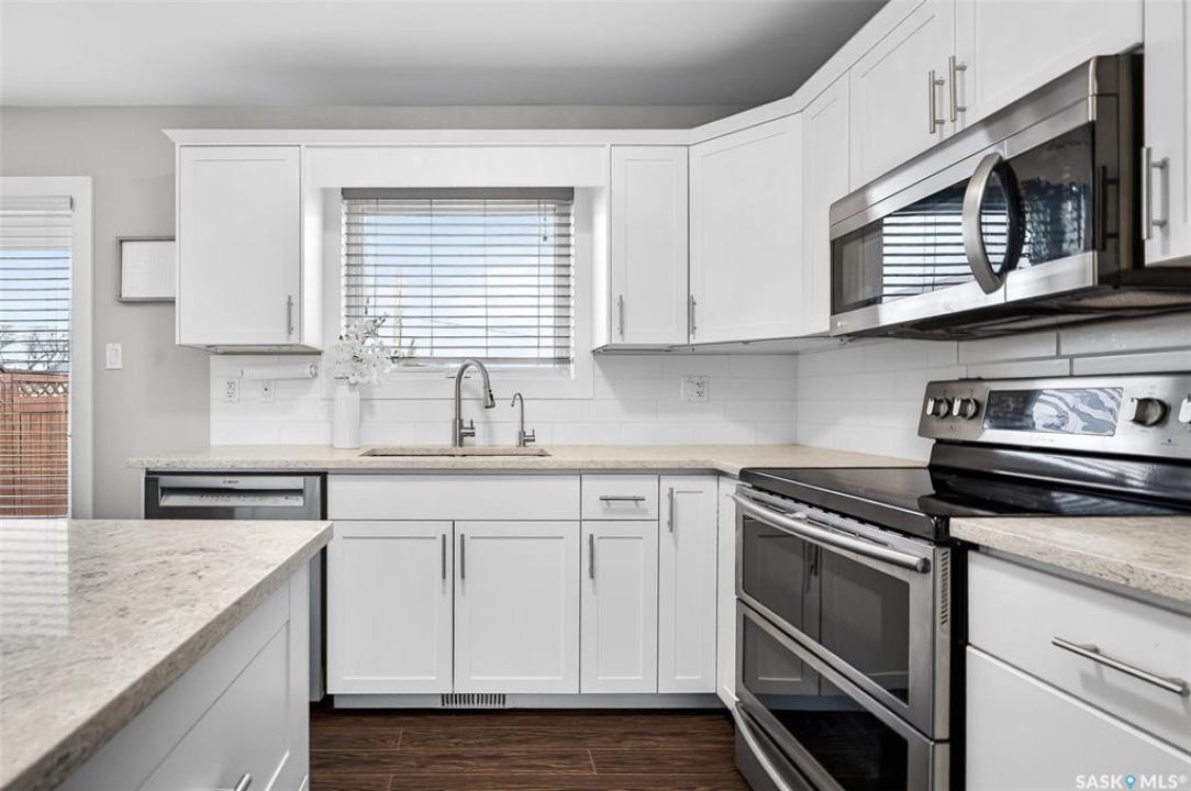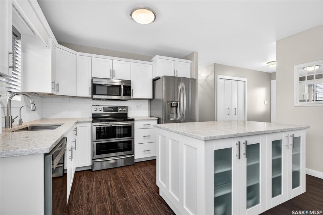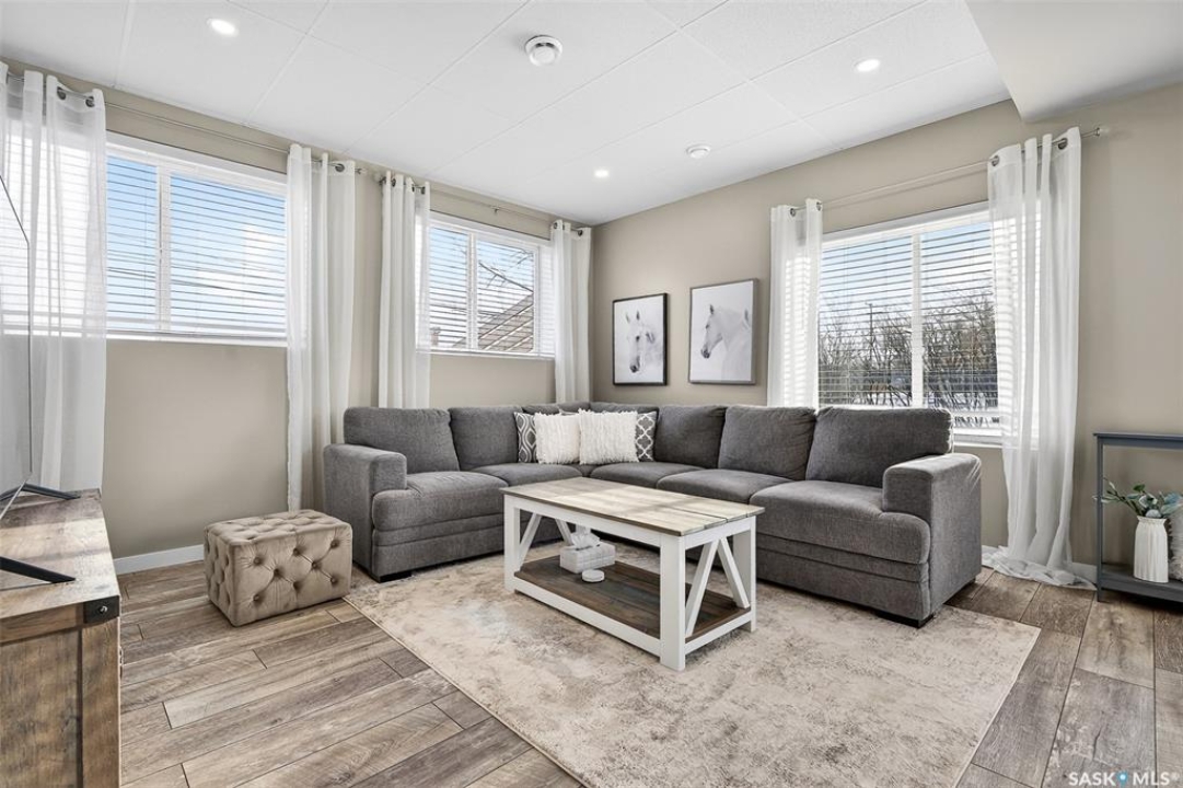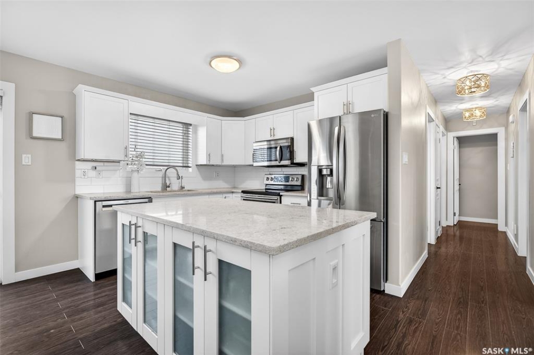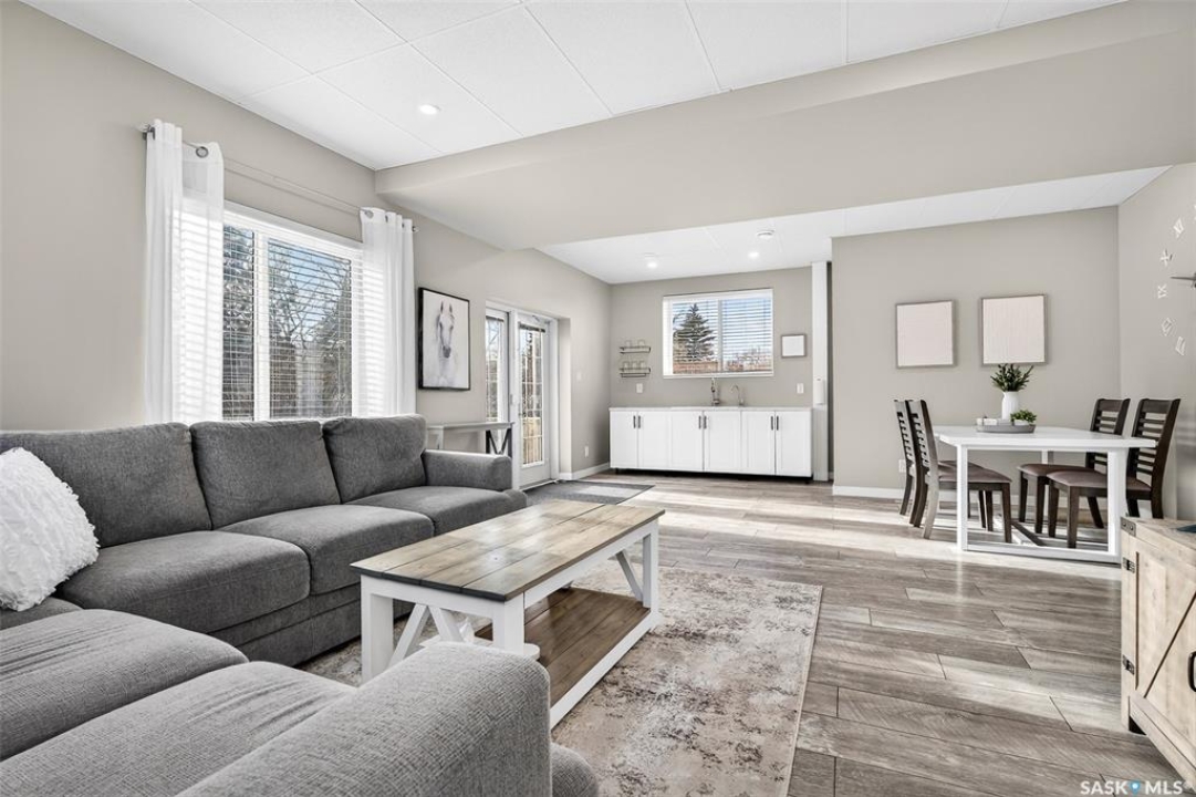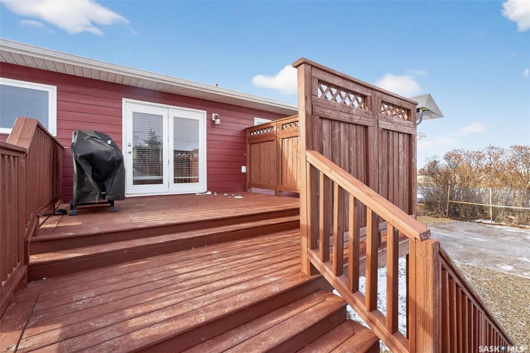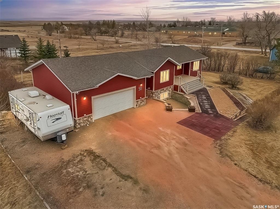 Absolutely STUNNING one-of-a-kind property in the charming Village of Mortlach! This 5 bedroom, 3 bathroom home hosts 1400 sq ft on the main floor, and has a WALKOUT basement! Meticulously cared for and beautifully updated top to bottom. Excellent curb appeal with beautiful siding and stone, large front deck, tiered garden beds, and lots of parking (including RV parking!) Enter the home and you will be wowed by the beautiful open spaces, vaulted ceiling, and custom built-ins. The kitchen hosts stunning, white cabinetry with tile backsplash, and new quartz countertops. The main floor hosts 3 good sized bedrooms, and an updated 4-pc bathroom. The large primary bedroom has his & hers closets and a full 4-pc en-suite. This main floor is complete with a mudroom and laundry room! Make your way downstairs to your newly finished walk-out basement with IN-FLOOR heat! This level is FULL of natural light with direct access out to the yard. You have a gorgeous family room with beautiful accent wall, games area, and wet bar. A great place to entertain/enjoy those family movie & game nights! Downstairs features two large bedrooms (murphy bed included in the sale), and a 2-pc bathroom (this bathroom has space and has a roughed-in drain under the vinyl plank for a future tub if desired). This level comes complete with a storage room, and additional utility room. The home comes with an attached 28' x 32' garage. The concrete pad has not been poured, but the garage has water lines running to it for future in-floor heat. The home is on city water and town sewer with an additional RO system installed if desired. This home sits on 4 lots, giving you a total area of 24,000 sq ft. Also included in the sale is an additional 6000 sq ft lot on the east side of the home across the alley to provide unobstructed views from your yard. Updates include: New boiler & AC, new countertops, some flooring, microwave, dishwasher, washer. Ask your agent for more info and to book your showing today!