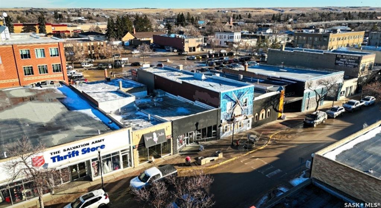 Your new business opportunity is positioned right in the middle of the downtown Swift Current business core! Offering 3,320 sq ft of open commercial space with unbeatable foot + vehicle traffic exposure, this single storey building features a brick + stone exterior, a low slope roof, 9.5 ft ceilings, an employee washroom, ample storage/work space, dual partial basements for additional storage, classic wood floors and a natural gas fireplace. This space also highlights two window staging display areas, to showcase your business attributes. These large, updated windows contain a protective UV tint, to avoid fading of window displayed products. Other notable features include 200 amp electrical service, an HE furnace (2017), central air conditioning (2018), updated water lines, and an updated foam roof (approx 10 years ago) to prevent any issues. This historic building has been very well maintained and is suitable for a variety of commercial uses. Located on one of the main through streets, leading into the downtown area, this highly visible gem of a business opportunity is priced at approximately $90/sq ft for all of this! Please call for additional details and to schedule your private tour.