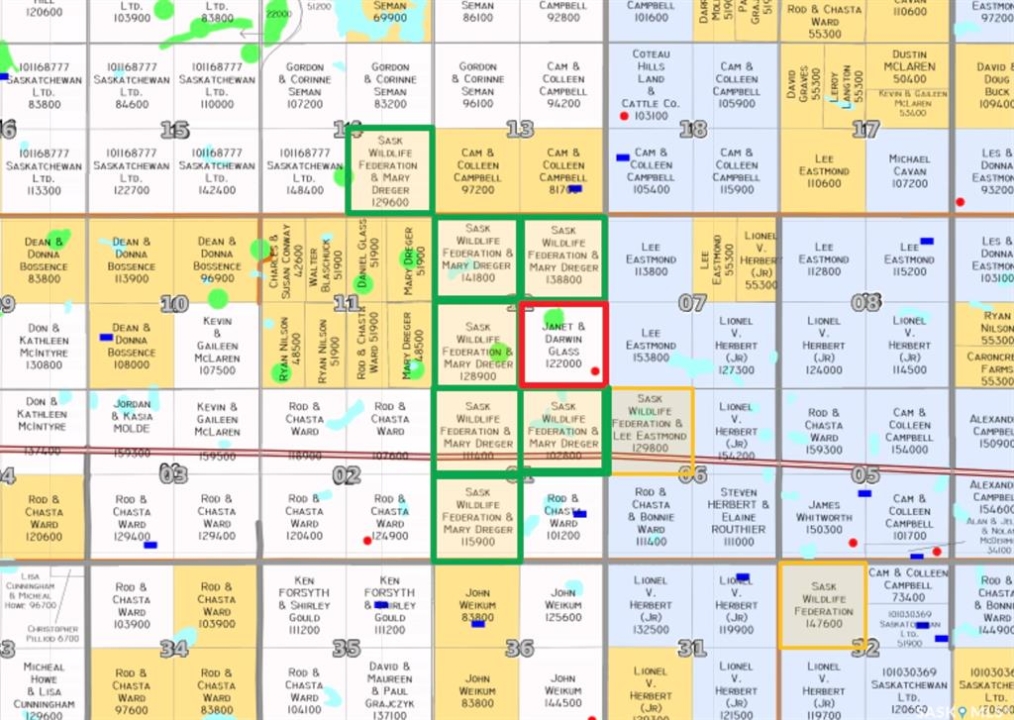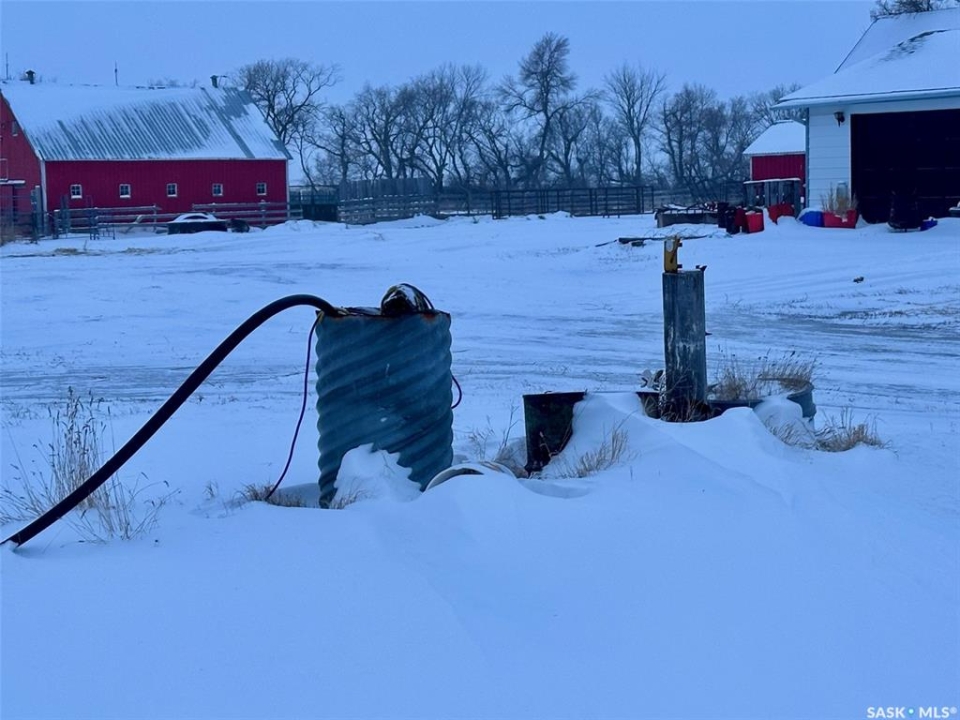 7 lease quarters (Buyer must apply to Sask Wildlife and qualify) and 1 deeded home quarter with a complete ranching or farming headquarters. This well-equipped property features a 5-bedroom home with newer water heater, updated furnace, flooring, shingles, and electrical, plus a detached two-car garage. Yard improvements include a 50' x 80' steel quonset with power, barn with water hydrant, chicken coop with concrete floor, two 1,200 bushel bins with hopper cones, corrals, and multiple sheds. Excellent water system with a 200' dugout at the home yard, new pump in a 60' well supplying the house and barn, 1,400' of trenching and wiring for five water bowls (bowls not included), and two new dugouts on lease quarters. Additional improvements include one mile of new five-wire fence. A rare opportunity to acquire a complete, turnkey ranch or farm home base with extensive infrastructure and water development.