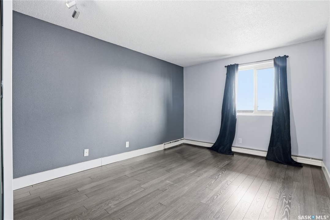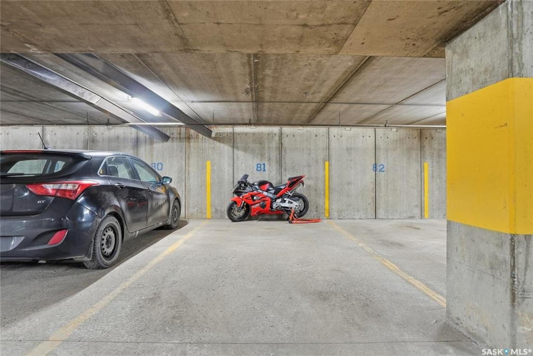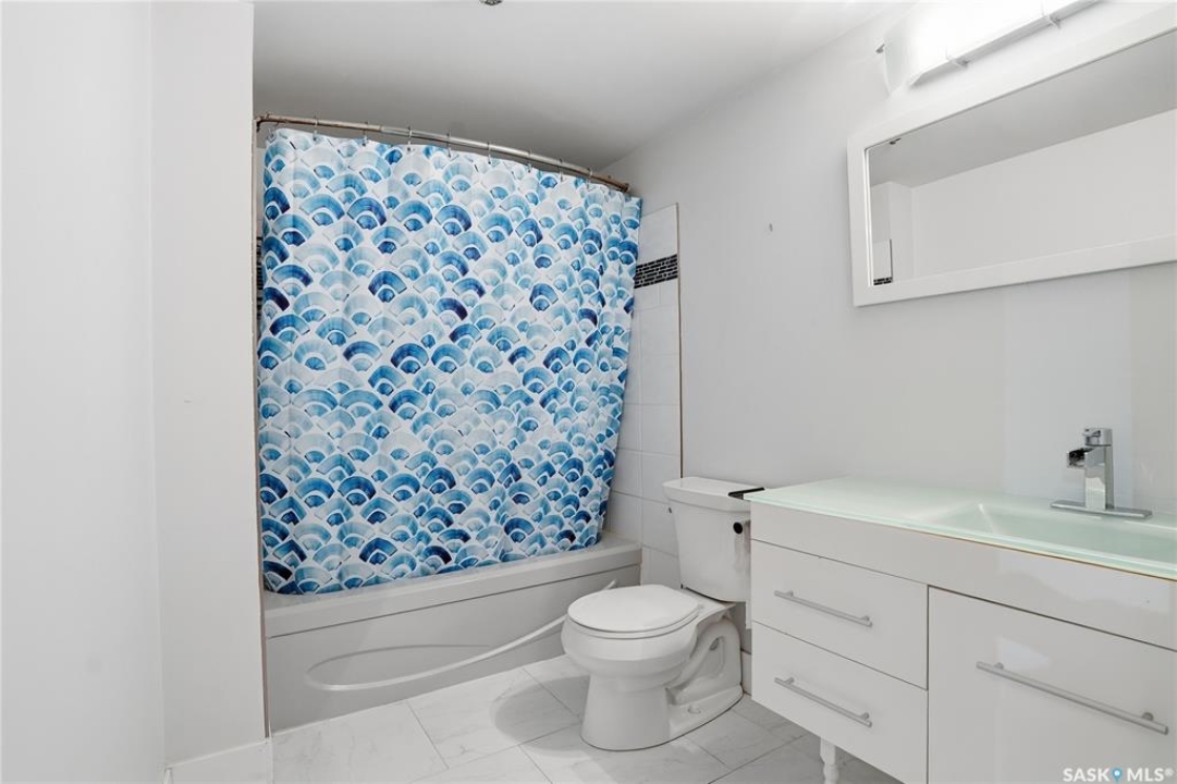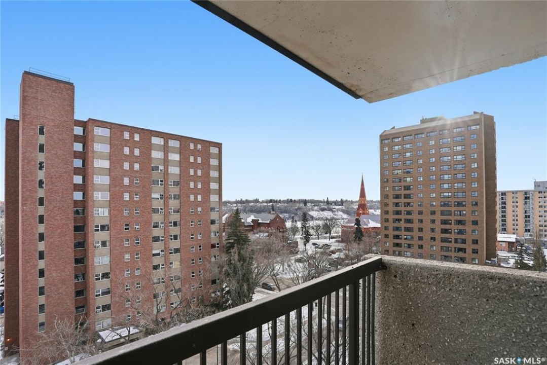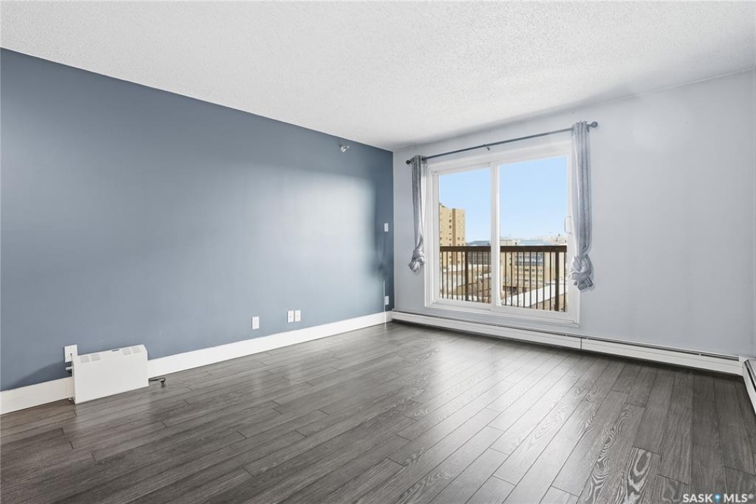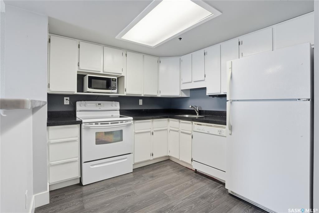 Welcome to unit #905 – 311 6th Avenue North, a 677 sq ft 9th floor condo located in Saskatoon's Central Business District. Coming inside, you are met with a bright, open concept floor plan. Your kitchen features quartz countertops, fridge, stove, microwave and dishwasher, white painted cabinets, and marble breakfast bar great for additional seating. Open to your dinette, and family room. With sliding door access to your East facing balcony, with PVC siding, and beautiful views overlooking Kinsmen Park and the river. Your bedroom provides ample space with a closet with custom organizers and continued laminate flooring. Your 4-pc bath features tile flooring, tile surround tub, modern vanity, and stacking washer/dryer for convenient in-suite laundry. 1 underground parking stall is included. Complex contains a workout room, a sports court, convenience store, hair salon, dry sauna, and much more – making this a highly desired building! Do not miss out on this downtown opportunity!