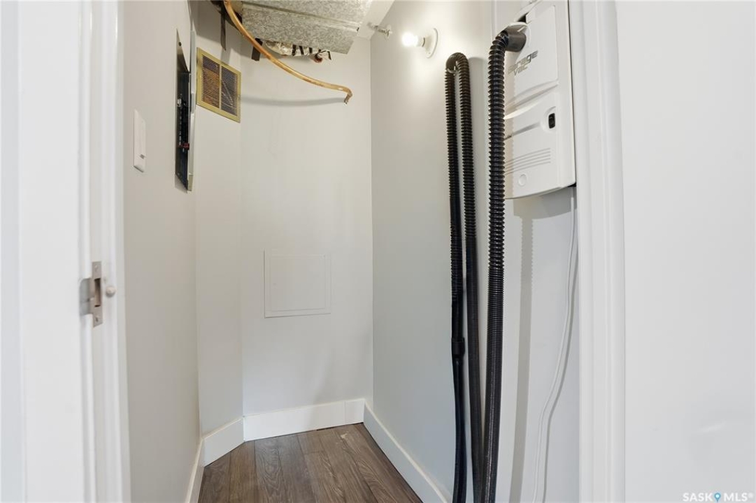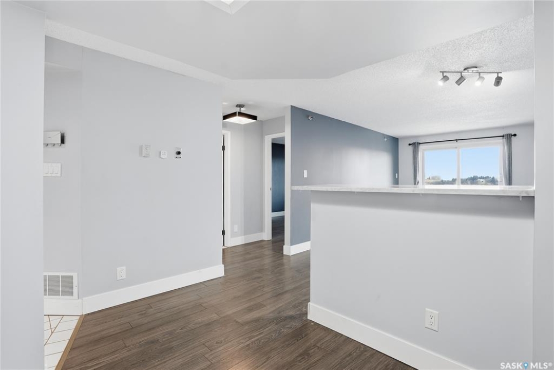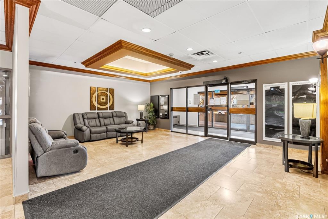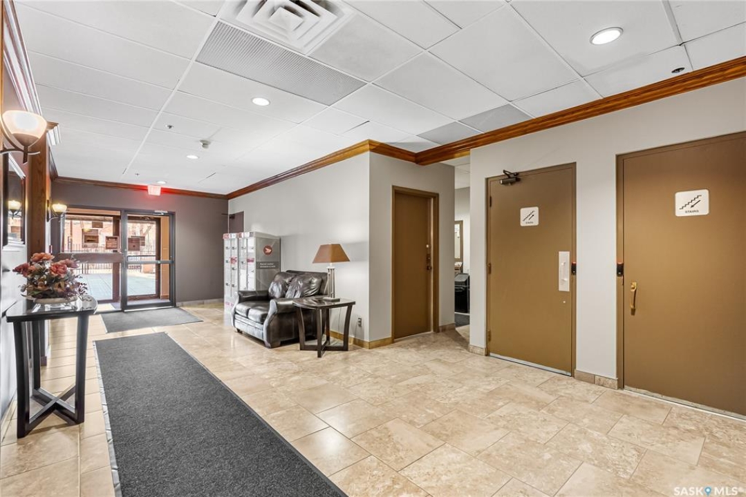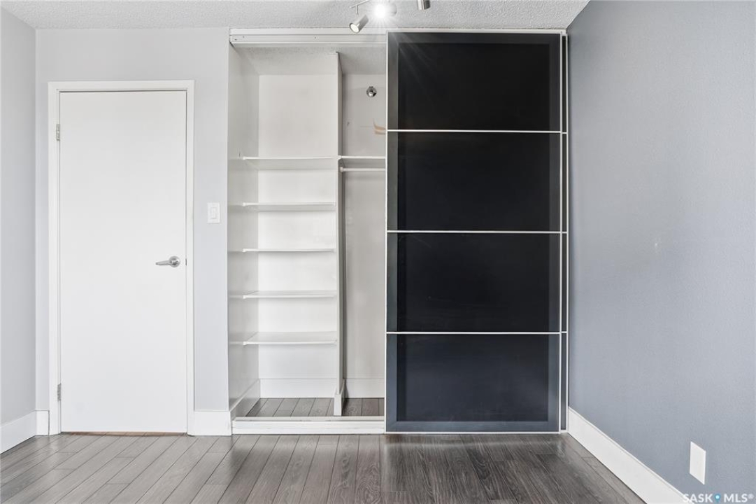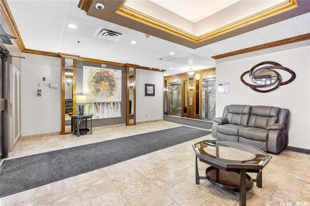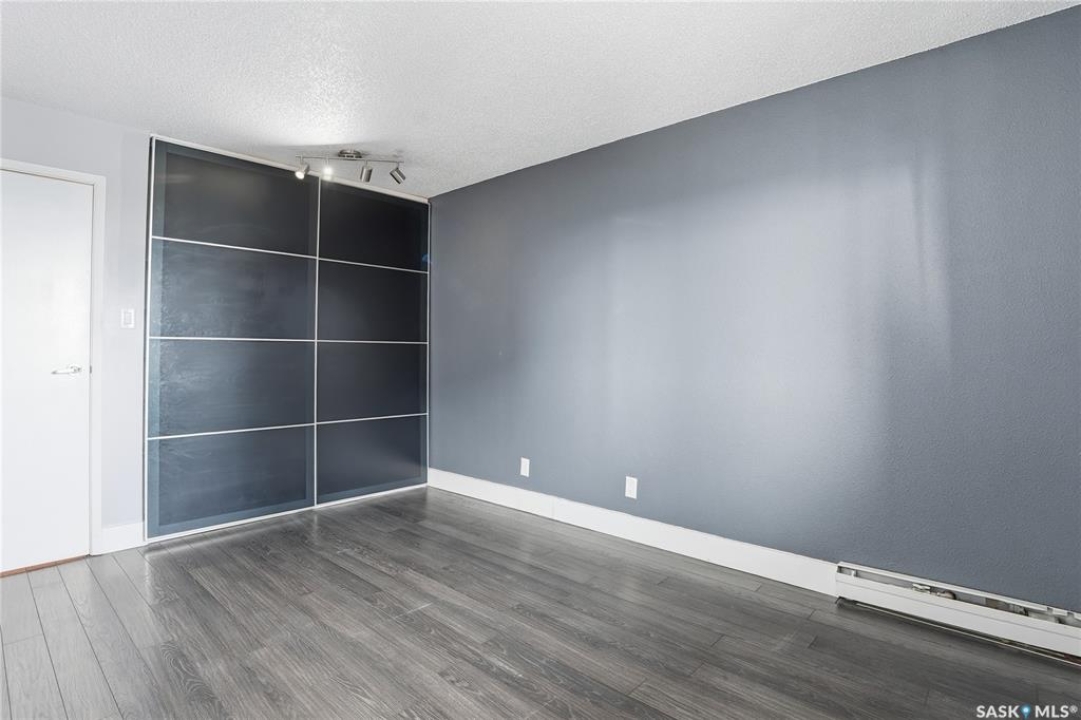 Welcome to unit #905 – 311 6th Avenue North, a 677 sq ft 9th floor condo located in Saskatoon's Central Business District. Coming inside, you are met with a bright, open concept floor plan. Your kitchen features quartz countertops, fridge, stove, microwave and dishwasher, white painted cabinets, and marble breakfast bar great for additional seating. Open to your dinette, and family room. With sliding door access to your East facing balcony, with PVC siding, and beautiful views overlooking Kinsmen Park and the river. Your bedroom provides ample space with a closet with custom organizers and continued laminate flooring. Your 4-pc bath features tile flooring, tile surround tub, modern vanity, and stacking washer/dryer for convenient in-suite laundry. 1 underground parking stall is included. Complex contains a workout room, a sports court, convenience store, hair salon, dry sauna, and much more – making this a highly desired building! Do not miss out on this downtown opportunity!