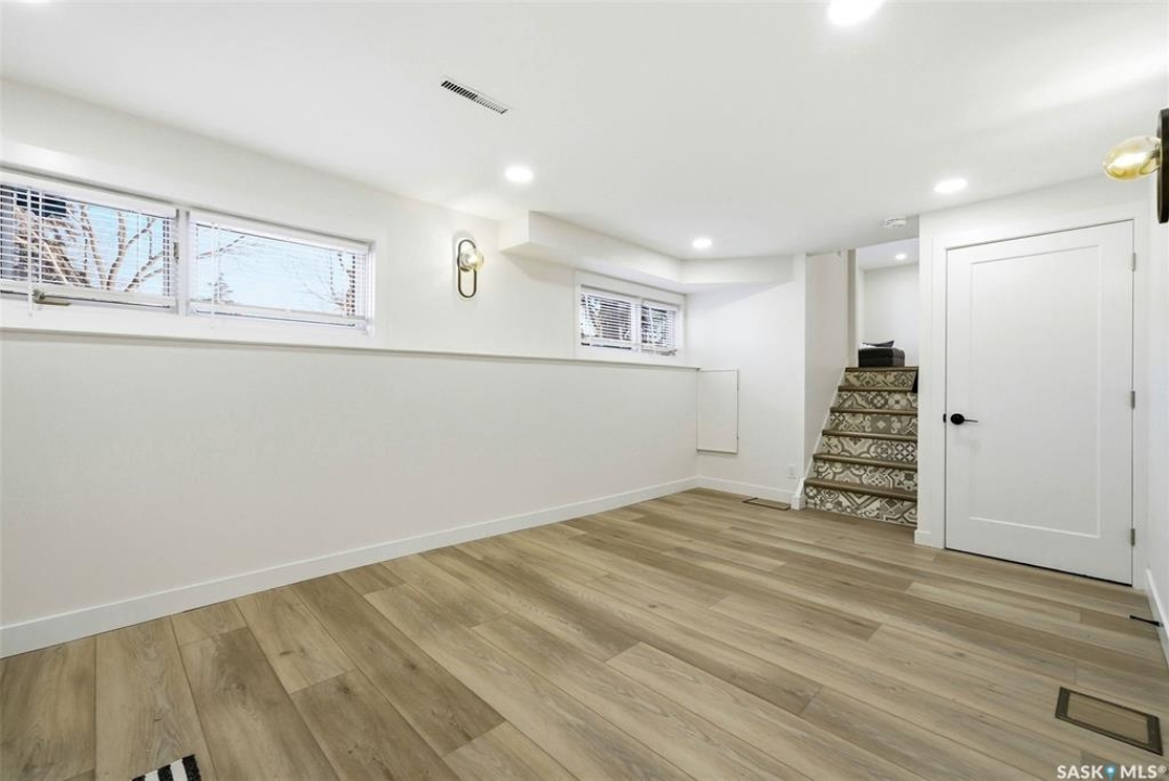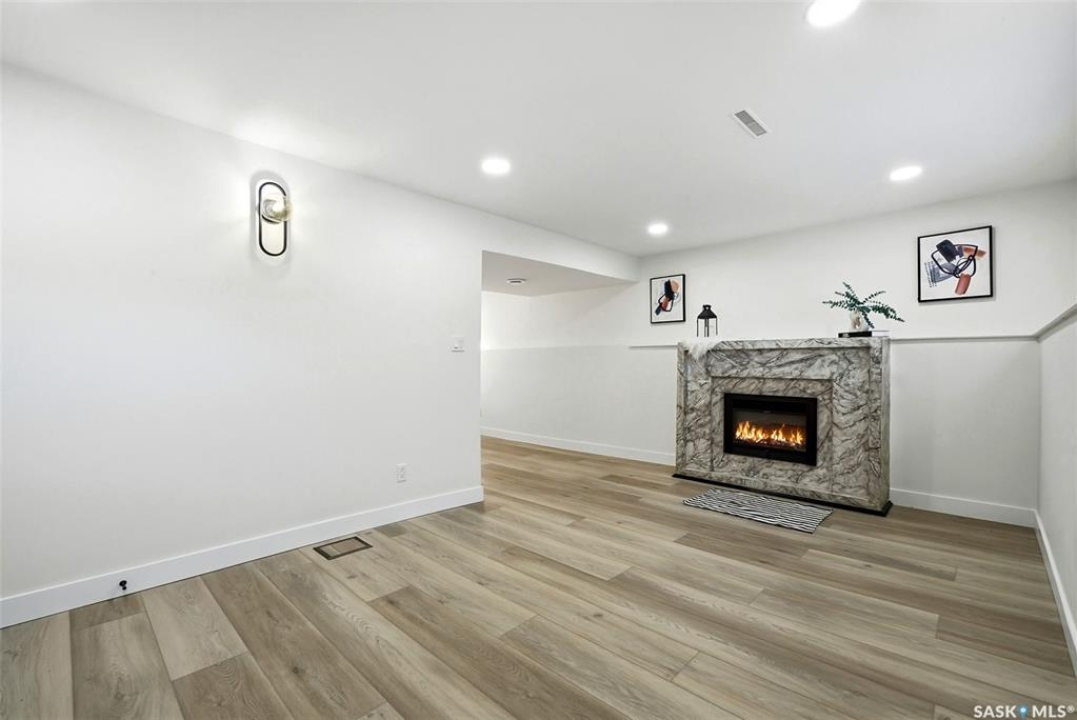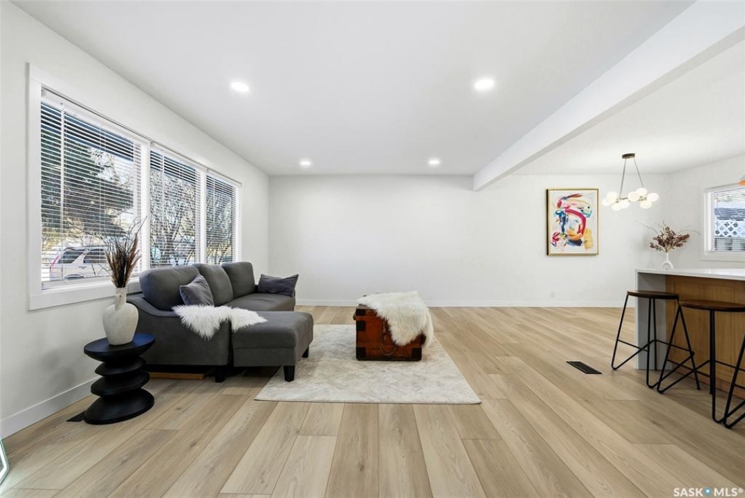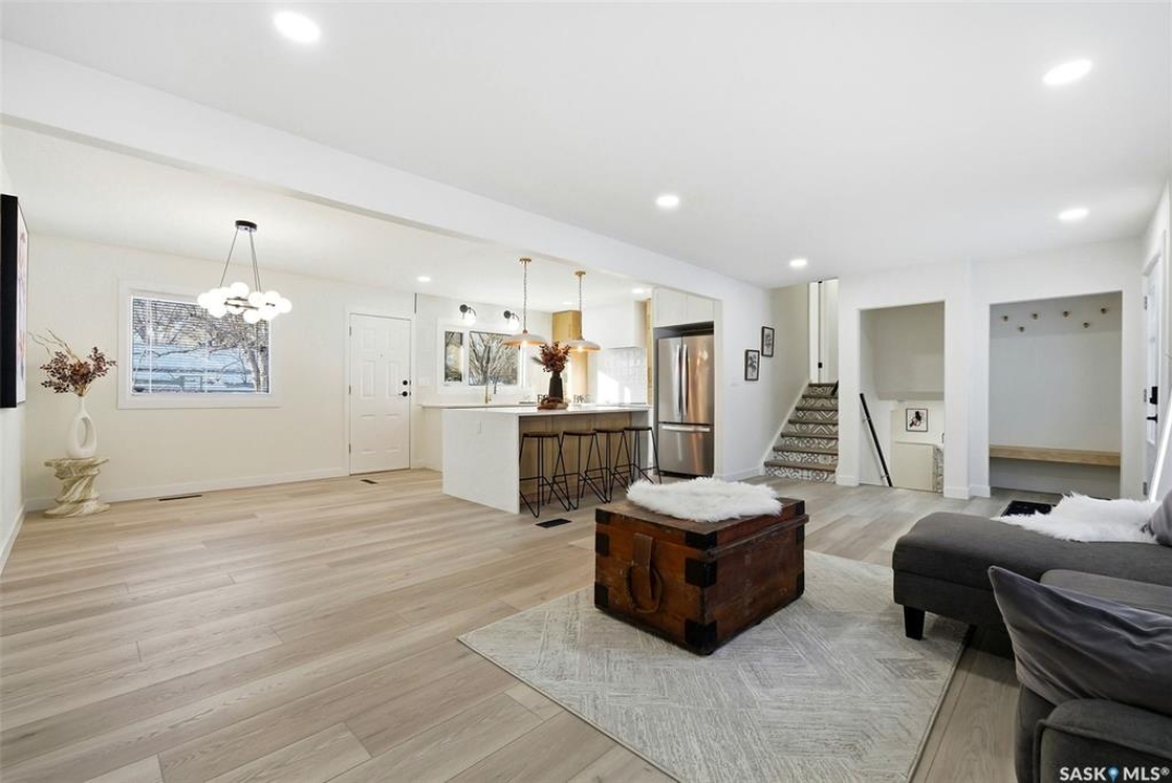 Welcome to 96 Bobolink Bay, a beautifully renovated family home tucked away on a quiet bay in desirable Whitmore Park. This move-in-ready property offers a thoughtful blend of modern design and functional living, with quality updates throughout. The main floor features a bright, open living space with large windows, durable vinyl plank flooring, and a stylish kitchen and dining area ideal for everyday living and entertaining. Three well-sized bedrooms and a fully updated 4-piece bathroom complete the upper level, showcasing clean finishes and contemporary fixtures. The lower level has been fully developed and offers an inviting rec room highlighted by a cozy electric fireplace, perfect for relaxing evenings. You'll also find an additional bedroom, a beautifully finished 3-piece bathroom with custom tile shower, and a functional laundry/utility area with front-load washer and dryer. Modern lighting, updated flooring, and eye-catching stair detailing add to the home's cohesive design. Situated on a generous lot with a spacious backyard, deck, and mature trees, this home offers plenty of room for outdoor enjoyment, gardening, or future garage potential. Located within walking distance to Massey School and Campbell Collegiate, this is an excellent opportunity to own a turnkey home in a well-established south Regina neighborhood.