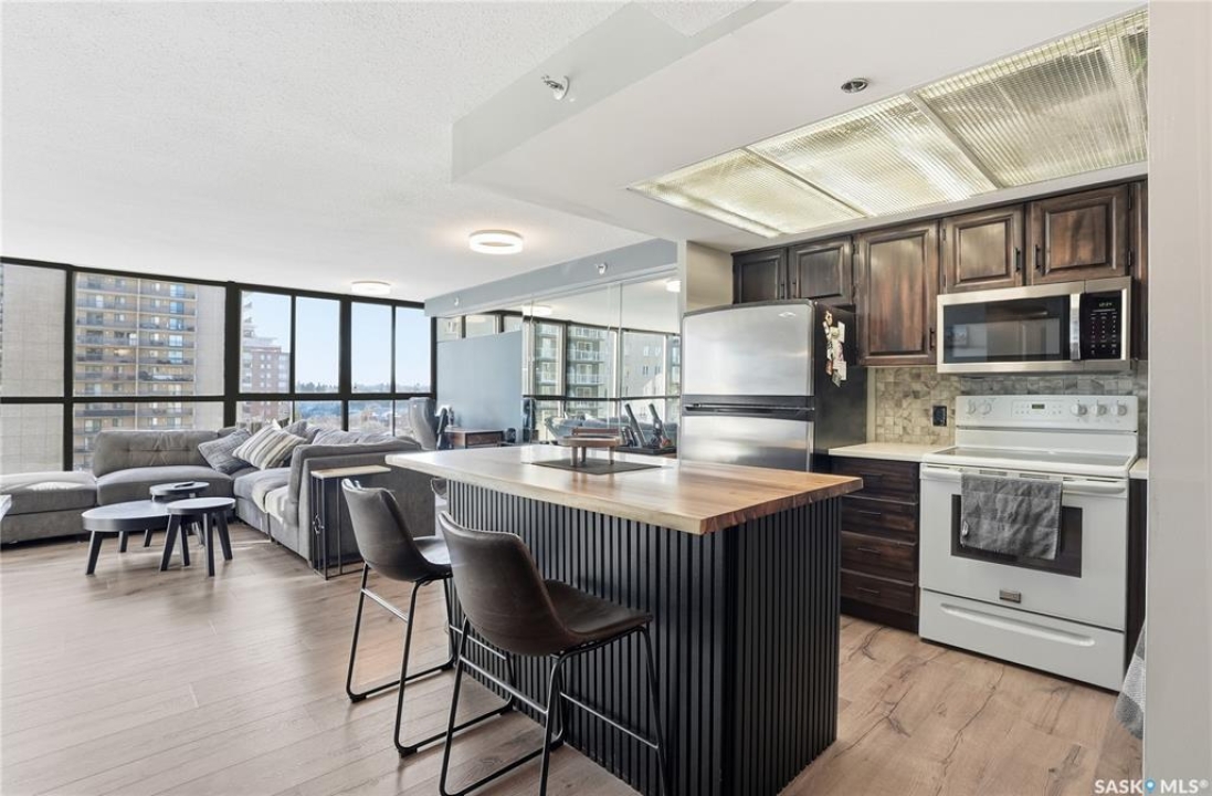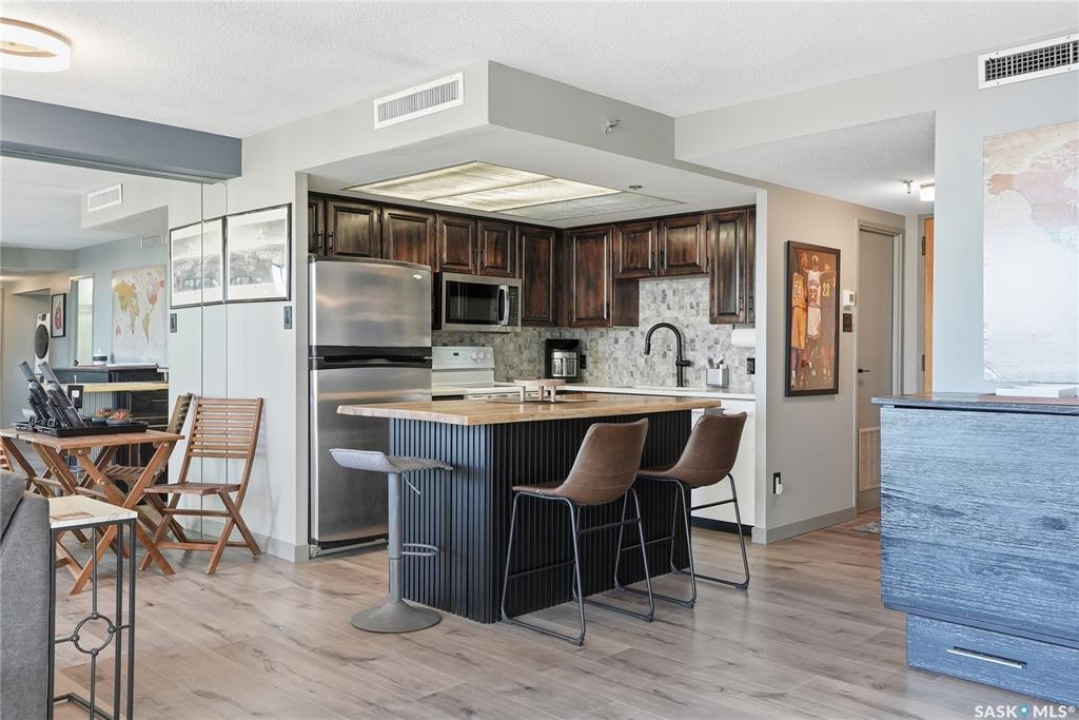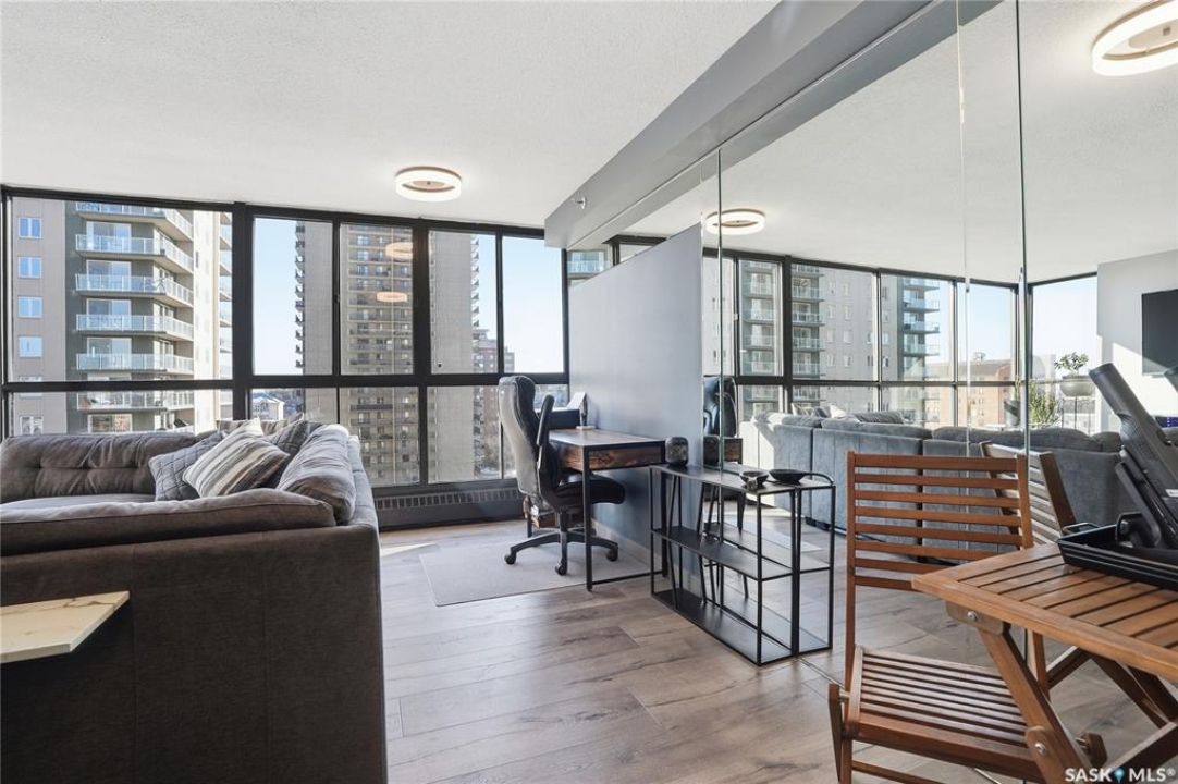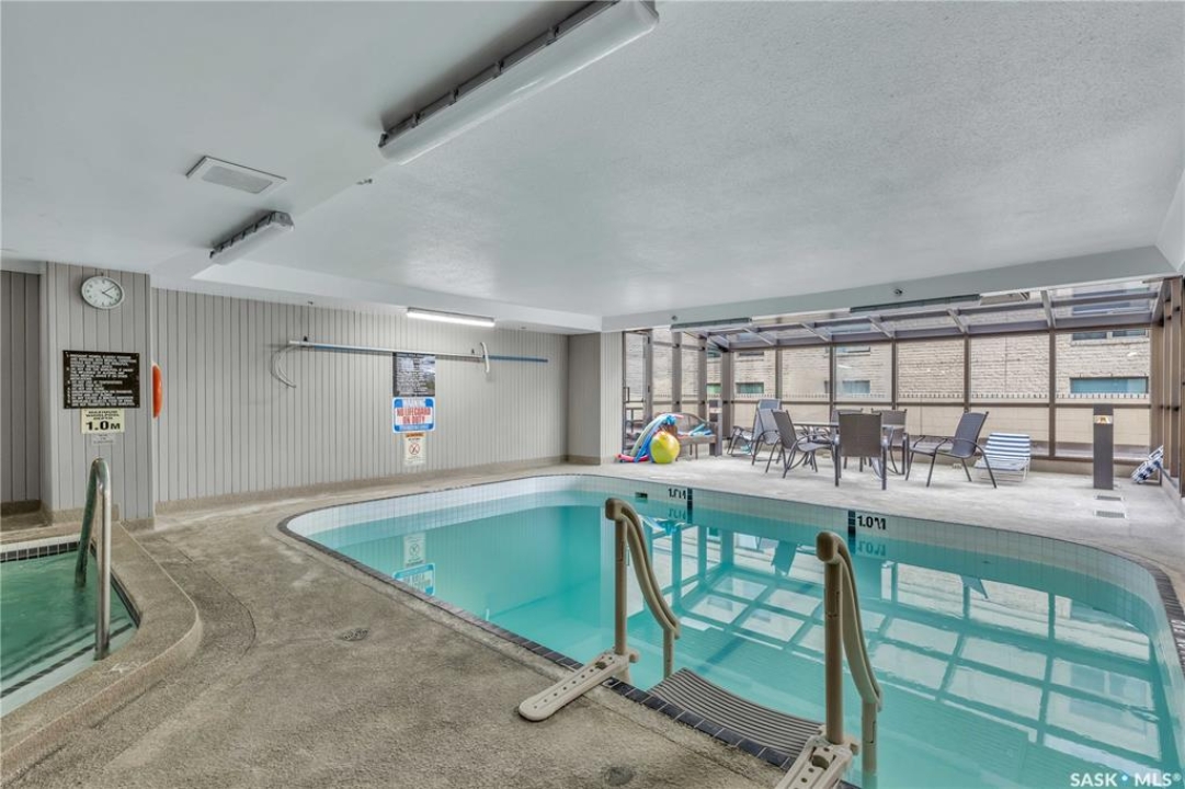 With sweeping views of downtown, this beautifully updated two-bedroom, two-bathroom home in The Terrace offers the perfect balance of comfort, style, and convenience. Floor-to-ceiling windows in the living and dining areas fill the space with natural light and create a bright, welcoming atmosphere that's ideal for both relaxing and entertaining. Both bedrooms enjoy wonderful sunlight, and the spacious primary suite is a true retreat with a walk-in closet and private ensuite. Thoughtful updates throughout make this home move-in ready, allowing you to simply unpack and enjoy. The building's amenities — including an indoor pool, hot tub, recreation room, and outdoor patio with barbecue area — add to the ease of everyday living. Located within walking distance to the University of Saskatchewan, City Hospital, RUH, and downtown, this is an ideal home for those seeking a vibrant, low-maintenance lifestyle in a central, established neighbourhood. Immediate possession is available — a wonderful opportunity to make this beautiful space your next chapter.