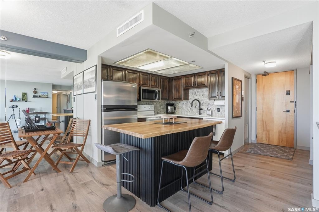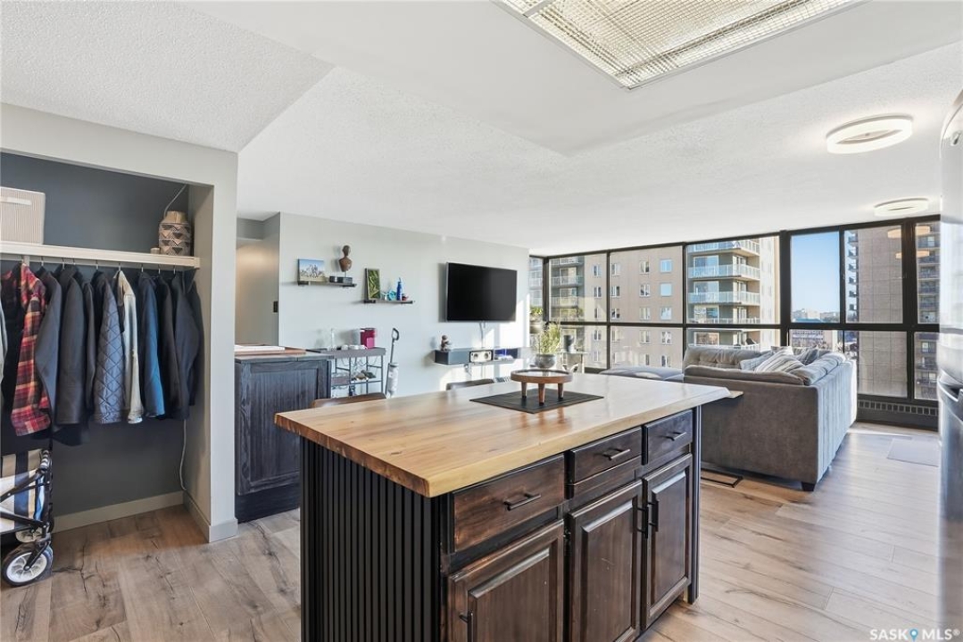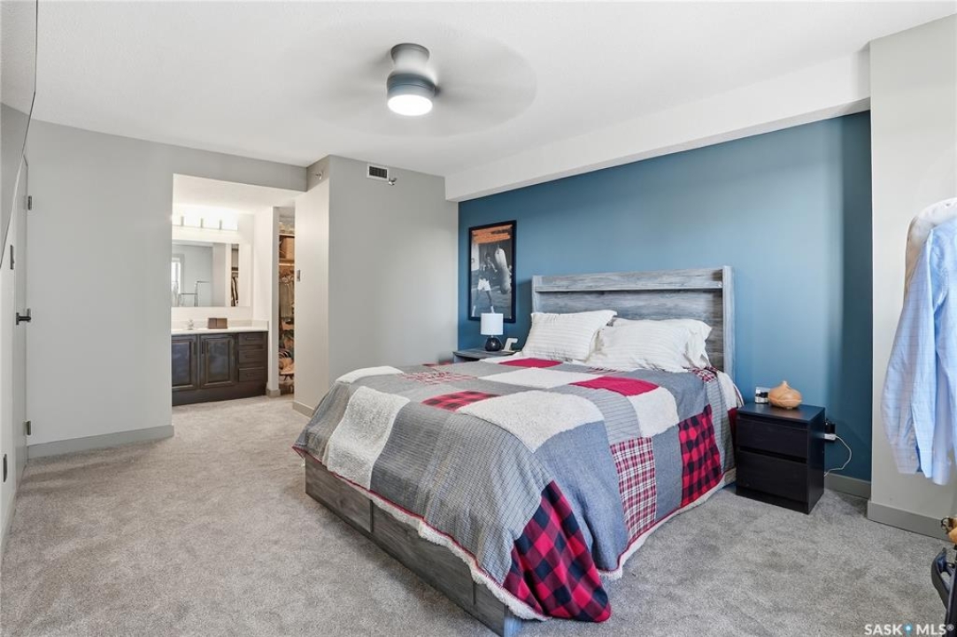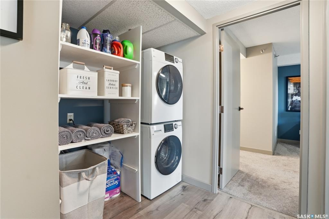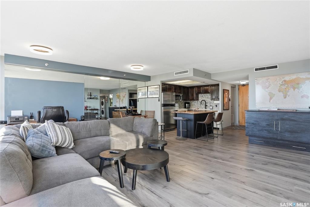 With sweeping views of downtown, this beautifully updated two-bedroom, two-bathroom home in The Terrace offers the perfect balance of comfort, style, and convenience. Floor-to-ceiling windows in the living and dining areas fill the space with natural light and create a bright, welcoming atmosphere that's ideal for both relaxing and entertaining. Both bedrooms enjoy wonderful sunlight, and the spacious primary suite is a true retreat with a walk-in closet and private ensuite. Thoughtful updates throughout make this home move-in ready, allowing you to simply unpack and enjoy. The building's amenities — including an indoor pool, hot tub, recreation room, and outdoor patio with barbecue area — add to the ease of everyday living. Located within walking distance to the University of Saskatchewan, City Hospital, RUH, and downtown, this is an ideal home for those seeking a vibrant, low-maintenance lifestyle in a central, established neighbourhood. Immediate possession is available — a wonderful opportunity to make this beautiful space your next chapter.