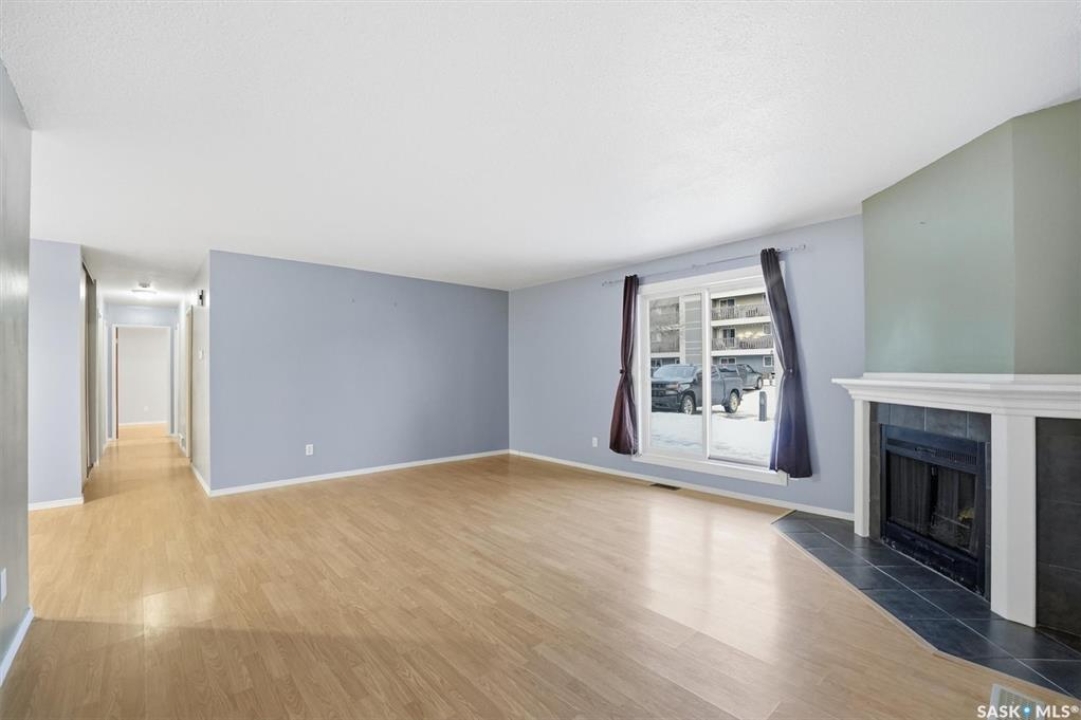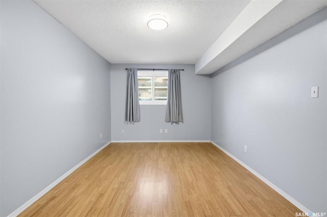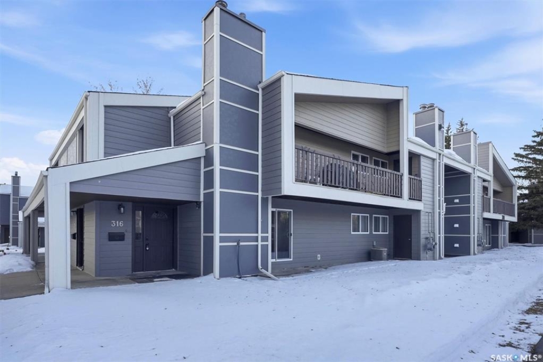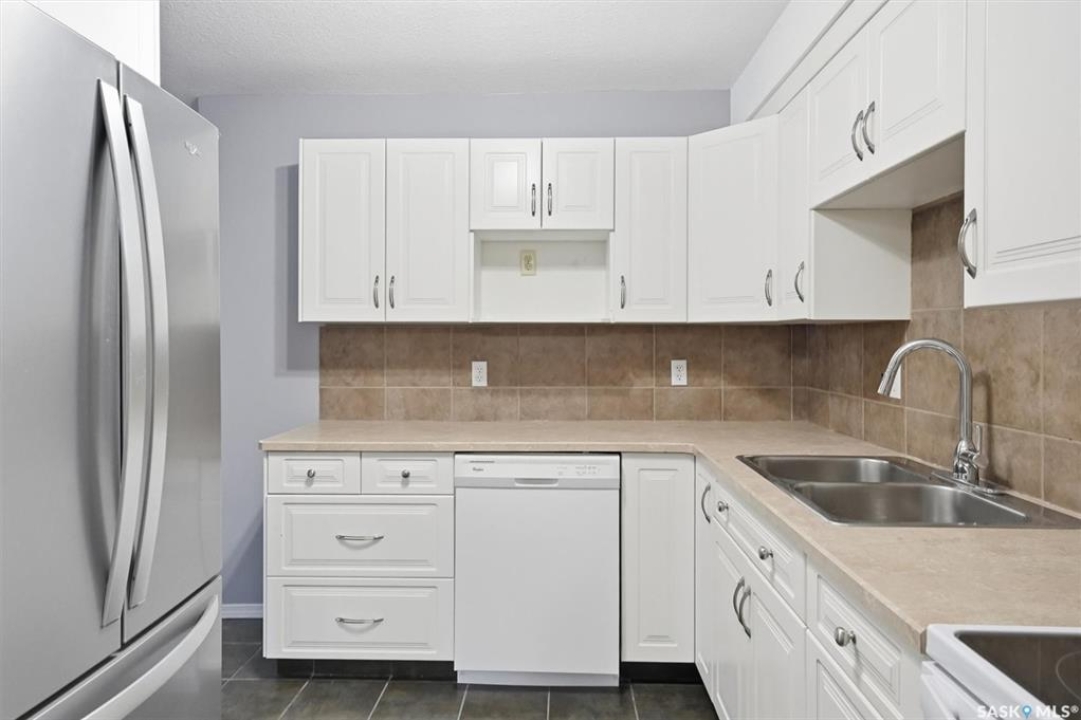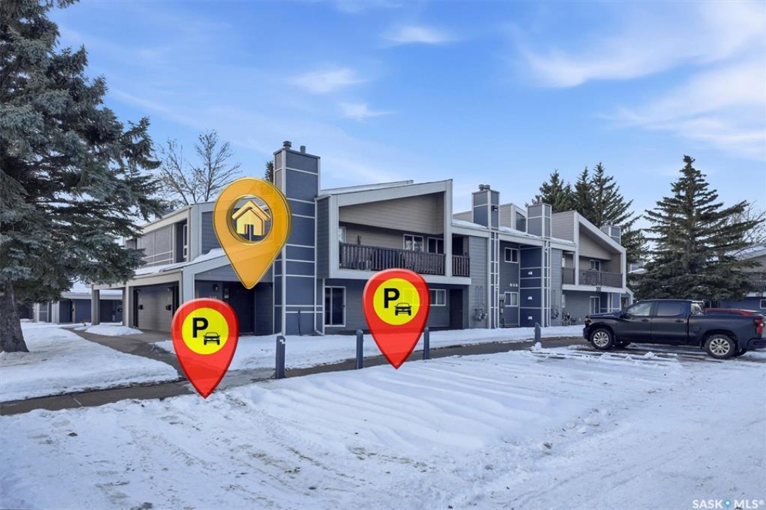 Spacious main-floor condo, offering a generous 1,313 square feet of beautifully maintained living space. From the moment you step inside, you will notice the seamless blend of comfort and modern updates that make this home truly move-in ready. The upgraded kitchen features sleek tile flooring and a full set of reliable appliances, including a fridge, stove, and dishwasher. Transitioning into the expansive family room, you are greeted by laminate flooring and a charming wood-burning fireplace. Large sliding doors open directly onto your private deck and patio area, extending your living space into the fresh air. The layout is thoughtfully designed with three spacious bedrooms, including a massive master suite that serves as a private retreat with its own convenient two-piece ensuite. A full four-piece bathroom serves the rest of the home, while a dedicated utility and storage room, complete with a washer and dryer. This property has been cared for, with significant exterior upgrades completed in 2017 including new windows and doors, alongside a newer furnace and water heater. Located in a prime Forest Grove location, this condo offers more than just a beautiful interior. Residents enjoy access to a common amenities room, perfect for hosting larger gatherings. The home is perfectly positioned within walking distance of local schools and picturesque walking paths, and its proximity to major bus routes provides a quick and easy commute to the University of Saskatchewan. This is a rare opportunity to secure a large, fully updated condo where every detail has been handled for you.