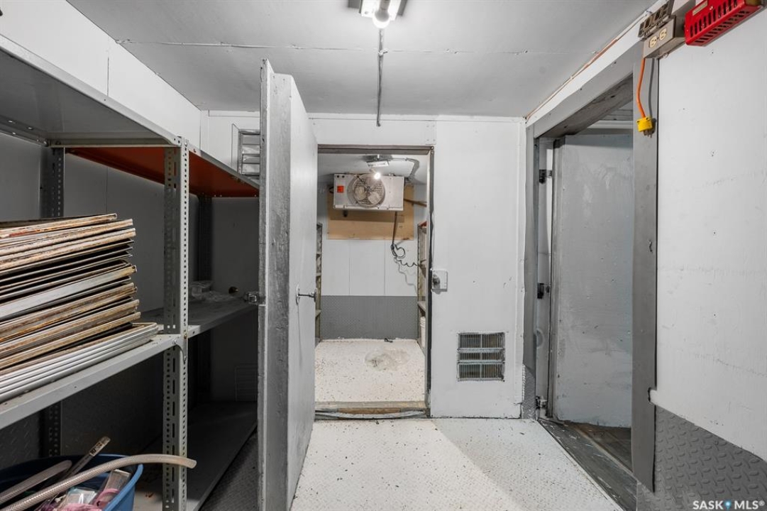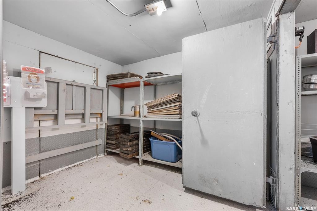 In the growing, town of Southey half an hour north of Regina. This commercial property presents a unique opportunity that is to create a thriving business environment tailored to your specific needs. Whether you are looking to establish a grocery store, bakery, coffee shop, restaurant, or retail space, the combination of a large kitchen area, walking freezer, and flexible layout makes this property a fantastic choice. This property is for lease as well. The freezers and coolers are as-is condition.