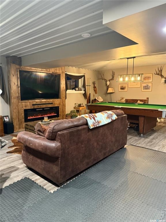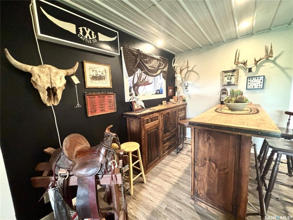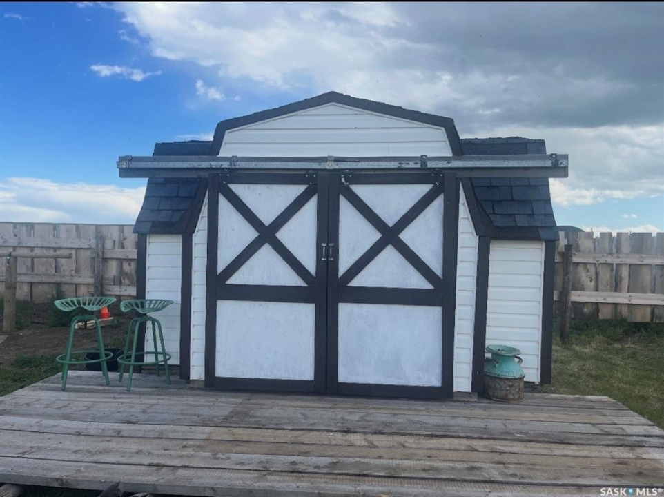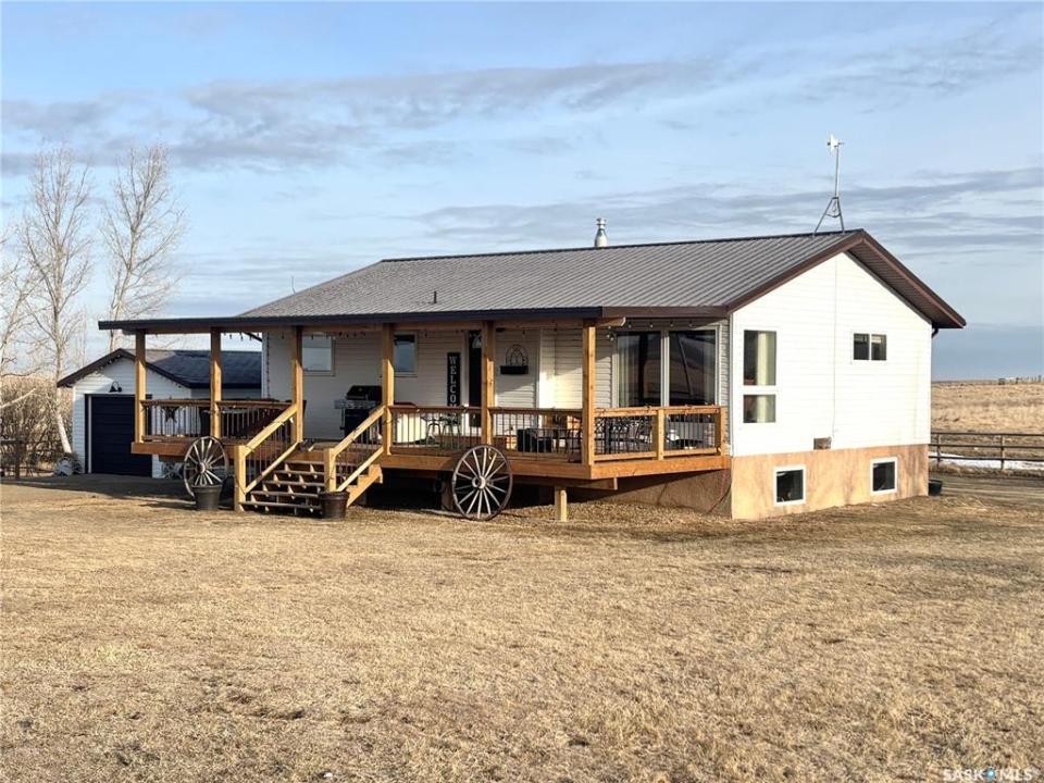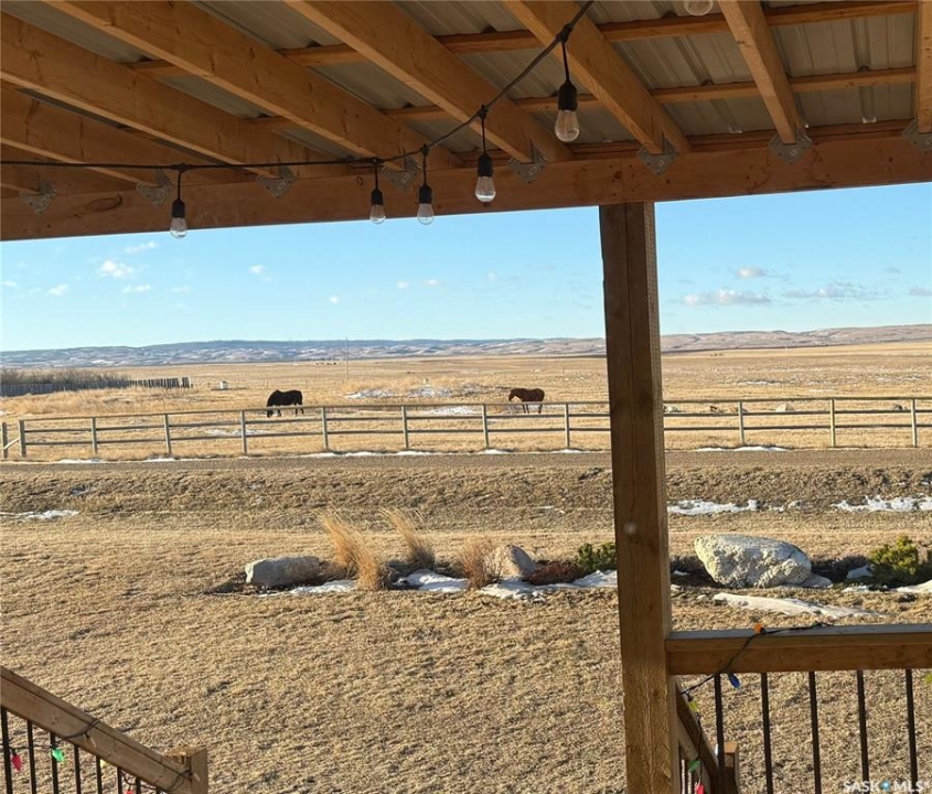 Welcome to this gorgeous 54-acre property boasting breathtaking views of the Cypress Hills, located just a short 15-minute drive east of Maple Creek. The land is well set up for livestock and equestrian use, featuring paddocks, sheltered pens, and five water bowls—three energy-free and two powered—for year-round convenience. A spacious 150 x 200 slab riding arena, illuminated by solar lights, adds to the property's exceptional functionality. The meticulously updated home features new windows and a hot water tank, with the seller noting that the furnace was replaced in 2017. Inside, you'll find four spacious bedrooms—including one upstairs currently used as an office—and two bathrooms, creating a comfortable family home. The home is fully modernized, down to thoughtful touches like a pot-filling tap above the stove, and offers the comfort of air conditioning. Downstairs was designed with family and friends in mind, featuring a bar, space for a pool table, a built-in entertainment centre, and even room for a workout machine. Step outside to enjoy a single-car garage near the house, a cozy firepit area, and expansive views in every direction. The fuel source is a large propane tank that requires filling only once or twice a year, and the well provides potable water. For hobbyists or those needing extra workspace, the 30 x 50 shop comes complete with a cement floor and a wood-burning stove. This unique property blends rural charm with modern conveniences—truly a must-see!