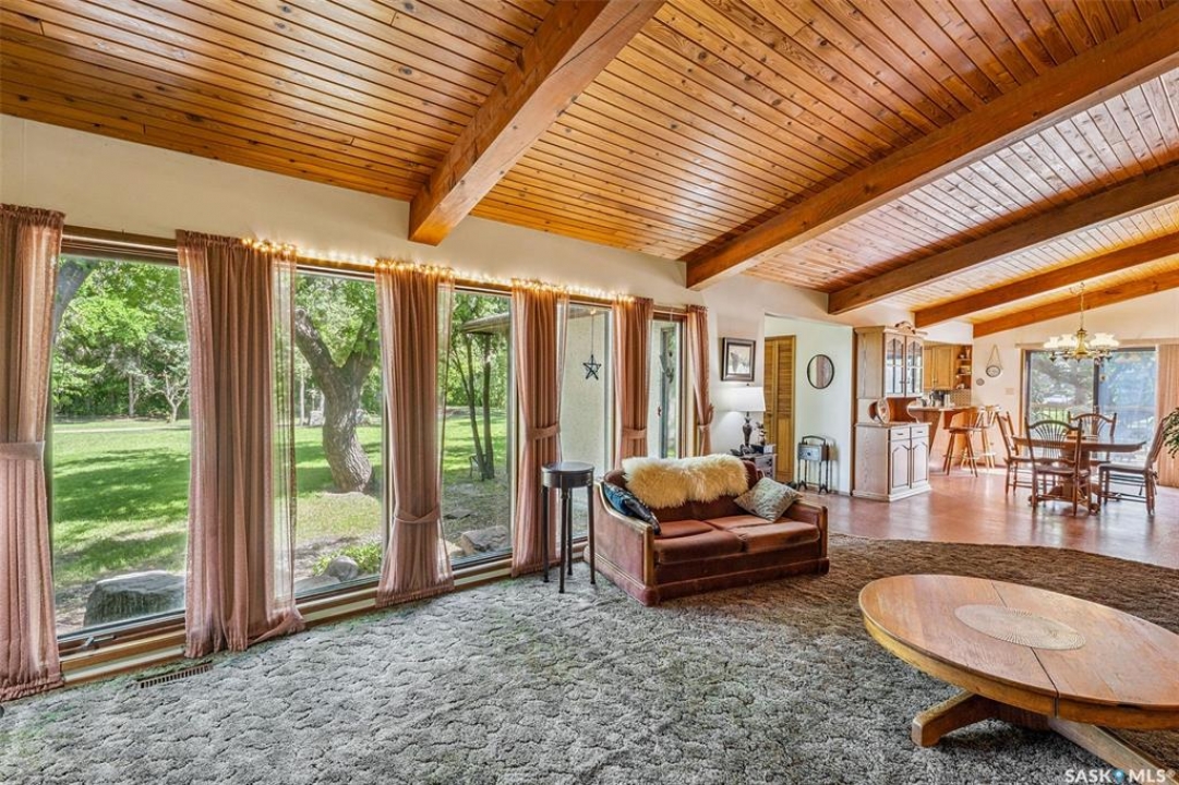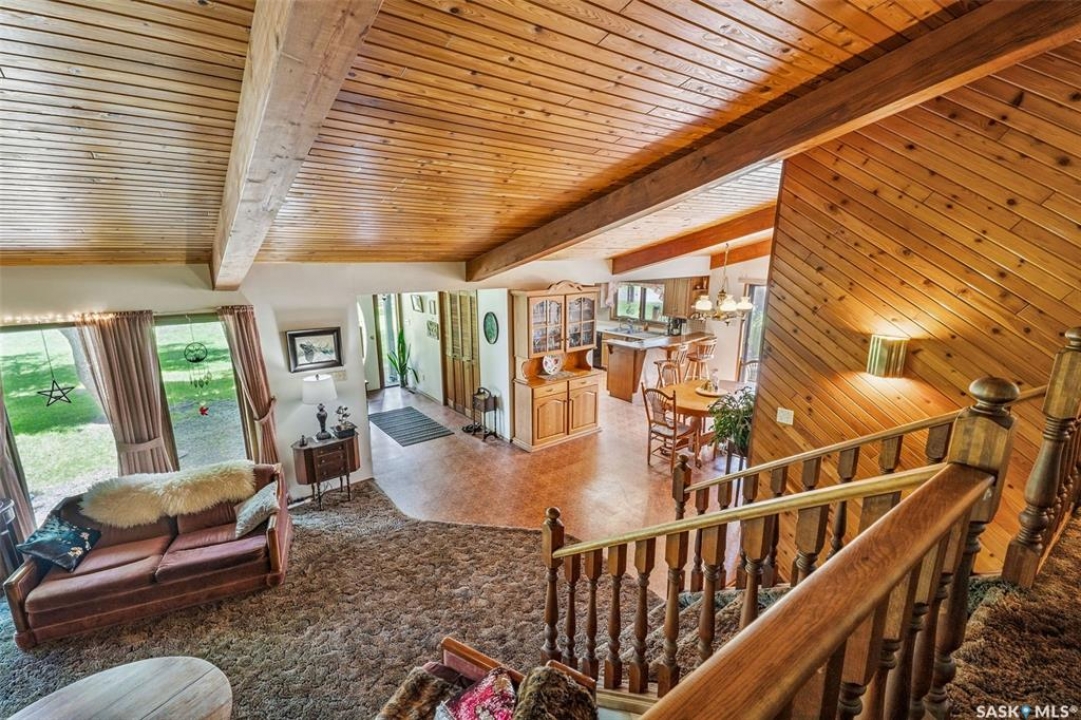 Pride of Ownership shows in this generational yard site that has a spacious 1,924 sq ft four-level split home features 4 bedrooms and 3 bathrooms, perfectly suited for family living or farm operations. The exterior is a statement of curb appeal with stone and stucco finishing, complemented by a grand entrance and vaulted ceilings that create an airy, open feel throughout the main living areas. The approx. 14 acre yard site is surrounded by mature trees, offering natural shelter, privacy, and plenty of green space for recreation or expansion. Outbuildings include an insulated, heated shop—ideal for equipment maintenance or year-round projects—plus numerous additional outbuildings to support your acreage needs. This is more than just a piece of land—it's a legacy property, ready for the next generation of stewards. Approx. 14 acres to be subdivided, taxes to be reassessed. Call today to view!