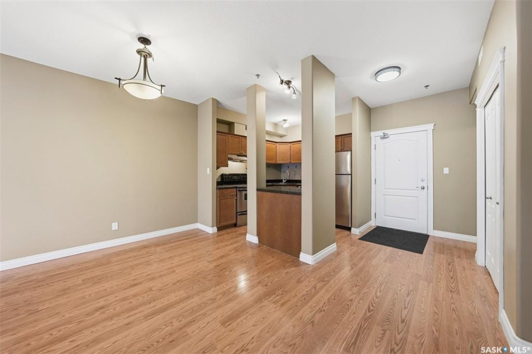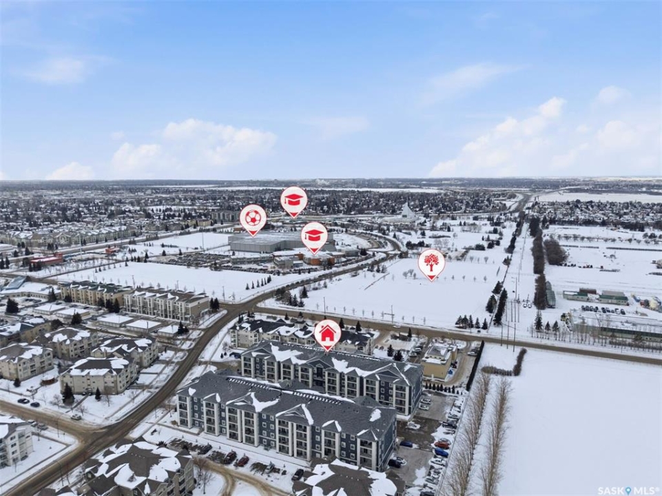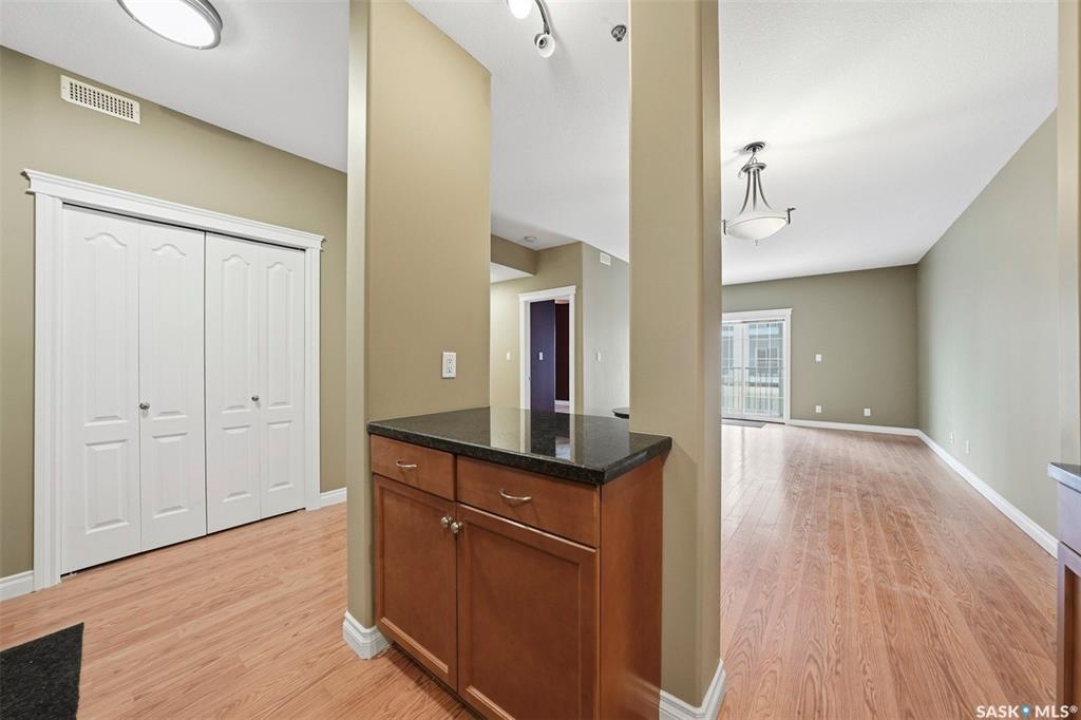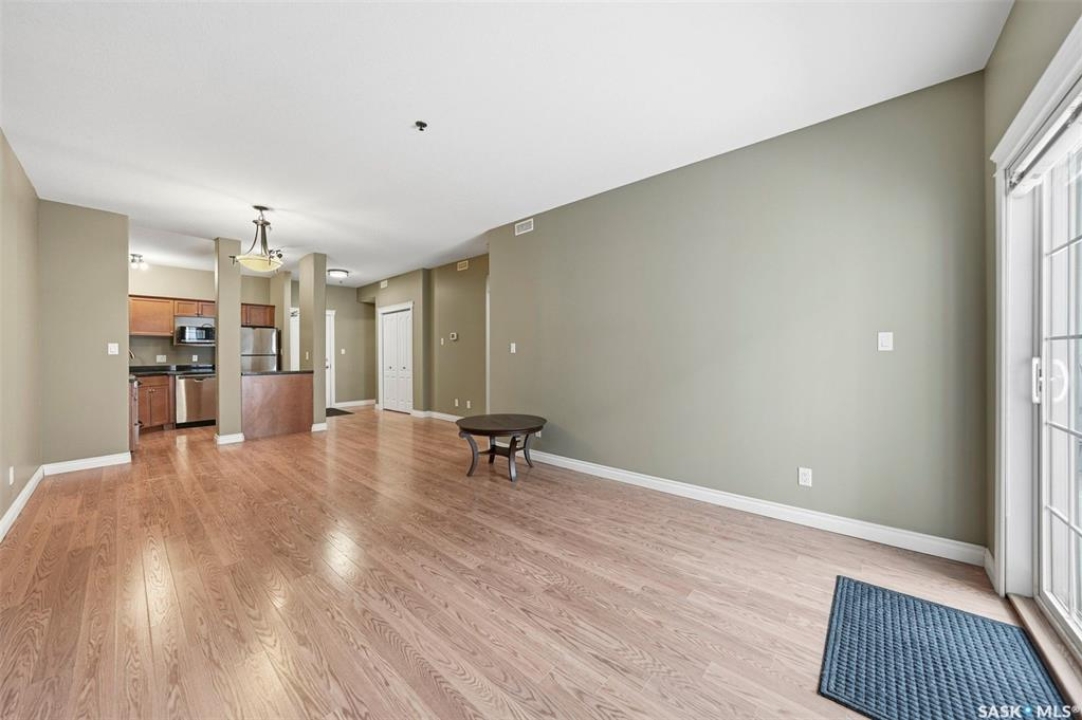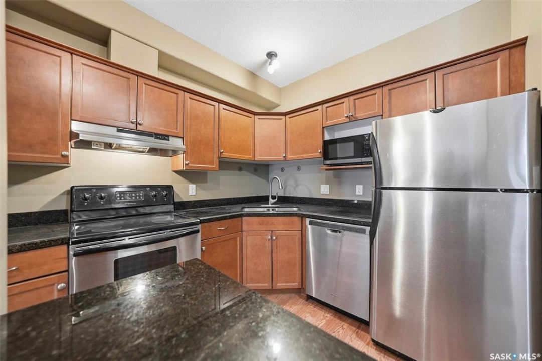 Here is a premium condo in a premium location, walking distance to all amenities, close to the University and an easy commute to downtown. This 1 bedroom condo shows in excellent condition and boasts 9 foot ceilings, infloor heat, and an open concept. Enjoy your morning coffees on the East facing balcony. The balcony is outfitted with a natural gas bbq line for your convenience. Inside this suite you will be impressed by the granite counters, ample cabinet space, and an island ideal for food prep or to sit up at. There is insuite laundry as well. The primary vedroom is a good size and features sliding patio doors directly to your balcony, making that morning coffee even more enticing. This building features underground parking, an exercise room, and elevator access. The condo fees include your water, heat, garbage/sewer utilties, and common insurance. This condo must be seen to fully appreciate! Contact a Realtor today.