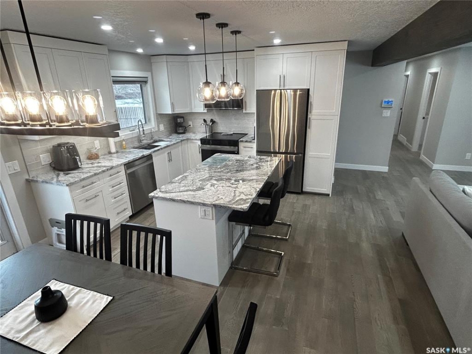 Do you strive to be the ENVY OF THE NEIGHBOURHOOD? Then you're not going to want to Pass by This Property. This house is completely MOVE-IN-READY. Noting from the front entryway you'll be delighted with the Open Concept, light n bright Livingroom, Dining then Upscale Kitchen! (All NEW APPLIANCES) plus White Cabinets placed amongst the majestic Granite Countertops (& Work Island). + ceramic tile backsplash. The Main floor has been completely updated with new flooring (Engineered Hardwood floors throughout with the exception of plush carpets in the bedrooms and modern vinyl tile in bathrooms). There are 3 bathrooms in this lovely home. Main bathroom enjoys new cabinets/granite countertops/ flooring & lighting. All new paint plus all popcorn ceilings replaced with Knockdown ceiling texture. You'll definitely want to brag about the Primary Bedroom w. New Ensuite. The size of the room contains a King size bed plus room for more furniture then the Ensuite is simply Terrific with its white & shiny new cabinets, granite countertops as well as the corner glass shower. The Full-size basement is completed with Wide Open spaces for the Family Room, Games area (built in bar), sizeable Laundry room (New large capacity Washer/Dryer) 3 piece bathroom and the Utility room. (New furnace, Water heater, H2o Softener and Reverse Osmosis system + Electrical Panel). For the exterior, enjoy low maintenance Brick and vinyl siding. There's an abundance of Stamped Concrete to complete the stylish ambience. Large yard set on a corner lot (good portion fenced) and a very convenient back deck (privacy fencing) and patio area. The garage is an Oversized Single with the opportunity to perhaps add on to the length of this space for a double garage. (Driveway goes from Front to Back so Options galore). GEMSTONE Lights are an added Bonus. The LIST of updates is Soo Extensive you'll need to print that off to Admire ALL of the work that has been put into this Move-In-Ready Beauty.
