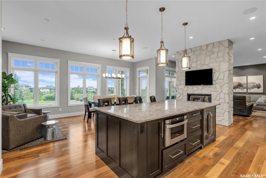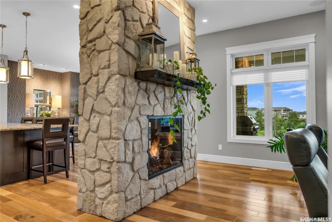 Luxury Meets Family Living. Exceptional curb appeal with high-quality brick/stonework across its exterior, meticulously showcasing a timeless blend of rich, textured stone and classic brick. A blend of comfort, style, and outdoor beauty in this rare, stunning 5-bedroom, 5-bathroom family retreat backing directly onto the park. With 3,044 sq ft of exquisitely designed living space, this home has been thoughtfully crafted to offer every amenity your family desires. Highlights: Bright+Spacious: Four bedrooms upstairs plus a versatile fifth bedroom downstairs. Expansive windows throughout the South/West side bathe the home in natural light and offer breathtaking sunrises and sunsets. Gourmet Kitchen: Designed for entertaining, with a walk-in pantry, high-end appliances, and open-concept flow to dining and living rooms. Luxurious Comforts: In-floor heating throughout the basement, main bath, master bath, and garage keeps every corner cozy year-round. Smart Home Features: Control4 surround sound system seamlessly integrated across all three levels and both patios, perfect for movie nights, family gatherings, or relaxing outside. Outdoor Oasis: Step out to your comfortable covered lower patio with TV, natural gas fire table hookup, and instant access to a beautifully landscaped yard with fire pit, stone-raised garden beds, and zoned underground sprinklers. Backyard is wired for a hot tub and offers endless possibilities for family fun. Practical Perks: Triple driveway, water softener, and a spacious garage with in-floor heat. Unbeatable Location: Enjoy direct access to Marshall Hawthorne Park, just a five-minute walk through green space to the neighborhood's elementary schools—a dream for young families. This exceptional property seamlessly blends indoor comfort with outdoor living, creating the perfect home to grow, entertain, and unwind. Discover privacy, high-end finishes, and unparalleled natural light in one of Stonebridge's most sought-after locations.