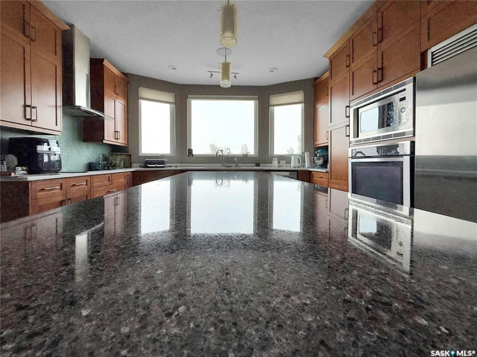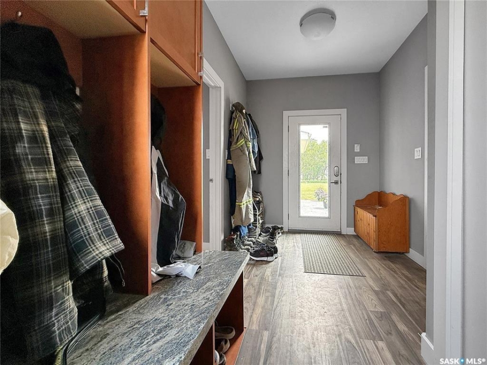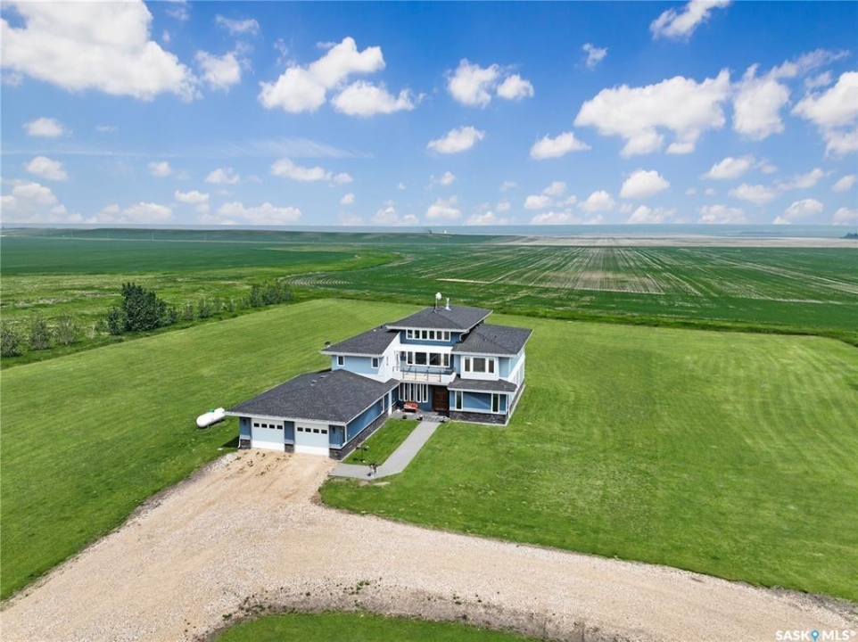 10 acres HOUSE & SHOP Tucked across HWY 13 with the panoramic moose mountain views is the HWY13 package.10 acres, and a well manicured yard site with an array of high end essentials every homeowners would desire. Starting with this setups Well water source(kisbey aquifer) which is so plentiful that the Bulk water station is across the road.From a hydroseeded 10 acre plot, underground sprinklers to the trees this acreage is set up for long term-easy maintenance.The shop is no ordinary build and boasts infloor heat(own tank), mezzanne, rough in for shower (half bath) & full service RV parking (for the easiest built-in inlaw suites or an easy location for your contractors/crew members).The house is a custom build, high on natural light and was designed with function and family well thought out.A oversized double 25x35 garage with infloor heat gives a space for tinkering and storage, with mess in mind the garage leads to an oversized mudroom with built in closet space and lockers and boasts a pocket door that leads to the main house keeping your boots & gear mess contained (and a well allocated 2 pc bath just off the mudroom).The mainfloor has clear defined spaces for dining, kitchen, play & entertaining/lounging.An XL kitchen with floor to ceiling cupboards, built in appliances including a side x side Fridge/Freezer combo, granite countertops & a 6 ft island all pair well with the closely tucked dining area with south sash views.A large main floor office could be converted into extra bedroom space on top of the 2 mainfloor bedrooms and their own full 4 pc bath.The living room steals the show in this set up, with a stone stacked Fireplace that runs to the second floor. A large room with its own deck access gives cigar room vibes(pocket doors) or play room and leads to custom stone firepit zone. Upstairs boasts 2 baths(1 with laundry) 2 bedrooms.A master with walkin & 5 pc ensuite, private deck & a theatre room with wet bar & deck. Book today to get the full feel.