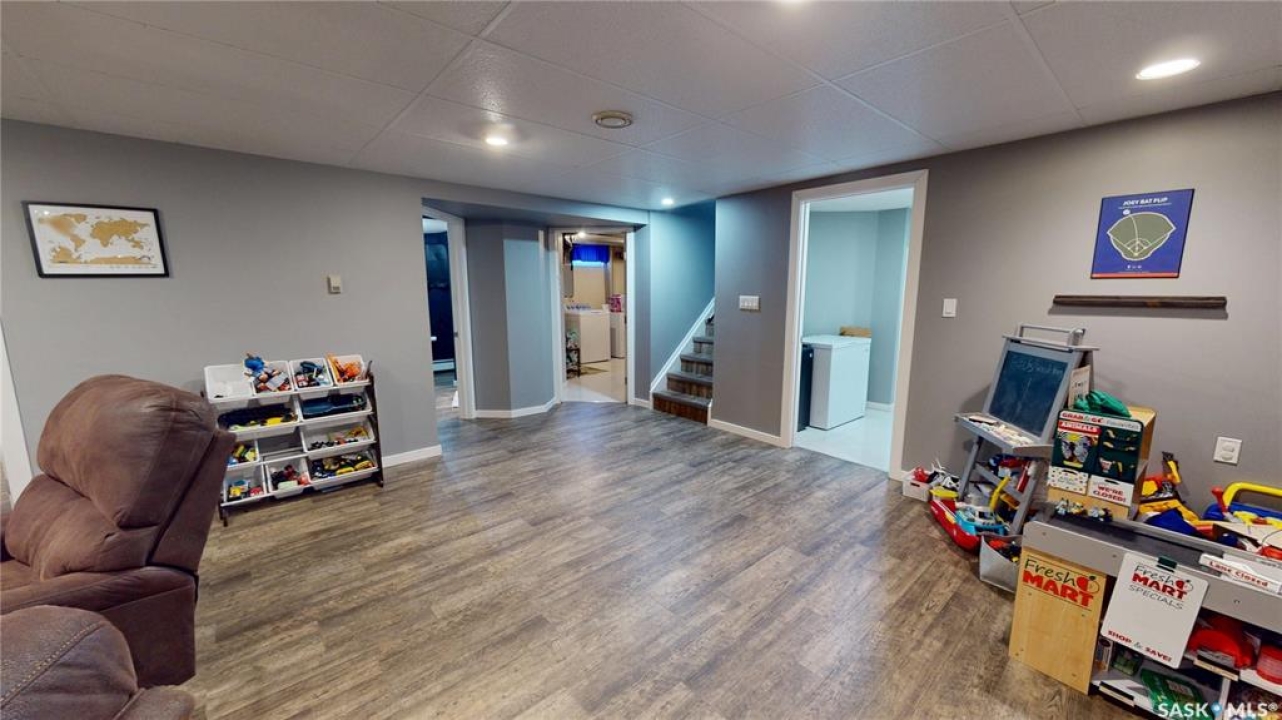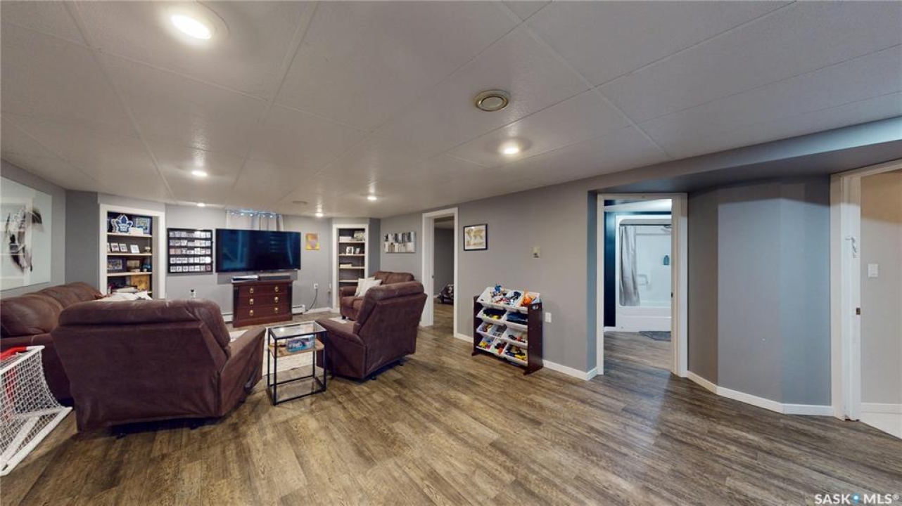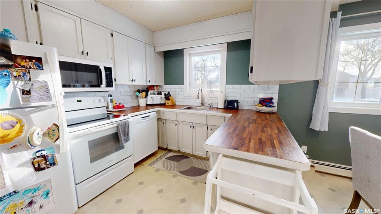 great FAMILY HOME with a location HARD to beat -- one block from the schools & daycare and 2 blocks to the pool! this 4 bed, 3 bath bungalow offers 1200 SQFT on the main floor plus a finished basement and is situated on a 80' x 125.5' lot! Nearly every major component has been updated, including windows, siding, shingles, soffit and fascia, along with mechanical improvements such as a high-efficiency furnace, air exchanger, AC, boiler, back flow valve and sump pump. The main floor offers a bright, functional layout with an eat-in kitchen featuring ample cabinetry, a pantry, and newer appliances, flowing comfortably into a spacious living area. Three bedrooms are located on this level, including a primary bedroom with its own private 2pc ensuite, along with a 4pc main bathroom. Step outside from the front entry onto an updated composite deck — a perfect spot to enjoy your morning coffee! Downstairs, the fully renovated basement expands your living space with an additional bedroom, a large family room, a 5pc bath, plus dedicated storage and utility areas. The side entry connects directly to the heated attached single garage, complete with room for a workbench. In addition, the property features a detached garage, extra parking, storage shed and a fenced in yard — all sitting on an oversized lot and a half. An updated home, multiple garages, and an unbeatable location — this property checks all the boxes. Book your showing today!