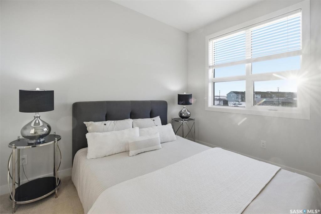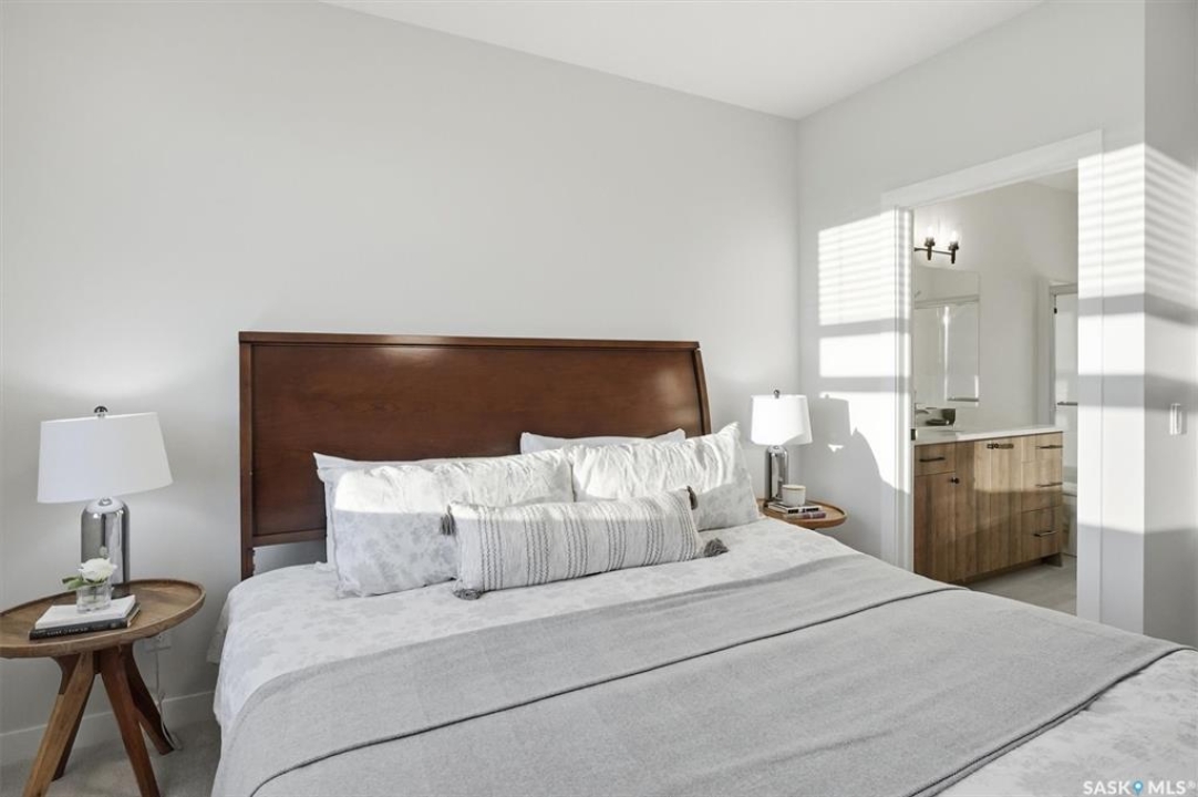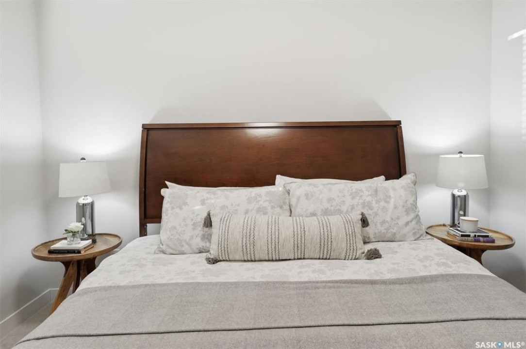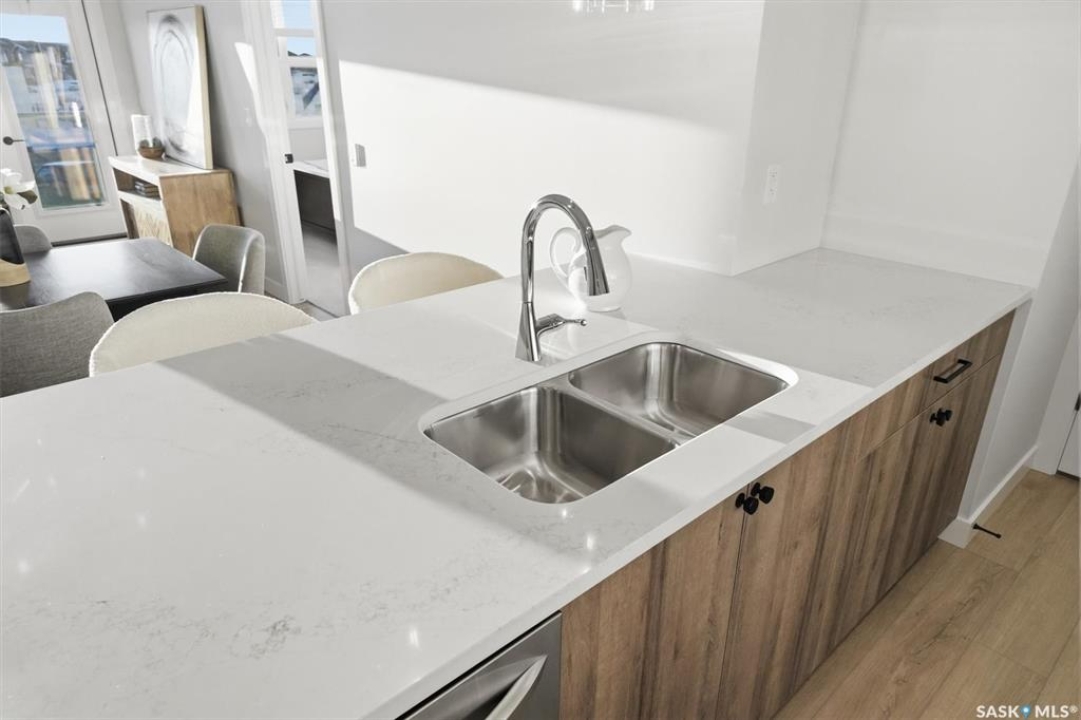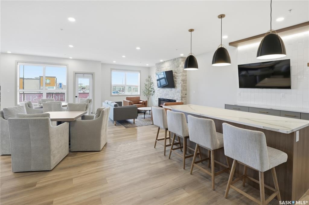 Welcome to ‘RYSE by North Ridge' located in Saskatoon's growing community of Brighton! RYSE is a modernized apartment style condominium complex offering 1 bedroom, 2 bedroom, and 2 bedroom + den options. You will immediately notice the welcoming nature of RYSE the moment you step into the warm and inviting front entrance. Unit 1203 (Skyline layout) is a south east facing 964 sq ft condo with 2 bedrooms, 2 bathrooms, a den, separate laundry room, galley style kitchen, and dining/living areas. The interior features high end designer finishes, fixtures, countertops, and flooring, all with quality built craftsmanship. A private partially covered balcony awaits complete with duradeck, glass railing, natural gas bbq outlet, and electrical outlet. Each condo unit comes with a parking stall located in the heated parkade as well as a convenient storage room. Exterior parking stalls may be available to purchase. Each unit also includes a kitchen and laundry appliance package and air conditioning. RYSE has an amenity room for you to visit and relax featuring a bar area, comfortable seating, pool table, bathroom, and an outdoor patio lounge. GST and PST included in purchase price with any rebates to builder. Sask Home Warranty Premium Coverage Plan. This prime location is within a few minute walk to grocery/shopping/restaurants/bus and several other amenities. Show home hours are Mon thru Thurs 5-8PM and Weekends 12-5PM. Call to view!