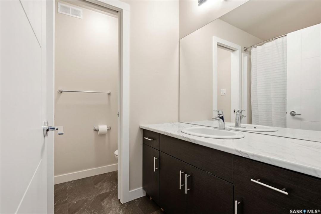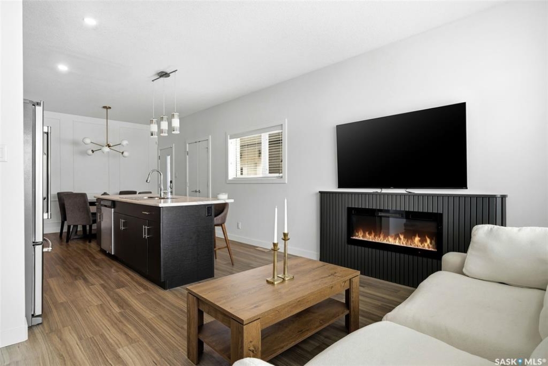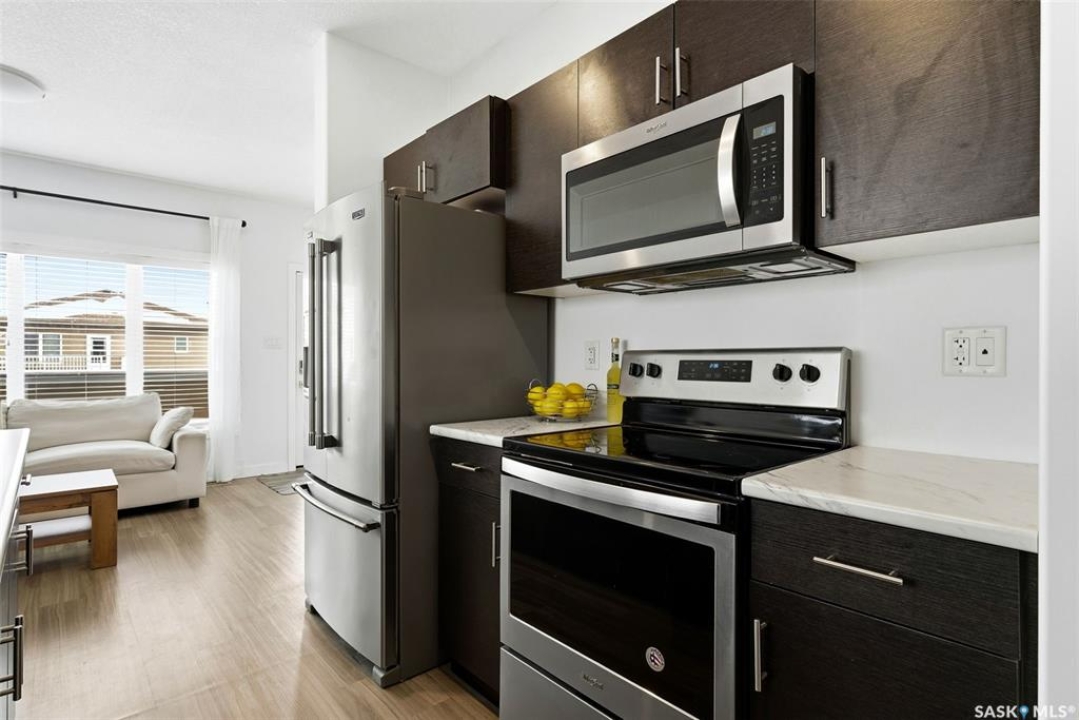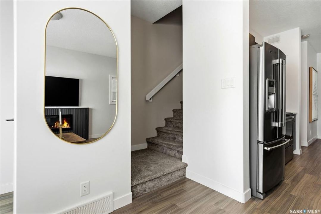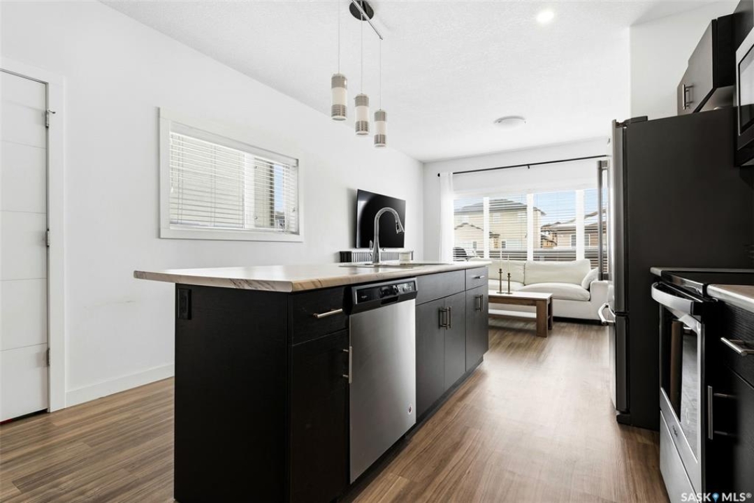 Welcome to 3951 James Hill Road, an exceptionally well-designed 1,072 sq. ft. townhouse condo that combines functionality, contemporary finishes, and low-maintenance condo living in Harbour Landing! The main floor features an open-concept layout filled with natural light from large picture and side windows. The kitchen is both stylish and practical, showcasing dark cabinetry, light countertops, soft-close drawers, and stainless steel appliances and a large sit up island. A spacious dining area seamlessly connects the kitchen and living space, making it ideal for everyday living and entertaining. A convenient two-piece bathroom completes the main level. Upstairs, the primary bedroom offers its own balcony, a walk-in closet, and a four-piece ensuite. A second spacious bedroom, an additional four-piece bathroom, and top-floor laundry complete the top floor and is a convenient layout for first time home buyers or young families! The basement is recently fully finished with new vinyl plank flooring and consists of a cozy recreation room with projector and screen, a nook area for your office desk or reading spot, as well as a brand new 3 piece bathroom. Also included is one parking pad spot, an outdoor deck for BBQing, and quick access to all the great amenities Harbour Landing offers! Book your showing on this immaculate, updated condo today!