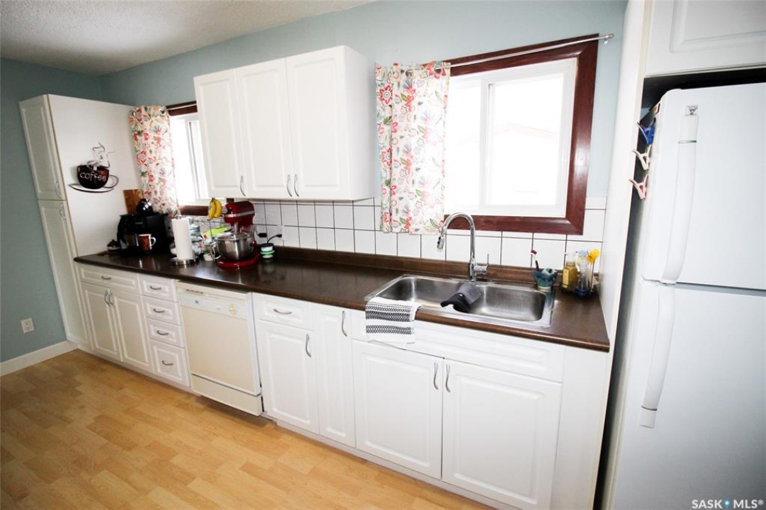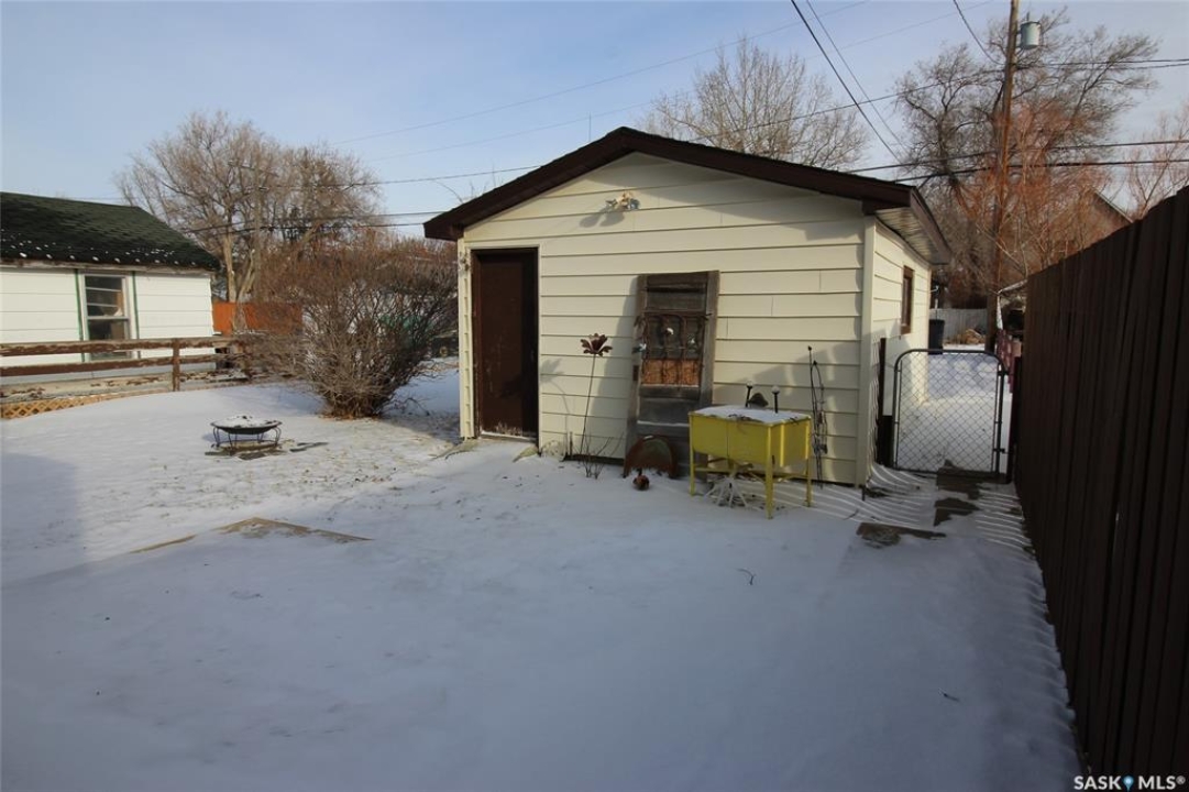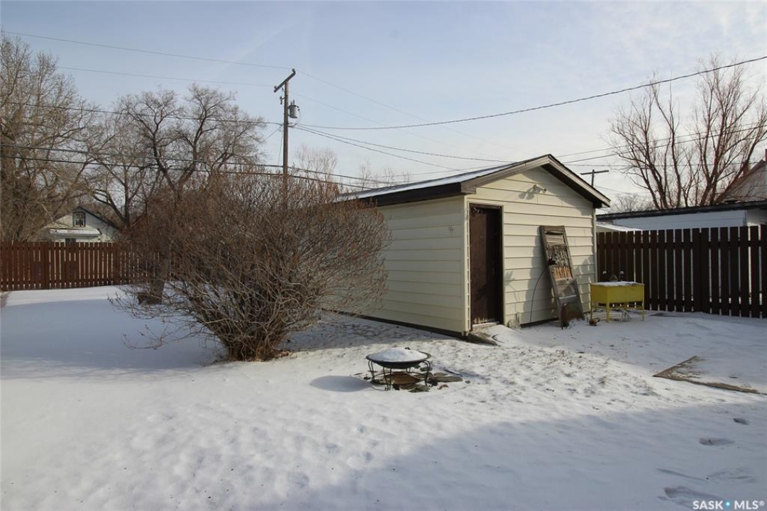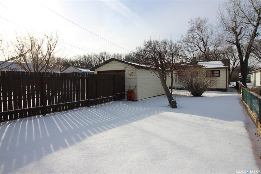 Discover the perfect blend of comfort, convenience, and charm in this beautifully maintained home, ideally situated just steps from both the elementary and high schools, and only a block from the bustling recreation complex. Whether you're starting out or looking to downsize, this property offers everything you need and more. Step inside to a bright and inviting living room, bathed in natural light from a large picture window and complemented by a stylish front door. The galley-style kitchen is a baker's delight, featuring ample workspace for culinary creations, a built-in dishwasher, and generous pantry storage. Both bedrooms offer spacious closets and easy-care laminate flooring, while the main floor boasts a sparkling four-piece bathroom for your comfort. The lower level provides a blank canvas—framed and ready for your personal touch, whether you envision a cozy family room, home gym, or creative studio. Enjoy peace of mind in the fully fenced backyard, perfect for pets and children, surrounded by mature, flowering trees that add beauty and privacy. The single detached garage is a hobbyist's haven, complete with a workbench, storage, and a massive concrete apron for extra parking or outdoor projects. This is more than just a house—it's a welcoming retreat, ready to become your next home sweet home. Don't miss your chance to own this gem in one of Shaunavon's most desirable locations!
