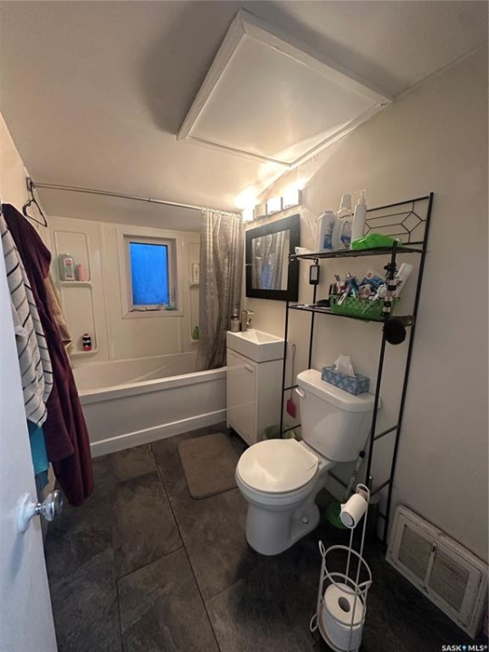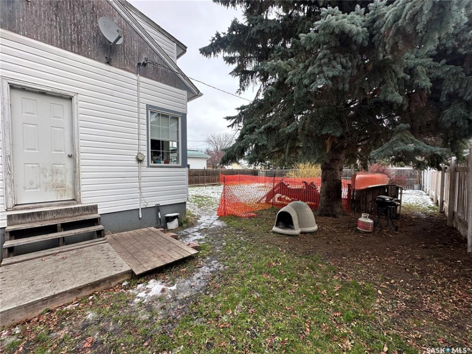 Welcome to this 1,001sq.ft. 1 and � storey home ideally located just one block from the golf course. Set on a huge, fully fenced yard this property offers exceptional outdoor space – great for entertaining, kids, pets or future garden plans. The main floor features a spacious kitchen with ample cupboard space, with easy flow into the dining area and living room. Convenient backyard access can be found in the living room, seamlessly blending indoor and outdoor living. A handy 2PC bathroom completes the main level. Upstairs, you'll find two bedrooms, a 3PC bathroom and a dedicated storage area for added convenience. The partially finished basement adds extra living space with an additional bedroom – ideal for guests, a home office or growing families. This home offers a great combination of space, functionality and outdoor enjoyment. Ready for its next owners to move in and make it their own. Recent upgrades include shingles and front steps. Taxes for 2025 are $1,706. Book your showing today!