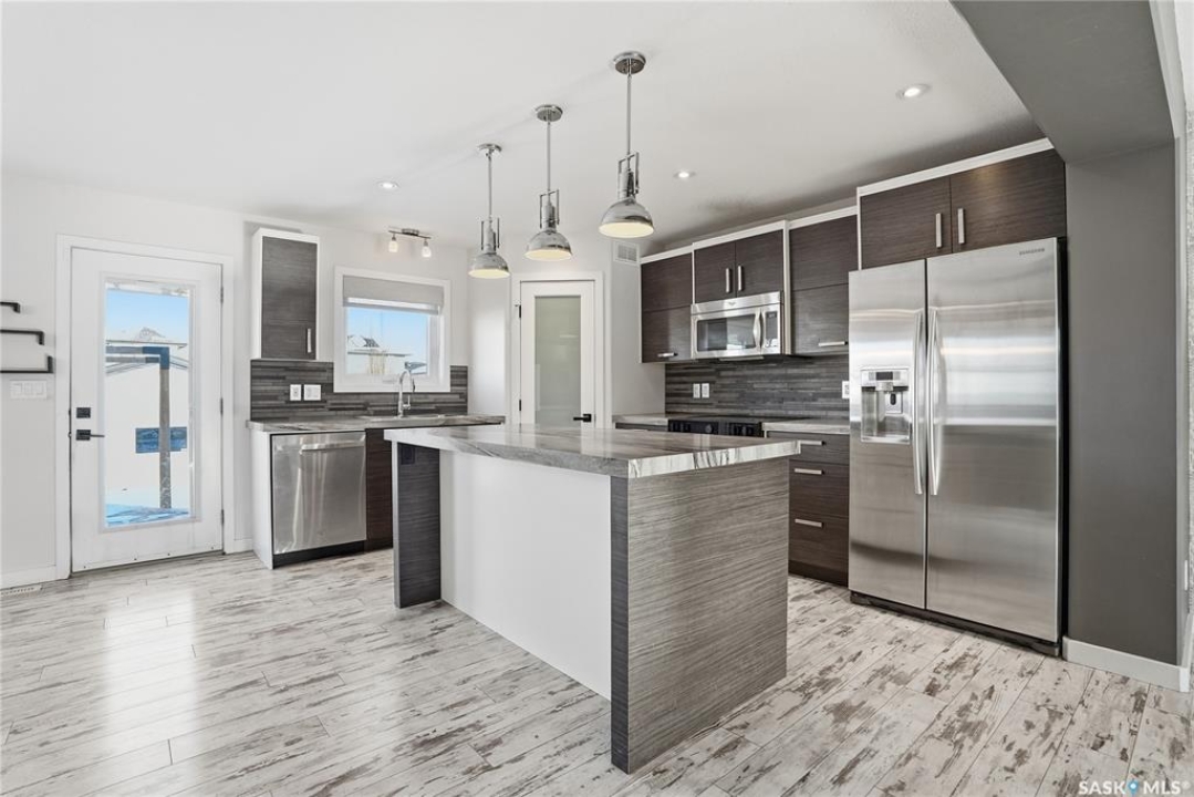 Welcome to 230 Kloppenburg Way, a move-in-ready home in the heart of Saskatoon's highly desirable Evergreen neighbourhood—just steps from the school and perfect for growing families. This fully developed 4-bedroom, 4-bathroom home offers a bright open-concept main floor designed for everyday living and entertaining. The modern kitchen features stainless steel appliances and flows seamlessly into the dining and living areas. Upstairs you'll find three spacious bedrooms, including a primary retreat complete with a walk-in closet and private en suite. The fully developed basement adds even more living space with a fourth bedroom, bathroom, and a versatile area ideal for a family room, gym, or home office. Outside, enjoy summer evenings on the large deck, plus the convenience of a double detached garage. Located close to schools, parks, and all Evergreen amenities, this home checks all the boxes. Call or text your favourite Saskatoon agent today—and be sure to check out the video tour!