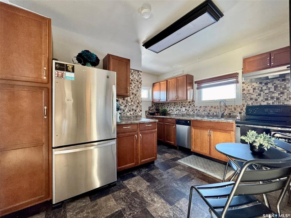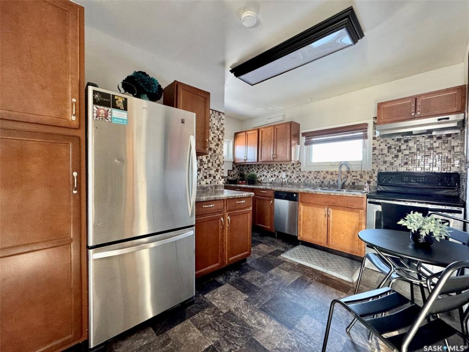 Welcome to 510 Wells Avenue East, a thoughtfully refreshed 1915 two-story home in Langenburg that blends timeless character with meaningful modern updates. A welcoming entryway offers space for multiple people to gather with ease. Throughout the home, you'll find updated flooring, many updated windows for improved comfort and efficiency, original hardwood flooring in the living room, and tongue-and-groove pine ceilings that add warmth and charm. The updated kitchen features stainless steel appliances, a dishwasher, and a tile backsplash. The main floor also includes a washroom and a bedroom well suited as the primary bedroom. Upstairs, the layout is truly unique, offering a full bedroom with old-world built-in cabinetry and a loft-style office space. A convenient upstairs sink provides added flexibility, whether for a home-based business setup or a simple morning routine. Additional upgrades include updated doors, a brand-new furnace, on-demand water heater, new central air, and a good-sized long lot. This home is a fantastic opportunity for a first-time buyer looking for character, updates, and affordability—all in one package.