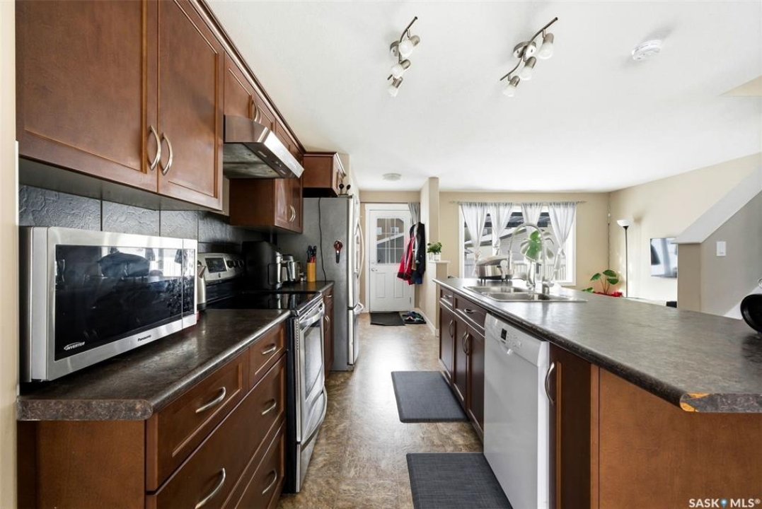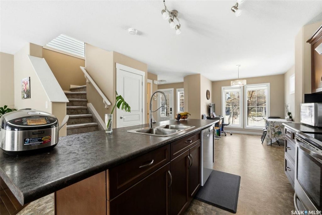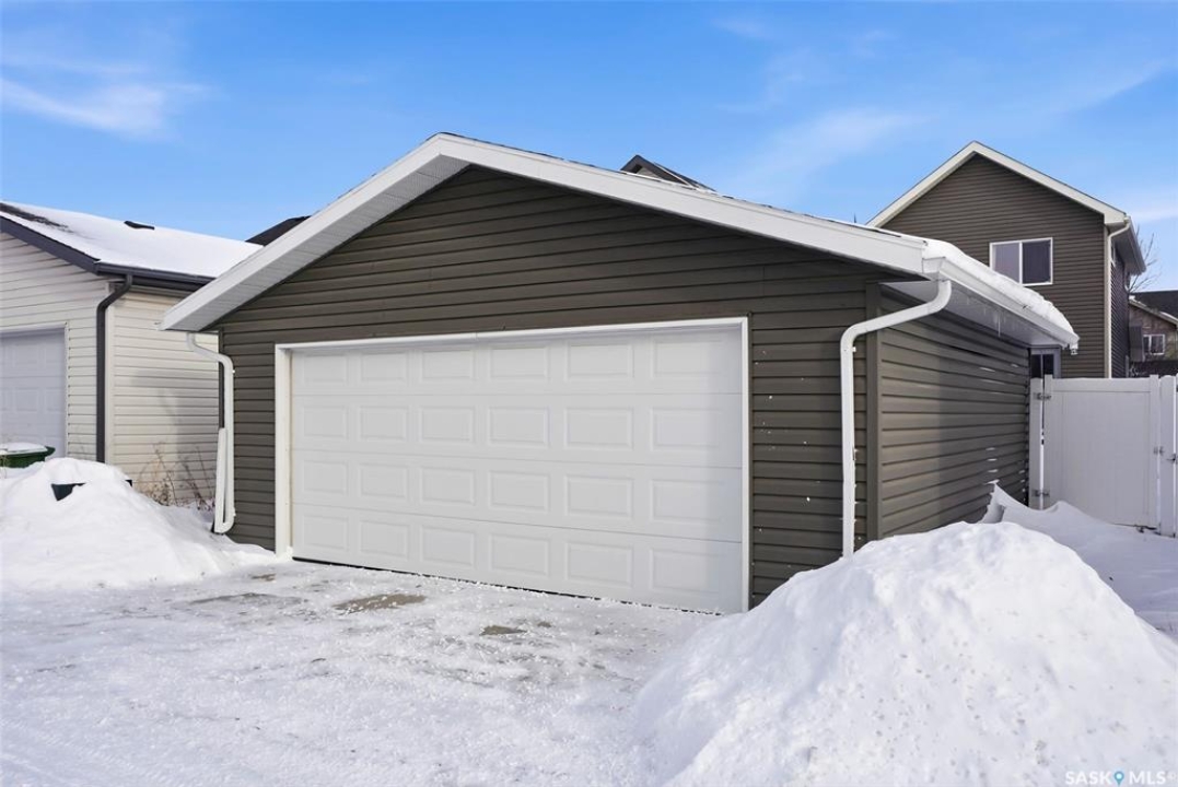 Welcome to 3669 Green Bank Road, a well-kept two-storey homel in the desirable Greens on Gardiner neighbourhood. Offering just over 1,300 sqft of functional living space on the top 2 floors, plus a finished basement, this home stands out with its charming curb appeal. Inside, the bright main floor features a practical open-concept layout with the living room and dining area flowing into the kitchen, which includes stainless steel appliances, ample cabinetry, and a large central island bathed in natural light from generous windows. A convenient two-piece bath completes the main level. Upstairs, you'll find three comfortable bedrooms with newer carpet (2023), including a spacious primary suite with a walk-in closet and three-piece ensuite. The finished basement offers a versatile L-shaped recreation room with rough-ins for a future kitchenette or wet bar, along with laundry and mechanical space. Outside, the fully fenced and landscaped yard features a large deck, patio, and newer lawn (2022), ideal for relaxing or entertaining, plus a double detached garage with alley access. A solid option for anyone looking for a move-in-ready home in a great neighbourhood!