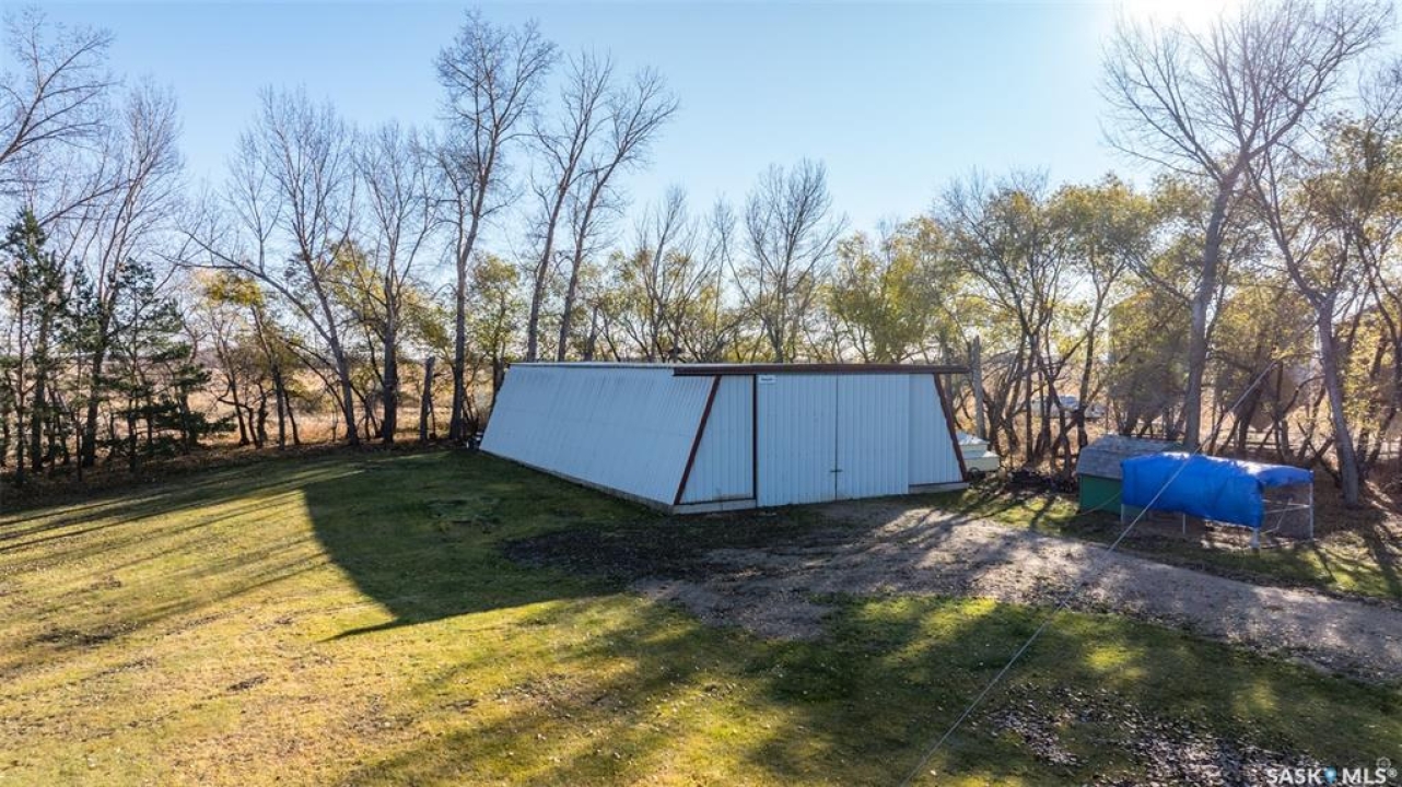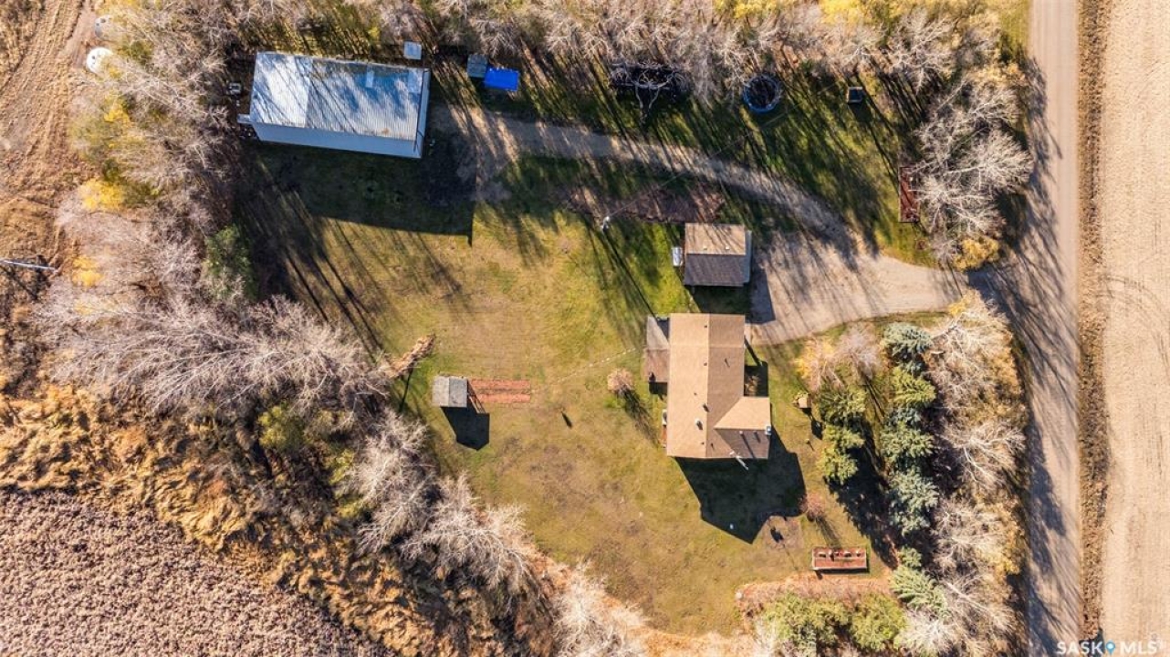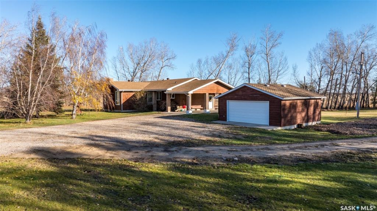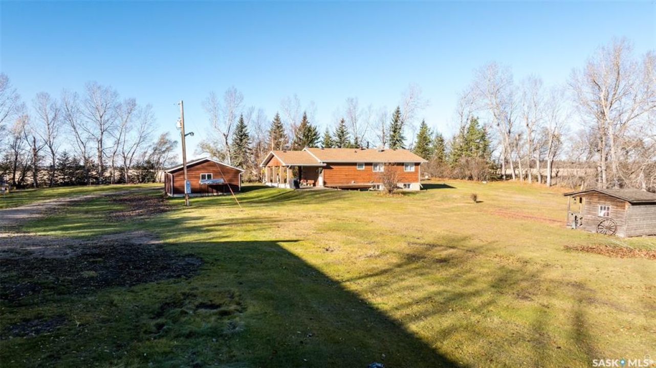 Stunning 1,364 sqft bungalow situated on 9.88 acres, just 20 minutes from Prince Albert and 10 minutes from Meath Park! This beautiful property welcomes you with sleek vinyl plank flooring throughout and an abundance of natural light. The main floor features a large living room with a nice wood burning fireplace, a spacious dining area and a bright kitchen complete with white cabinetry, stylish backsplash and stainless steel appliances. There are also 3 generous bedrooms, a 4 piece bathroom and a convenient combined laundry and bathroom with a stand up shower that completes the main level. The fully finished basement offers plenty of room for hobbies, movie nights and gatherings with family and friends, featuring an expansive family room, a 4th bedroom, a 2 piece bathroom and a utility room. Step outside to enjoy your morning coffee or unwind in the evenings on the deck or patio that is surrounded by mature trees that provide privacy and serene views. Car enthusiasts, hobbyists or anyone in need of extra space will appreciate the insulated double detached garage, carport and large quonset with concrete flooring, perfect for parking, storage or a workshop. There is also a garden area, ideal for someone who enjoys gardening and cultivating a vibrant outdoor space. The property is connected to a well water system and has a lagoon sewer system. Experience the best of country living with this exceptional property. Don't let this opportunity pass by!