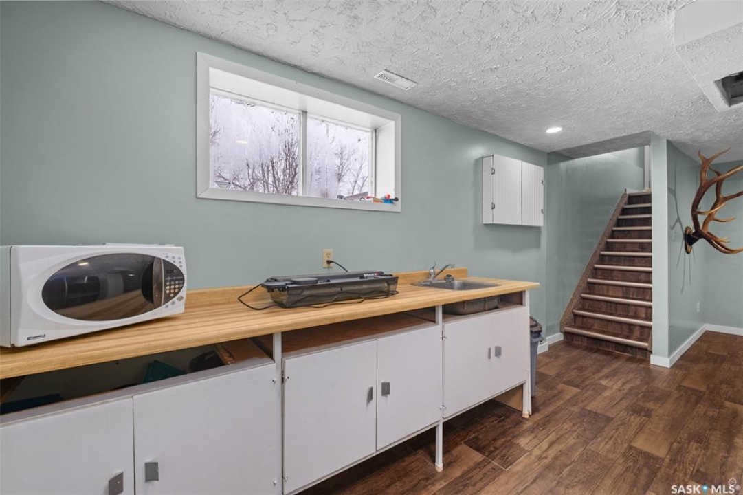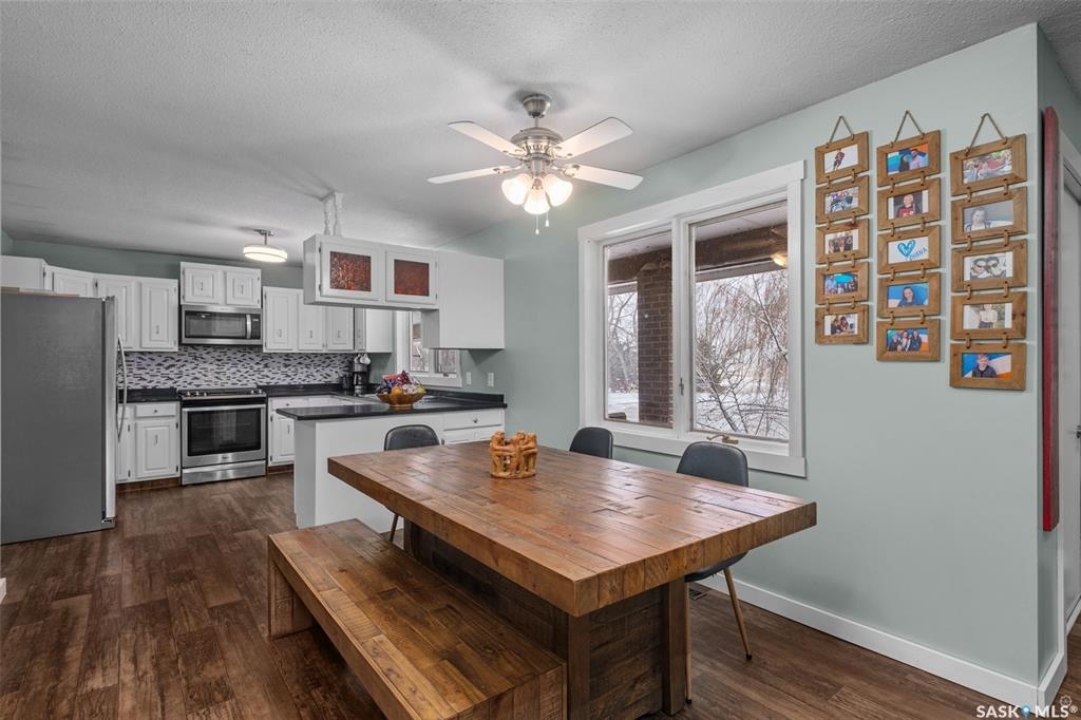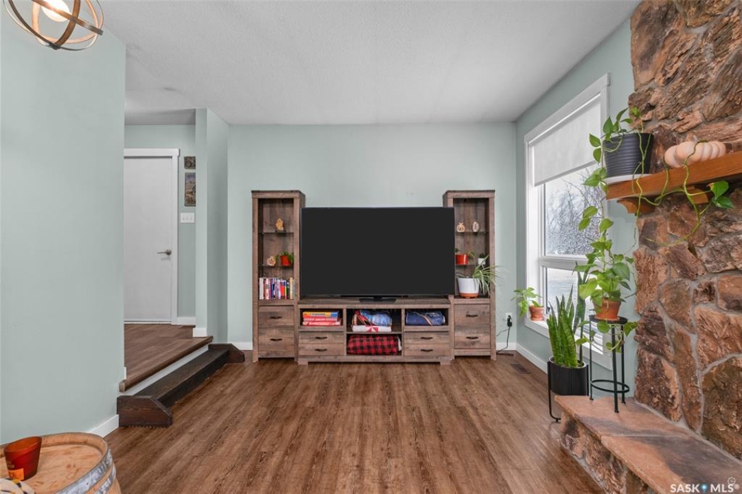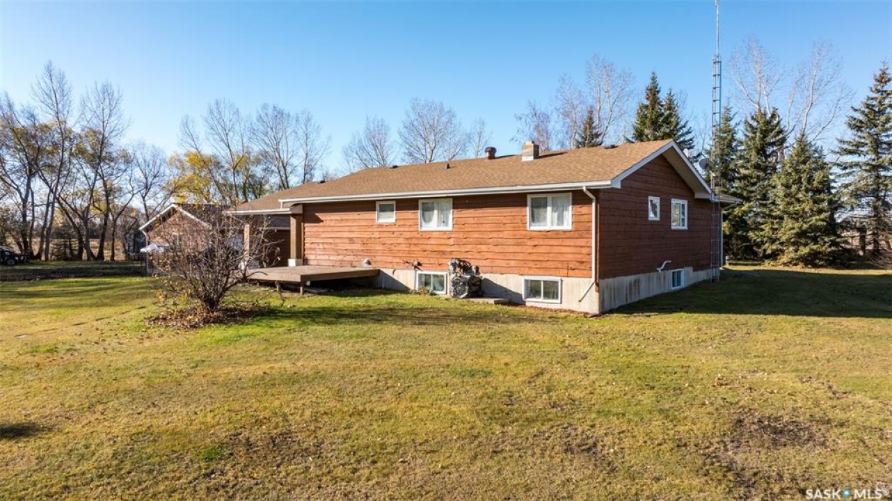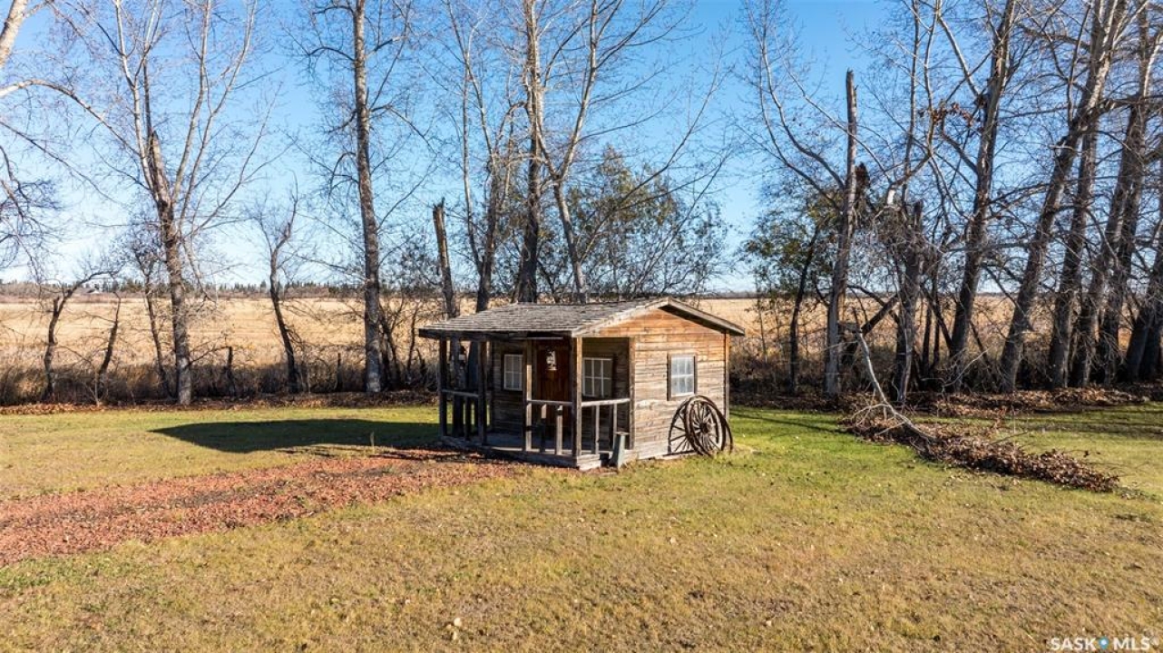 Stunning 1,364 sqft bungalow situated on 9.88 acres, just 20 minutes from Prince Albert and 10 minutes from Meath Park! This beautiful property welcomes you with sleek vinyl plank flooring throughout and an abundance of natural light. The main floor features a large living room with a nice wood burning fireplace, a spacious dining area and a bright kitchen complete with white cabinetry, stylish backsplash and stainless steel appliances. There are also 3 generous bedrooms, a 4 piece bathroom and a convenient combined laundry and bathroom with a stand up shower that completes the main level. The fully finished basement offers plenty of room for hobbies, movie nights and gatherings with family and friends, featuring an expansive family room, a 4th bedroom, a 2 piece bathroom and a utility room. Step outside to enjoy your morning coffee or unwind in the evenings on the deck or patio that is surrounded by mature trees that provide privacy and serene views. Car enthusiasts, hobbyists or anyone in need of extra space will appreciate the insulated double detached garage, carport and large quonset with concrete flooring, perfect for parking, storage or a workshop. There is also a garden area, ideal for someone who enjoys gardening and cultivating a vibrant outdoor space. The property is connected to a well water system and has a lagoon sewer system. Experience the best of country living with this exceptional property. Don't let this opportunity pass by!
