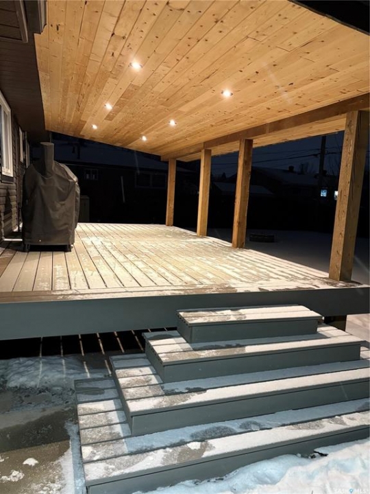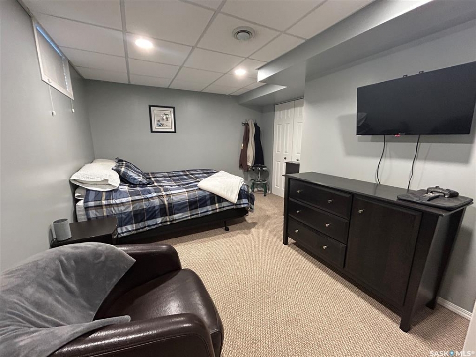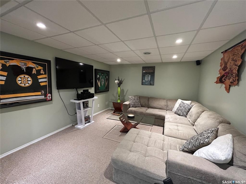 This move in ready, 4 bedroom bungalow is located across the street from 2 elementary schools in the most popular area of the city. The living area has an open concept with an abundance of beautiful white cabinets, a large island, lots of natural light and hardwood floors throughout. The 3 bedrooms on this level are a good size and the updated bathroom has double sinks. The finished basement is great for entertaining or simply relaxing. It boasts a large guest bedroom with a walk-in closet, spacious bathroom with an amazing tiled shower, a tv area and bar with ample seating. The fenced back yard is an oasis, from the new covered composite deck to the firepit area to the well manicured lawn. The new siding and shingles make the exterior of the house maintenance free for many years to come.