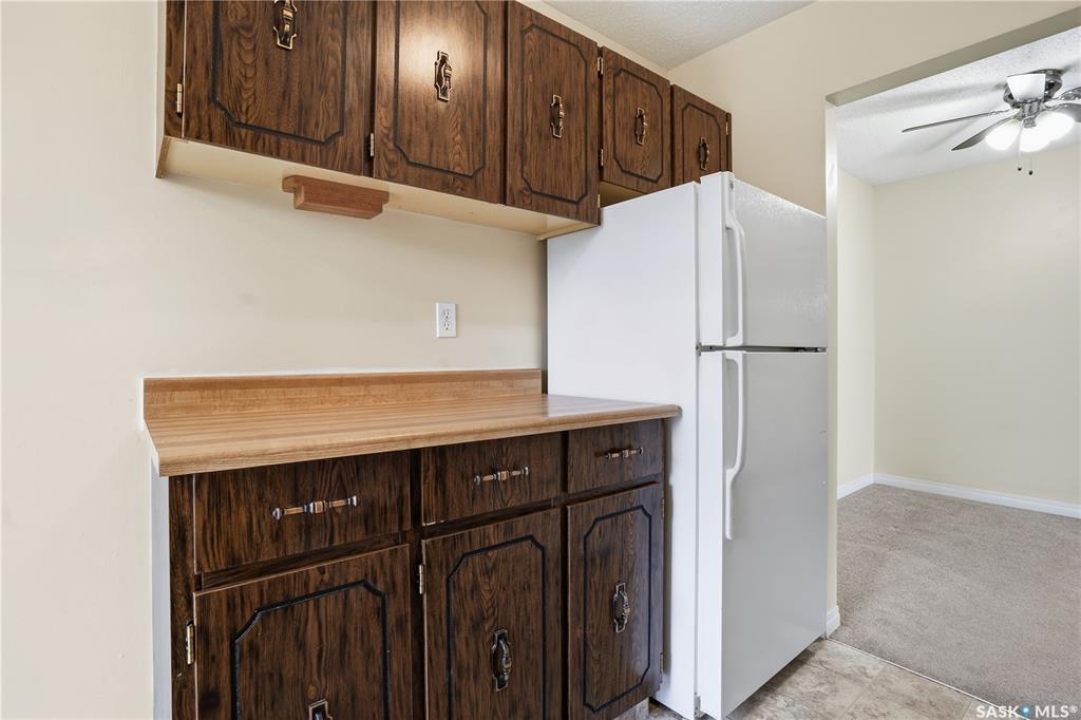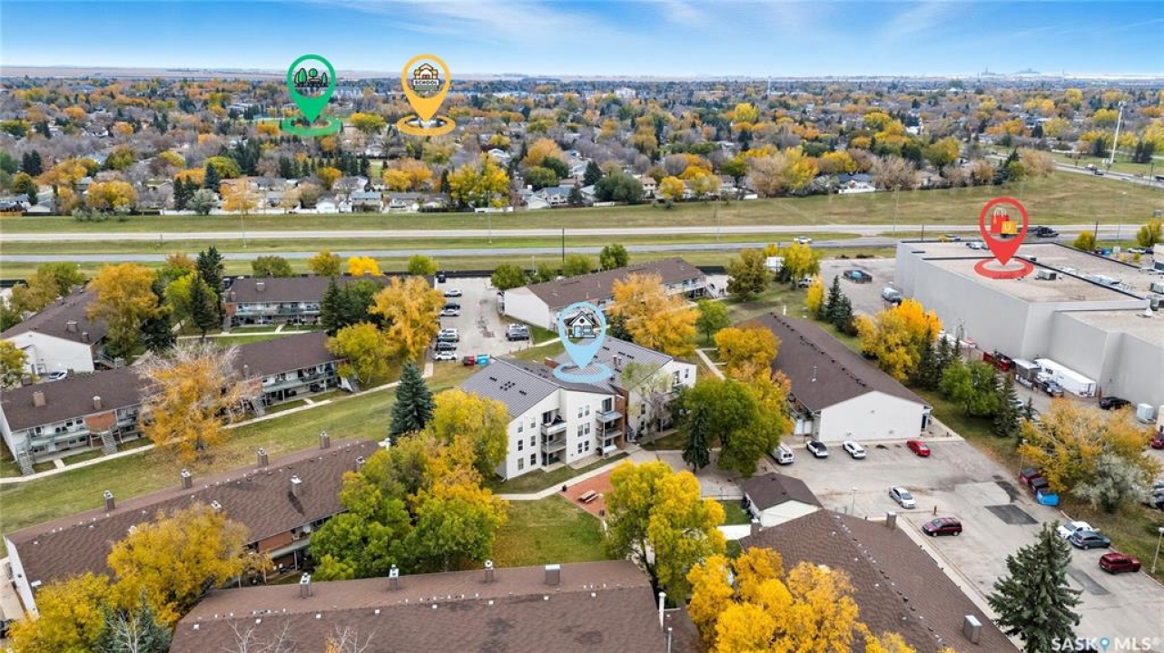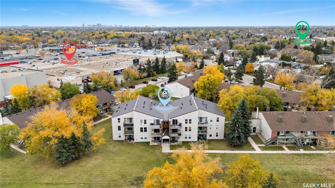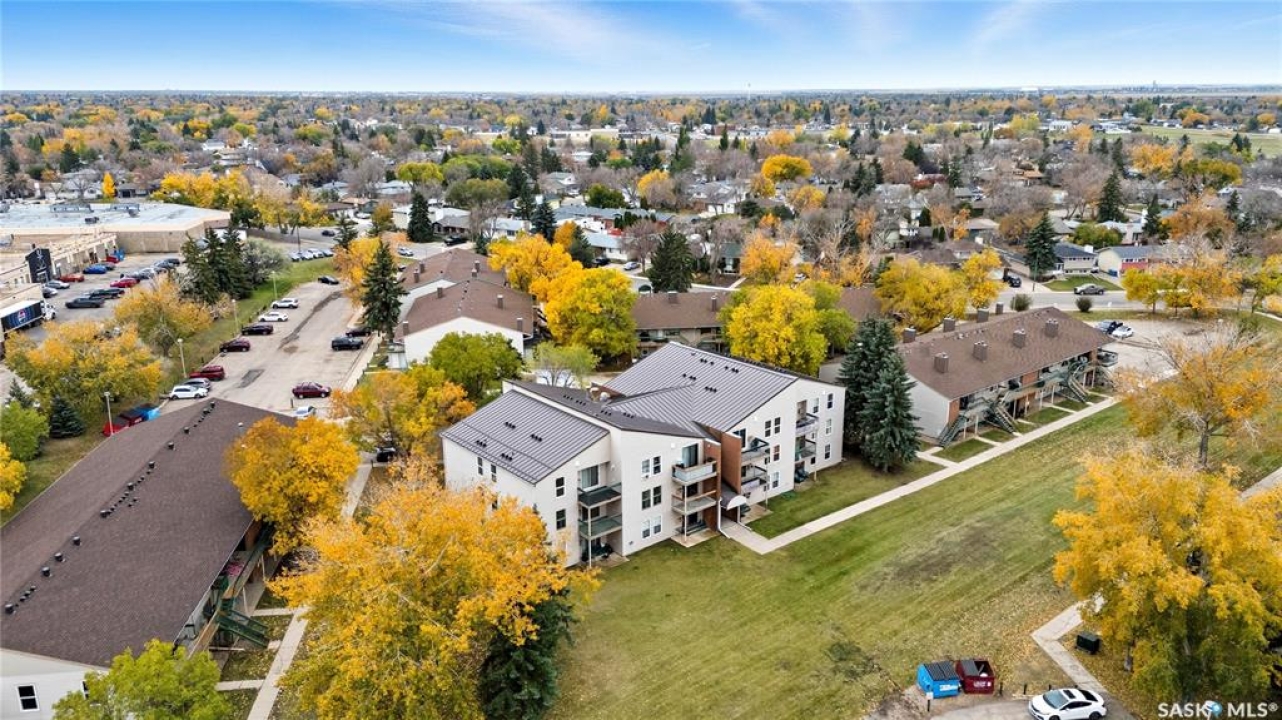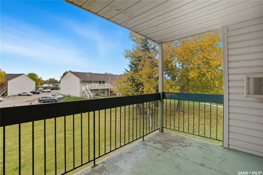 Searching for your first home or a solid investment opportunity? This well-kept, clean 1 bedroom, 1 bathroom corner-unit condo offers comfort, convenience, and excellent value. The bright open-concept living and dining area provides an inviting space to relax, with patio doors framing a pleasant view and allowing plenty of natural light. The galley-style kitchen is both practical and efficient, offering ample cupboard and counter space to make everyday cooking easy. Adjacent to the kitchen, the breakfast nook can easily double as a compact home office or workspace. The bathroom has been updated with a refreshed BathFitter tub surround. A generous in-suite storage room provides secure and convenient space for items such as a small deep freeze, bicycle, luggage, or seasonal tires. Step outside onto your private balcony to enjoy tranquil views of the landscaped greenspace—perfect for morning coffee or unwinding at the end of the day. Flooring throughout the main living areas was updated three years ago. The unit includes one electrified parking stall (stall #54) and is pet-friendly with restrictions. Monthly condo fees of $375.09 cover heat, water, exterior maintenance, building insurance, and contributions to the reserve fund, offering a low-stress lifestyle or easy rental management. A common laundry room is located on the main floor. Medford Mews is ideally situated close to Normanview Shopping Centre, public transit, a gym, grocery stores, restaurants, and Galaxy Cinema—everything you need just steps away. Whether you're ready to move out of the rental market or expand your real estate portfolio with a low-maintenance property, this condo truly delivers. Previously rented for $1,100 per month.