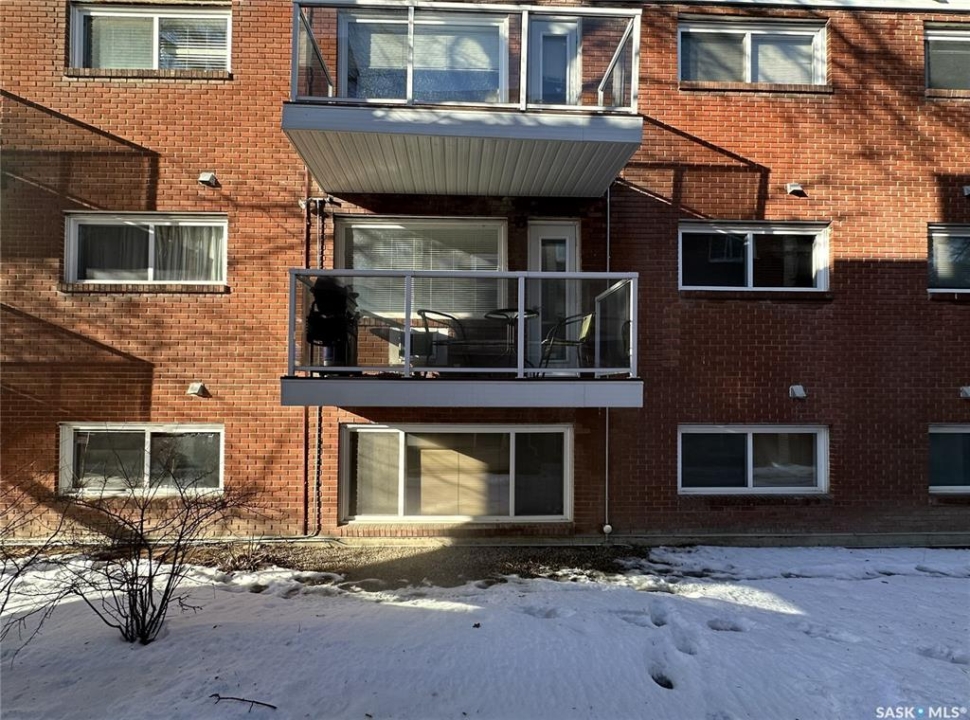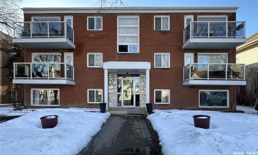 Walk to work or easy commute to any corner of Regina. Fabulous downtown condo. Clean quiet building. Located on the middle floor with a balcony and choice of in-suite laundry if desired. Shared laundry in lower level. Open kitchen and living room design. Espresso cabinetry with light stone counters and under-mount stainless steel sink. Stainless steel fridge, stove, built-in dishwasher and microwave hood fan all included. Extra large island has 6 storage drawers and room for stools. Cute balcony off the living room. Good-sized bedroom and full 4-piece bathroom. Bathroom has deep soaker tub, body jets and rain shower head with custom tile surround. In-suite storage unit has laundry hook up for stacking washer and dryer. Washer and dryer not included. Ceramic tile flooring throughout. Location is right for the downtown professional or to expand your revenue portfolio. All furniture and items are optional to stay. Just move in. Parking stall in rear of building.