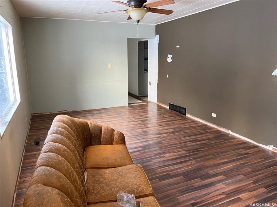 Opportunity in Tyvan! Upon entry is a large living room, kitchen, 3 bedrooms, 4pc Bath and Den. The basement is unfinished. Large back yard space. 2 Car Detached Garage. Plenty of parking. Some updates have been done over the years. House frontage sits further back from the Highway so there is more space for quiet and privacy.