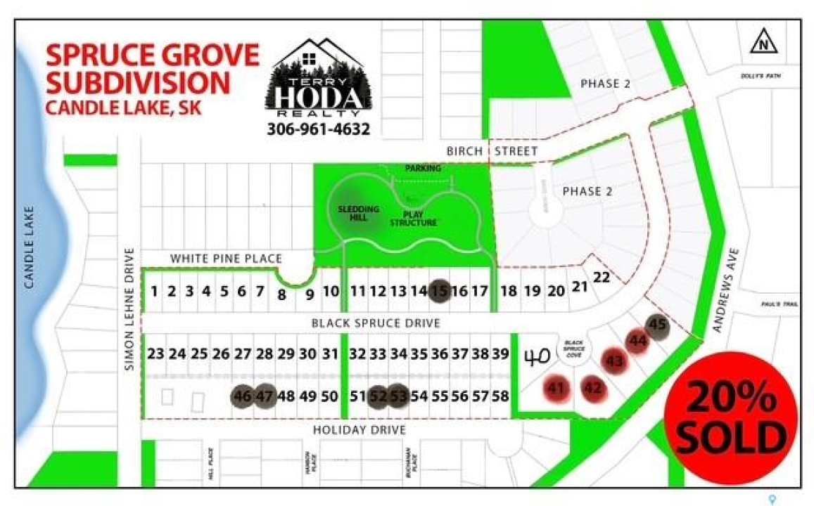 Welcome to SPRUCE GROVE! Candle Lake's newest subdivision awaits. Centrally located in the heart of the Village of Candle Lake, you will find this much anticipated premier development. Surrounded by enchanting, mature forest, you will find an open slate to build your dream vacation, or permanent, home. The power and gas are in. These lots are ready to be purchased and further developed. There are no time restrictions to build. The Spruce Grove Subdivision will soon boast a community park situated amidst majestic, mature forest which will feature a playground structure, park fixtures and furnishings, a sliding hill and walking paths. This lot lies only 220 meters from the shore of Candle Lake. Nobles Point, a great place to launch your boat to the North, the magnificant Candle Lake Golf Course just to the NE, and "downtown" Candle Lake to the SW, are all only a mile or so away. Candle Lake is one of, if not thee, nicest lakes in the province. A deep, clean lake with great fishing and tons of other outdoor activities at your doorstep. Boating, swimming with pristine beaches, golfing, walking paths, hiking, skiing, quadding, camping, snowmobiling (with groomed trails), curling, skating rink, ball diamond, huge recreation center with a library, senior's center and health center, pickleball, basketball and tennis courts, community garden, children's playgrounds and dog parks. There's a lot to do! Candle Lake has a year-round population of about a thousand people with many more during summer months. There are school buses for children attending school at Meath Park (which is about 25 miles away). Prince Albert is about an hour drive away with many people choosing to live at Candle and drive the daily commute to work. Candle Lake continues to be a favorite destination for the lake crowd. Perfectly located, you are sure to be happy for generations to come - in SPRUCE GROVE!