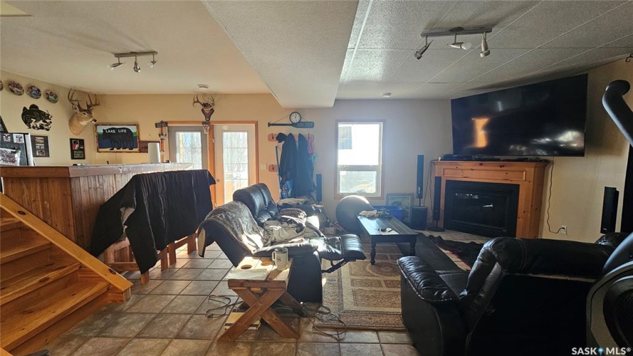 Enjoy year-round lakeside living in this charming bungalow-style home featuring a walkout basement that exits directly onto the beach. Fully renovated in 2003, this property showcases an inviting open-concept main floor designed for both comfort and functionality. The main level offers a spacious living room, a well-appointed kitchen, and a dining area that flow seamlessly together, creating an ideal space for everyday living and entertaining. Down the hall, you will find three reasonably sized bedrooms and a shared 4-piece bathroom, providing plenty of room for family and guests. The walkout basement is sure to impress, offering a massive recreational room with a bar area on one end and a cozy fireplace on the other — the perfect setting for gatherings or relaxing evenings. This lower level also includes two additional large bedrooms, a 3-piece bathroom, and a separate laundry room, adding both space and convenience. Stepping outside from the basement, you are welcomed into a 3-season sunroom that displays breathtaking views of Jackfish Lake and your private backyard situated right on the water's edge — an exceptional space to unwind and enjoy the scenery. Upstairs, the home also features a massive deck that wraps around the side of the house, allowing you to take in nature at its finest and enjoy outdoor living throughout the seasons. Completing this incredible property is a double detached heated garage, truly the cherry on top, making this a highly desirable lakefront home. Don't wait to make this your next home — call today to book your private viewing!