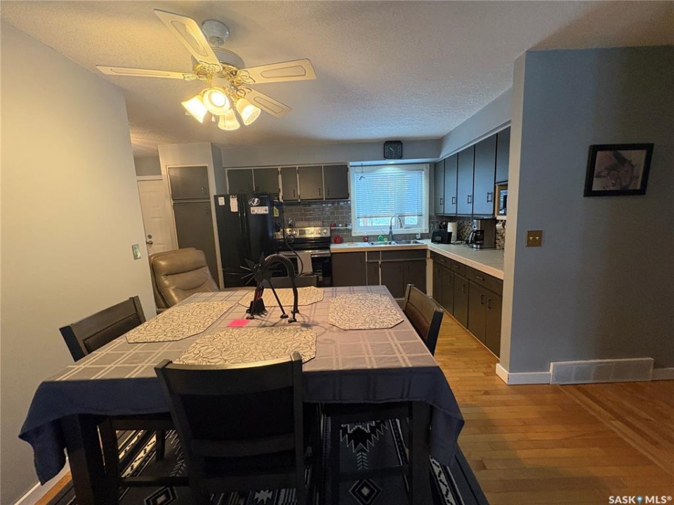 Welcome to this well-kept family home located in the welcoming community of Ituna, offering great amenities including a golf course, regional park with pool, K-12 school, and a seniors home. The main floor features three bedrooms (the third bedroom is currently used as a storage/laundry room) and a full bathroom, with beautiful hardwood flooring throughout most of the upper level. The open-concept kitchen and dining area flows nicely into the living room, creating a bright and functional layout ideal for everyday living and entertaining. The basement includes an additional bathroom and is open for development, providing excellent potential to expand your living space to suit your needs. This home also offers an attached insulated and heated garage, perfect for Saskatchewan winters. Step outside to enjoy the deck off the back, complete with an overhang for added coverage, ideal for relaxing or hosting guests. Situated on two lots, there is plenty of outdoor space to enjoy. Updated windows complete this solid package. A great opportunity to own a move-in ready home in a friendly community with everything you need close by.