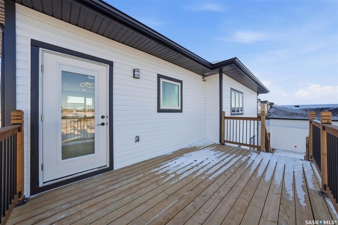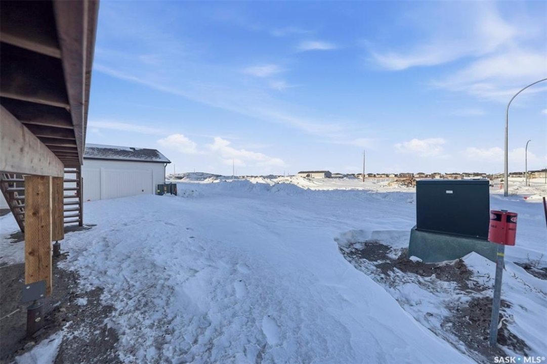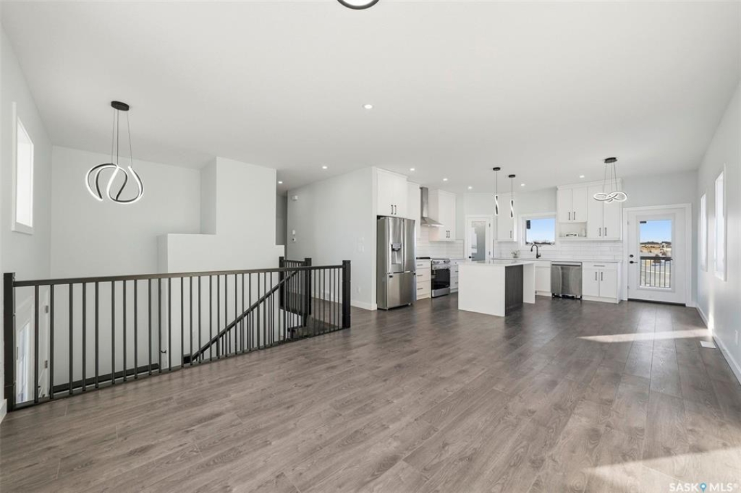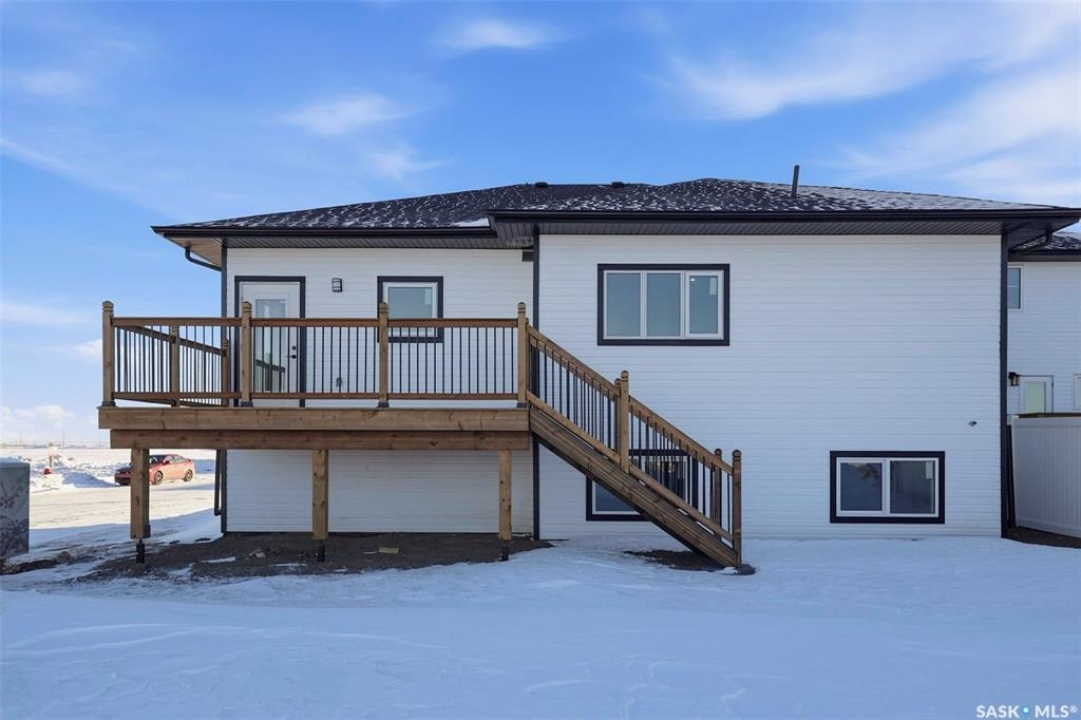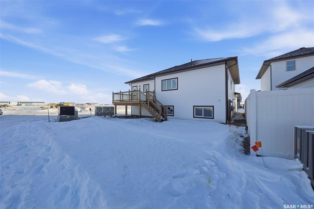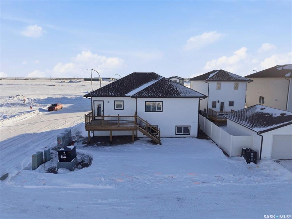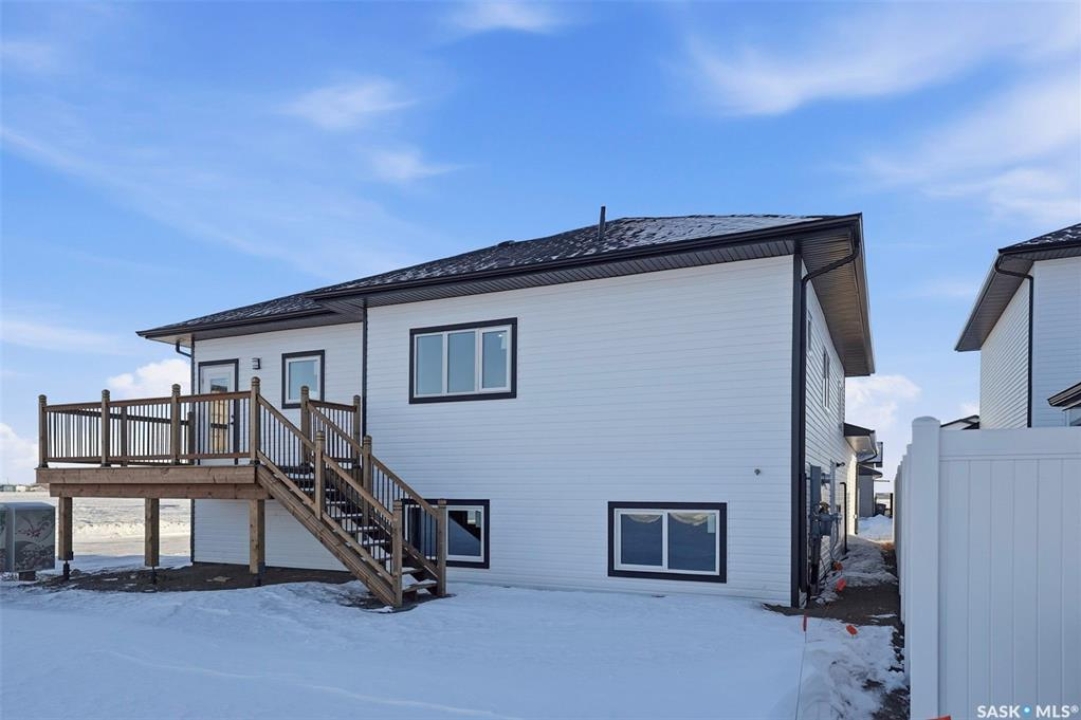 Welcome to 400 Eldorado St. located in the growing city of Warman & situated on a large corner lot with close proximity to parks, walking paths, the Warman BMX track, the skate park & ball diamonds. This beautifully finished 1280 sq.ft bi-level style home with a double attached garage features separate entry into an unfinished basement that is set up for a future 2- bedroom legal suite! The main floor has a large foyer with tiled floors, a seating area & closet for coats/boots. The home has an open concept kitchen to living room & dining area. The kitchen features tile backsplash, quartz countertops, Stainless steel appliances, a hood fan that vents directly outside & a large island. The dining room walks out on to a large deck overlooking the future backyard. The main floor also has a 4-piece bathroom, 3 good sized bedrooms with the primary bedroom having a 4-piece ensuite bathroom & a large walk-in closet. The basement can be accessed from the main floor or separate side entrance. It has the laundry area, mechanical room & it is unfinished ready for a future suite. This home has Progressive new home warranty included & is built by Royal Choice Homes Ltd. with great attention to detail & quality finishes. It comes complete with all appliances, washer, dryer, 2 electrical metres & an air exchanger. There are options to have the basement finished or driveway included at additional cost – all work weather permitting. GST/PST included in the purchase price with rebate to the builder. Call to view.