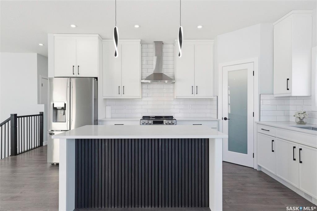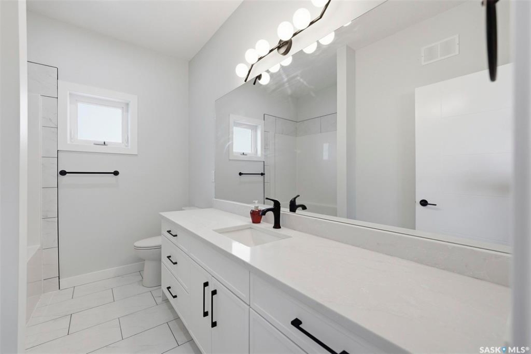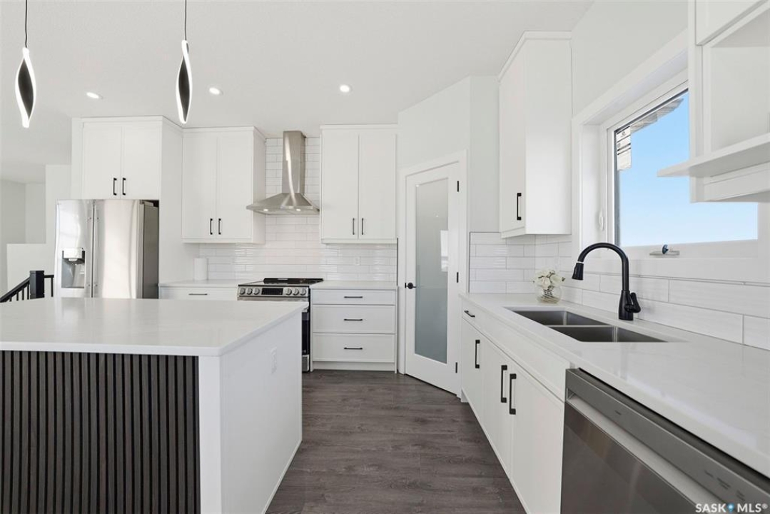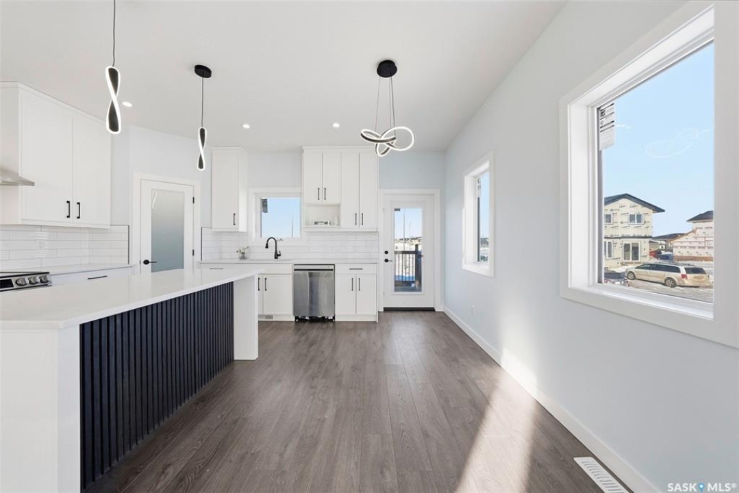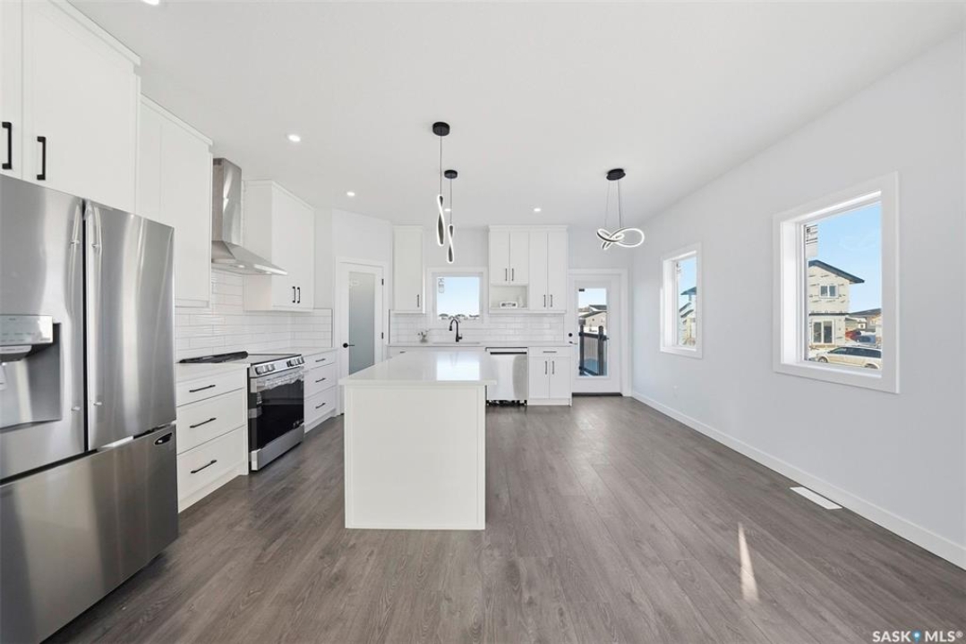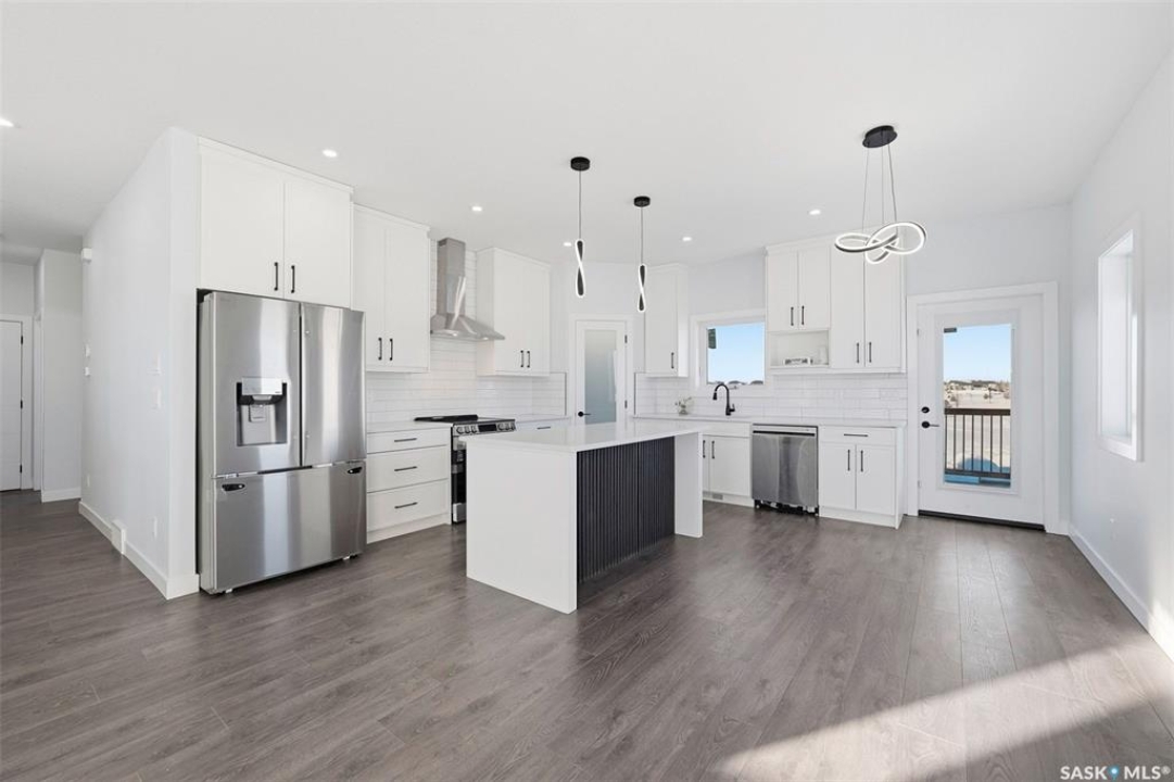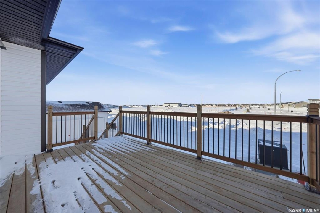 Welcome to 400 Eldorado St. located in the growing city of Warman & situated on a large corner lot with close proximity to parks, walking paths, the Warman BMX track, the skate park & ball diamonds. This beautifully finished 1280 sq.ft bi-level style home with a double attached garage features separate entry into an unfinished basement that is set up for a future 2- bedroom legal suite! The main floor has a large foyer with tiled floors, a seating area & closet for coats/boots. The home has an open concept kitchen to living room & dining area. The kitchen features tile backsplash, quartz countertops, Stainless steel appliances, a hood fan that vents directly outside & a large island. The dining room walks out on to a large deck overlooking the future backyard. The main floor also has a 4-piece bathroom, 3 good sized bedrooms with the primary bedroom having a 4-piece ensuite bathroom & a large walk-in closet. The basement can be accessed from the main floor or separate side entrance. It has the laundry area, mechanical room & it is unfinished ready for a future suite. This home has Progressive new home warranty included & is built by Royal Choice Homes Ltd. with great attention to detail & quality finishes. It comes complete with all appliances, washer, dryer, 2 electrical metres & an air exchanger. There are options to have the basement finished or driveway included at additional cost – all work weather permitting. GST/PST included in the purchase price with rebate to the builder. Call to view.