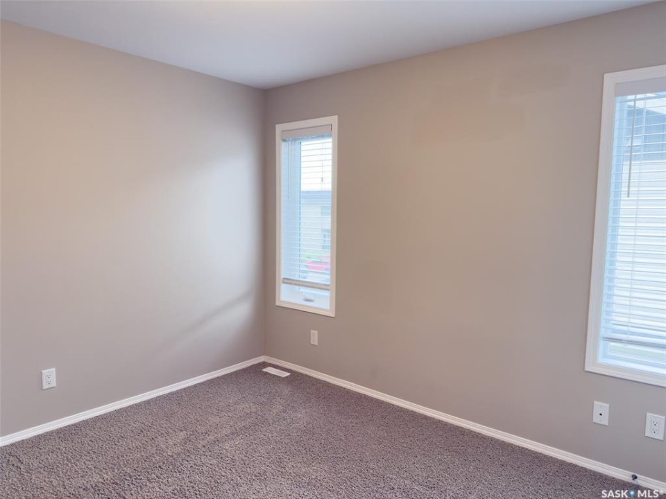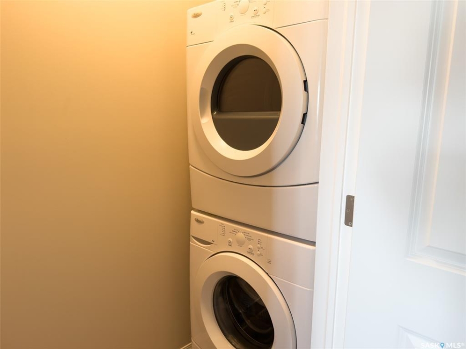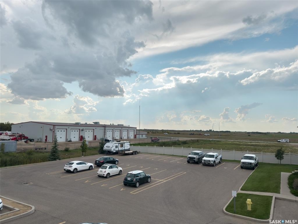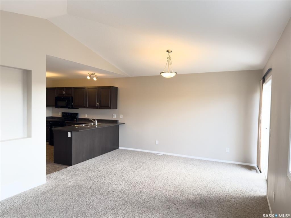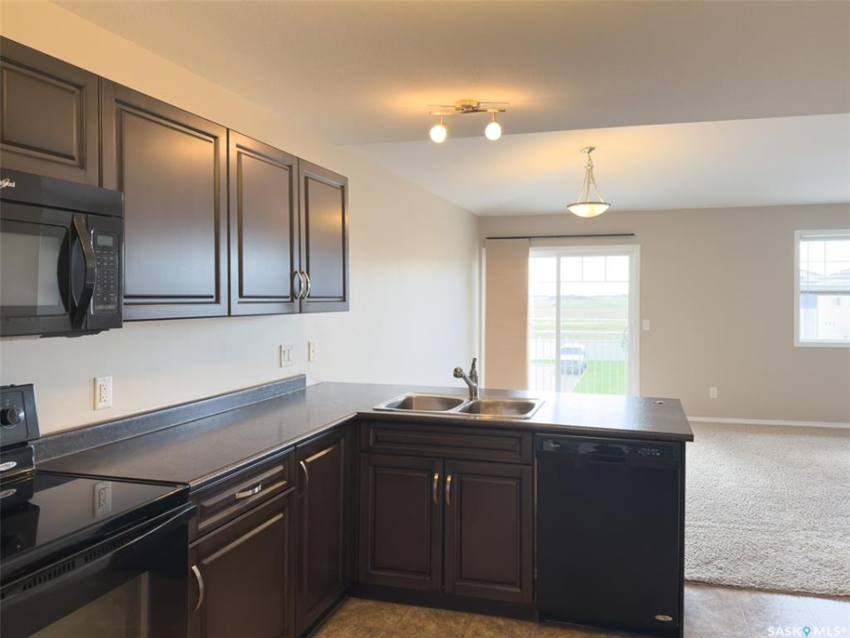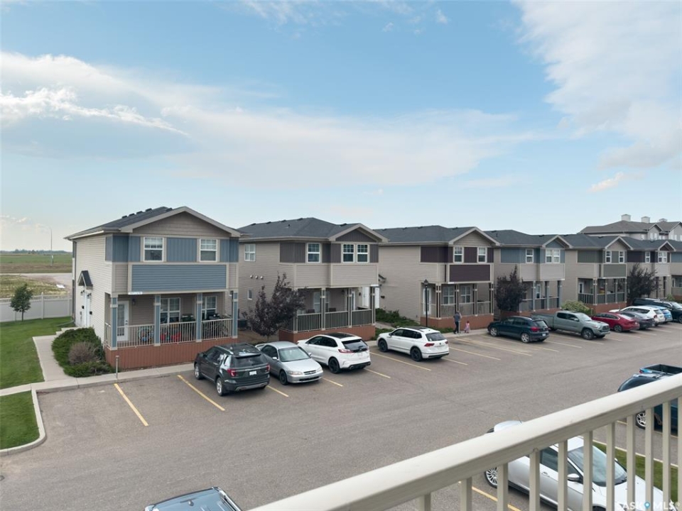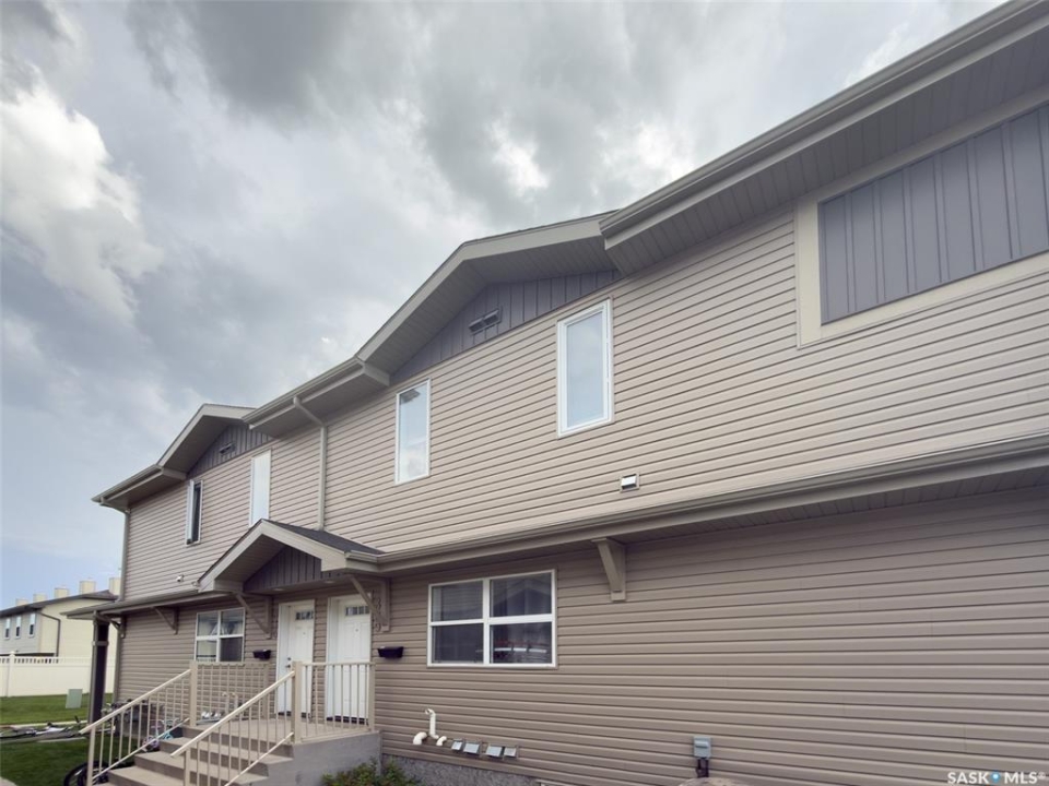 Welcome to the Chaparral Ridge in south Martensville! This upper level townhouse offers over 1,000 sqft of living space, vaulted ceilings and a bright and open layout! The kitchen is well-equipped with dark cabinets, corner pantry, peninsula seating and all appliances included! The dining and living room are spacious with room for entertaining, with a covered deck for your BBQ. Both bedrooms are a good size, the primary with a walk-in closet. A 4 pc bath and a laundry room complete the space. Additional storage in a storage space on the main level, 2 parking spaces and tons of visitor parking across from the unit, make this place extra convenient. Enjoy low condo fees in this family friendly complex, with pets permitted with restrictions. Steps from shops and restaurants and quick access to Costco and Saskatoon! Don't miss out on this home!