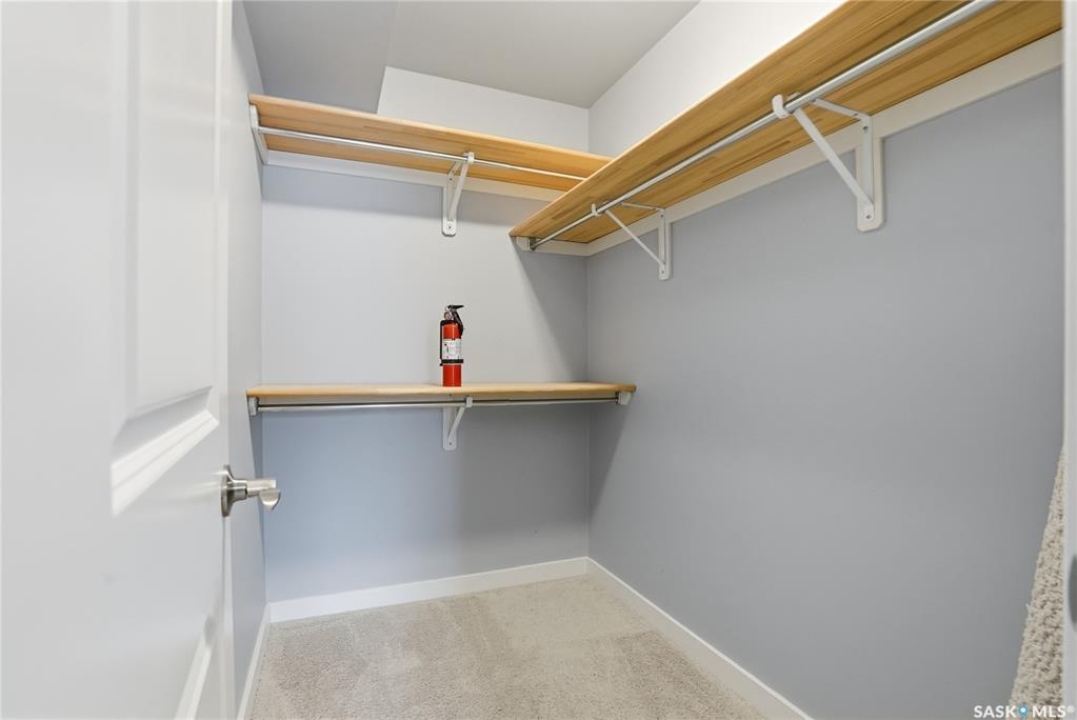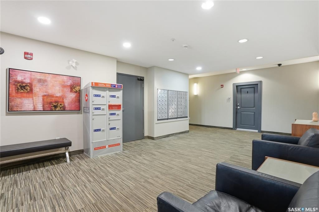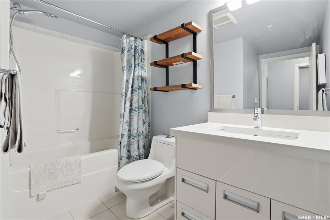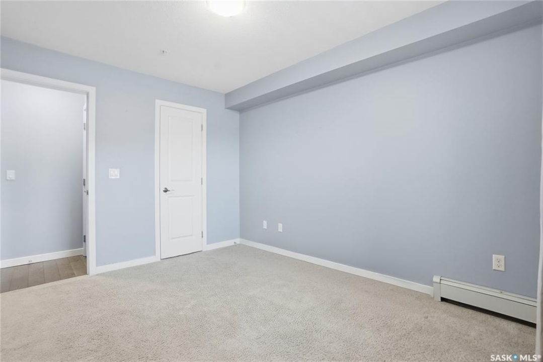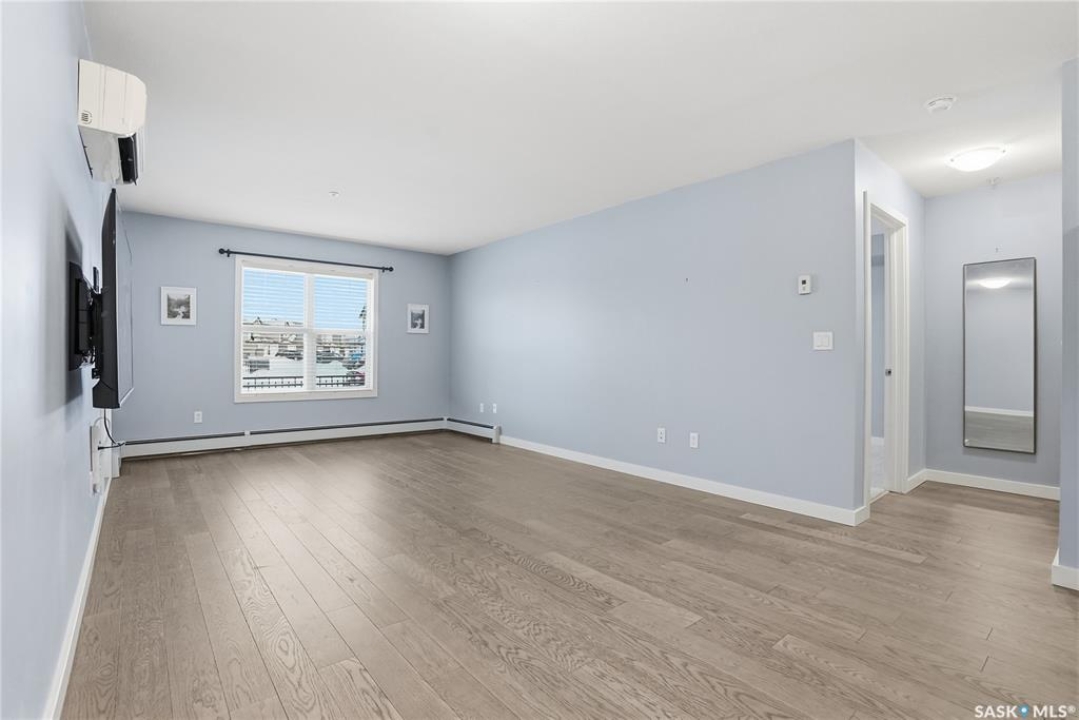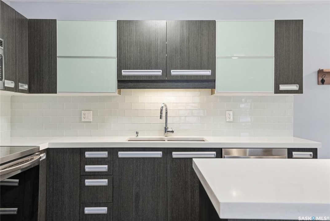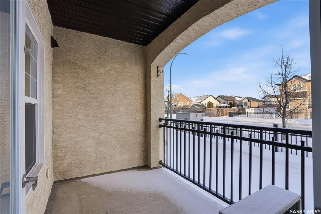 Welcome to this bright, east-facing 915 sq ft condo located in the highly sought-after Rosewood neighbourhood of Saskatoon. Perfectly positioned within walking distance to medical offices, Tim Hortons, and an excellent selection of shops and restaurants. The open-concept living area showcases brand new hardwood flooring and a kitchen featuring quartz countertops, a large island with pot drawers, stainless steel appliances, and glass tile backsplash. The thoughtful floor plan includes a spacious primary bedroom with a walk-in closet, a second bedroom with its own walk-in closet, and a convenient in-suite laundry/storage room with stacked washer and dryer. Additional features include air conditioning, a private balcony off the living room, and TWO electrified parking stalls. Stylish, modern, meticulously maintained and available for a quick possession! This move-in-ready condo is an outstanding opportunity in one of the city's most desirable communities!