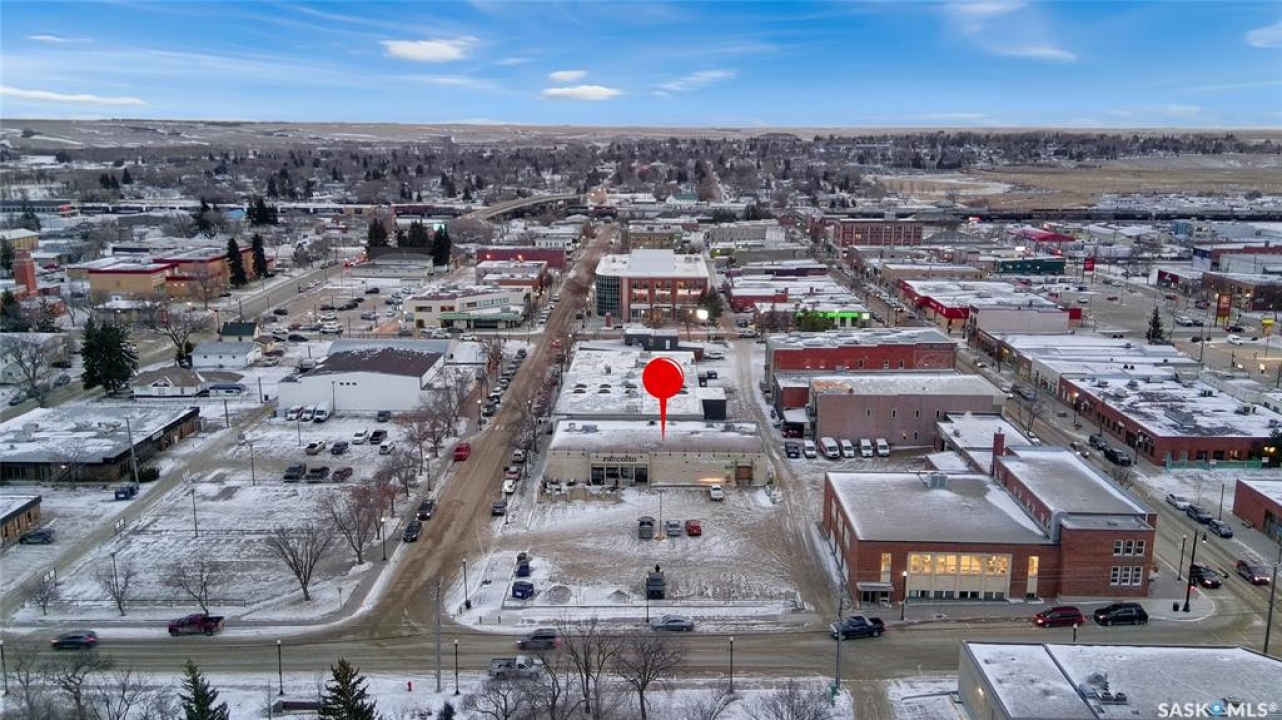 PRIME downtown Swift Current commercial opportunity on a high-visibility corner at 1st Avenue NE and Herbert Street. This single-storey masonry brick building (60' x 112', approx. 6,720 sq.ft.) offers excellent access, strong street presence, and a RARE advantage for the downtown core: a large on-site paved parking lot with approximately 35 dedicated stalls. A parking lot of this size is unheard of downtownThe building is positioned along the south edge of the site, maximizing parking and circulation to the north, with additional exposure from bordering streets/sidewalks nestled within this central location. Currently separated into 2 units. The east unit has been improved as a restaurant/lounge with a Liqour store on the west side. The buildings layout supports a range of commercial uses(including potential office space if so desired), with grade-level walk-through entrances on the north and west sides plus overhead door access to the liquor warehouse area. Ceiling heights range from approximately 9' to 15'3", with a combination of drywall and exposed truss ceilings, including mostly LED lighting. On the east side the interior finishes include a large dining area, commercial kitchen, built-in bar, walk-in cooler, mens/ladies washrooms, office and storage areas. A large patio off the front of the building completes this space. The liquor store on the west side boasts a 22x35 sf cooler, a half bath along with a large retail area and front office. Serviced with city water and sewer, power, natural gas, and telephone. Mechanical highlights include 400 amp electrical service, four newer forced-air natural gas furnaces, central AC, and a natural gas water heater. Zoned DC2-C1 (Direct Control District for Central Downtown District). A well-located, flexible downtown asset with outstanding visibility and parking. Seller will entertain offers on each side individually as seen fit, lease rate will vary. Op costs to be determined. Call today for more information.