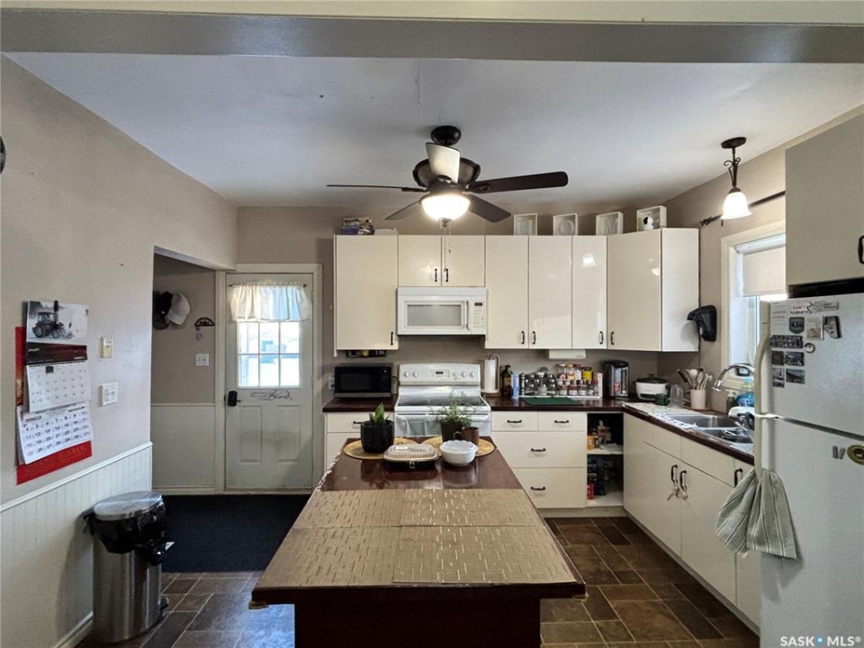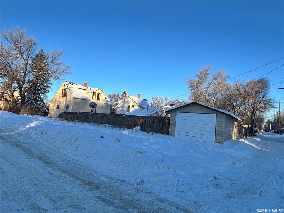 Full of character and thoughtful updates, this charming 1928 one-and-three-quarter storey home is ideally situated on a corner lot in a mature, quiet neighborhood. Enjoy the convenience of being close to downtown Humboldt as well as St. Augustine Elementary School and Church. The main floor features a welcoming layout with a bright kitchen, dining room, and living room highlighted by high ceilings and original hardwood flooring. The updated kitchen offers newer cabinetry, a center island, and a built-in dishwasher—perfect for both everyday living and entertaining. The dining room flows seamlessly into the living room, creating a warm and inviting space. A three-season front porch adds extra charm and a cozy spot to relax, while a convenient two-piece bathroom is located off the side entrance. Upstairs, you'll find three comfortable bedrooms and a four-piece bathroom, with some original hardwood flooring continuing to showcase the home's timeless appeal. The basement provides ample storage space and houses the utilities and laundry. Outside, the fully fenced yard offers privacy and functionality, complete with a single detached garage with direct street access. This home is filled with character and charm throughout—an excellent opportunity to own a piece of Humboldt history with modern updates in a fantastic location.