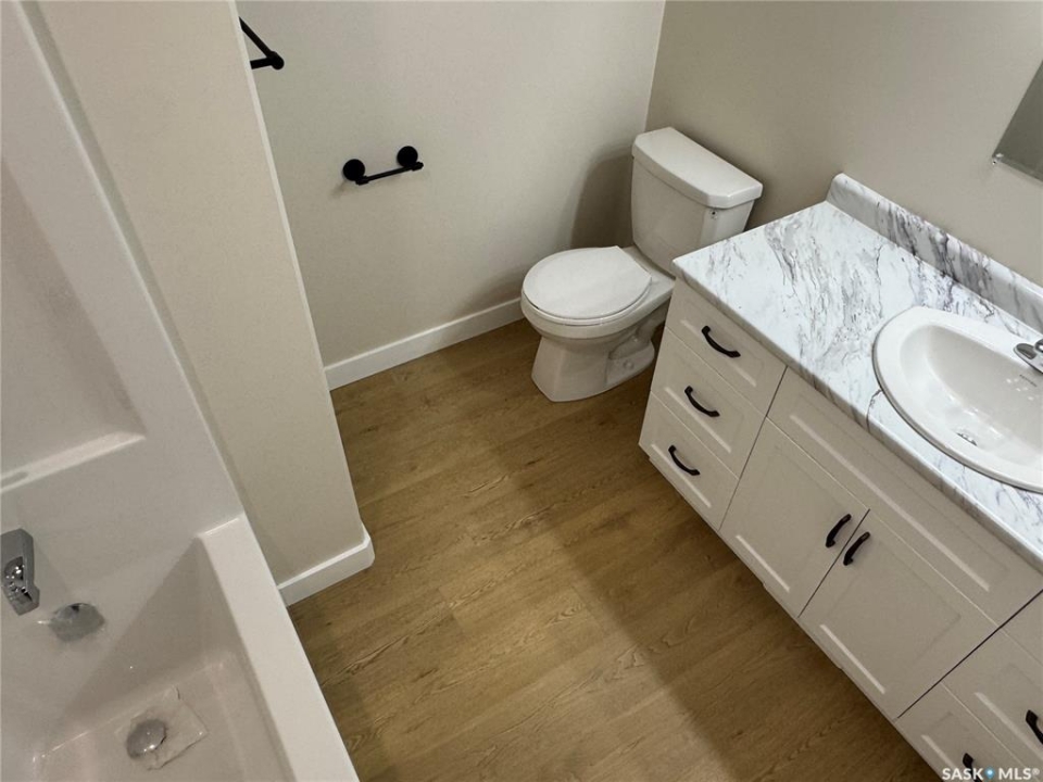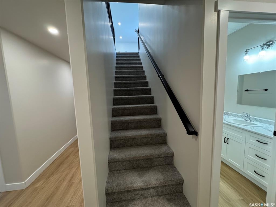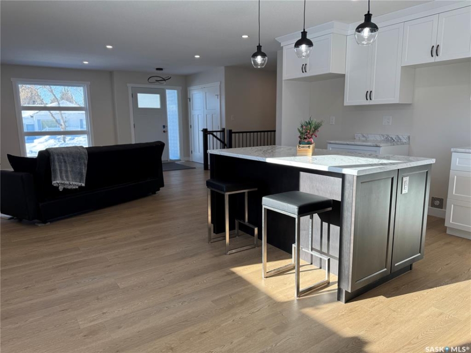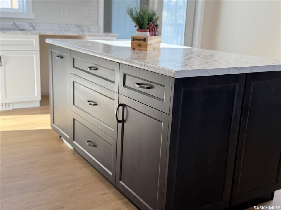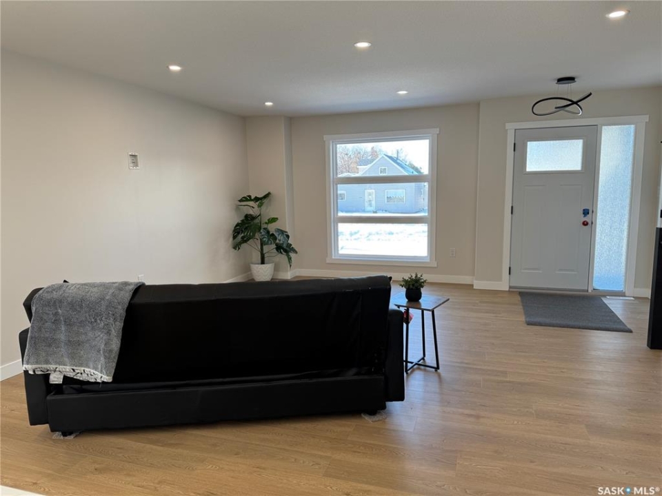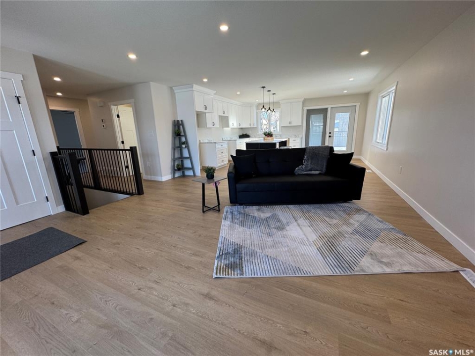 This stunning custom-built 2025 bungalow is crafted by a highly reputable builder and offers 1,354 sq. ft. of thoughtfully designed living space, plus a fully finished basement. The home features a fully fenced yard, maintenance-free deck, double concrete driveway with sidewalk, and a double insulated and heated garage—perfect for year-round comfort and convenience. The main floor welcomes you with two separate entrances sharing a spacious closet, ideal for busy households. You'll find three bedrooms on the main level, one of which is equipped with washer/dryer hookups for optional main-floor laundry. The primary bedroom includes a large walk-in closet, ready for the buyer to customize with a $1,000 design allowance. The open-concept main living area is bright and inviting, featuring custom white kitchen cabinetry and easy-maintenance flooring that flows seamlessly throughout—perfect for modern living and entertaining. The finished basement adds exceptional value with two additional bedrooms, a large family room/games area, ample storage, a 4-piece bathroom, and a dedicated utility room. Additional highlights include central air conditioning and central vacuum. Ideally located within walking distance to an elementary school and church, this home offers both comfort and community. Note: GST and PST extra. Property taxes on land only. Seller to assign any housing rebates to the Buyer. Buyer to verify all measurements. FLOOR PLAN AVAILABLE UPON REQUEST. A move-in-ready property that combines quality craftsmanship, smart design, and an excellent location. Calll to view today!