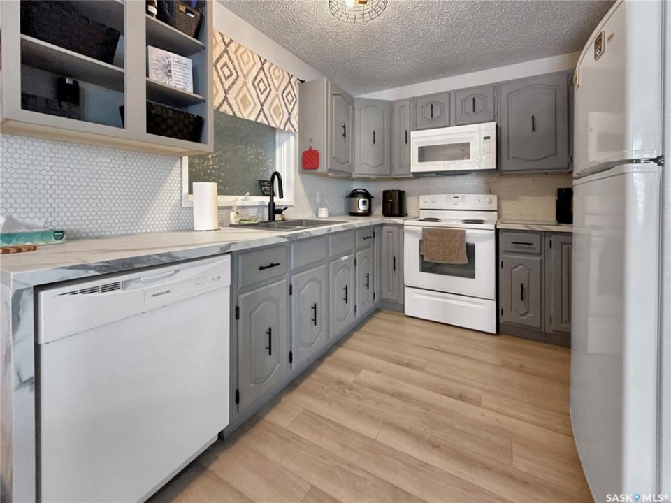 The swankiest 5 bedroom with income potential, close to both high schools and a park within walking distance give 28 North St Yorkton a cut above the rest. Starting with a double deep garage, a fully fenced yard with shed and apple/saskatoon trees check the boxes for out door oasis (not to mention back alley access with a gate large enough to tuck your RV). The inside boasts a breezeway and an updated main floor with on trend laminate, a fresh coat of paint and updated light fixtures. An open concept dining and living room with plenty of natural light give the main floor an uplifting vibe but stay high on function. An updated kitchen with a new dishwasher and updated appliances check all the regular Kitchen check boxes. 3 Main floor bedrooms & a 4 pc bath complete the upstairs along with an updated hallway storage and organization centre. Down stairs there is 2 spacious bedrooms, a kitchenette and large living room space as well as a 3 pc bath, and over sized XL laundry/ utility room with wash tub & potato room. This home has epic potential for income with Yorktown's current rental shortage. Pull the trigger on your goals of Owning in Se Sk today!